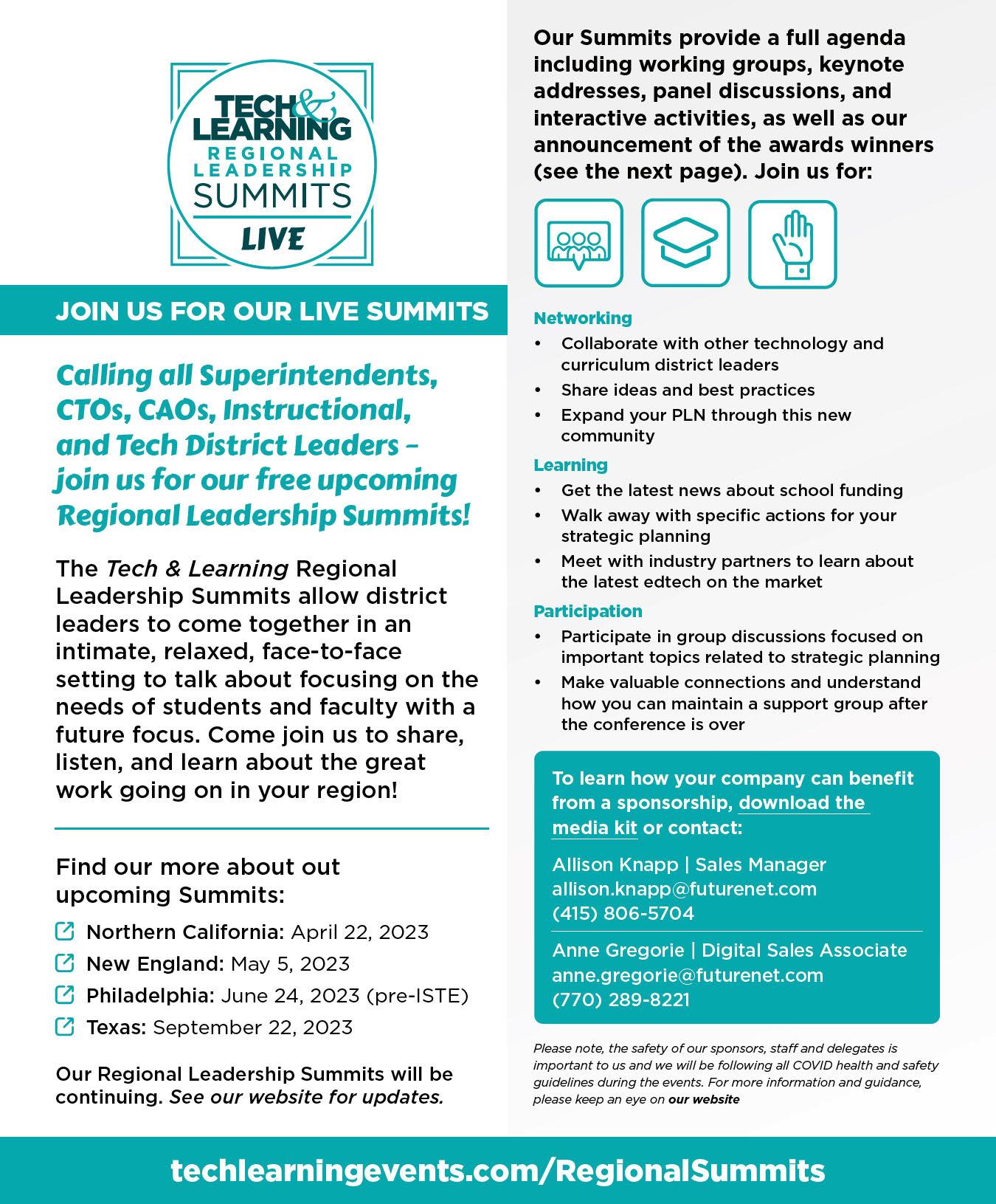Learn more about Tech & Learning’s Regional Leadership Summits here