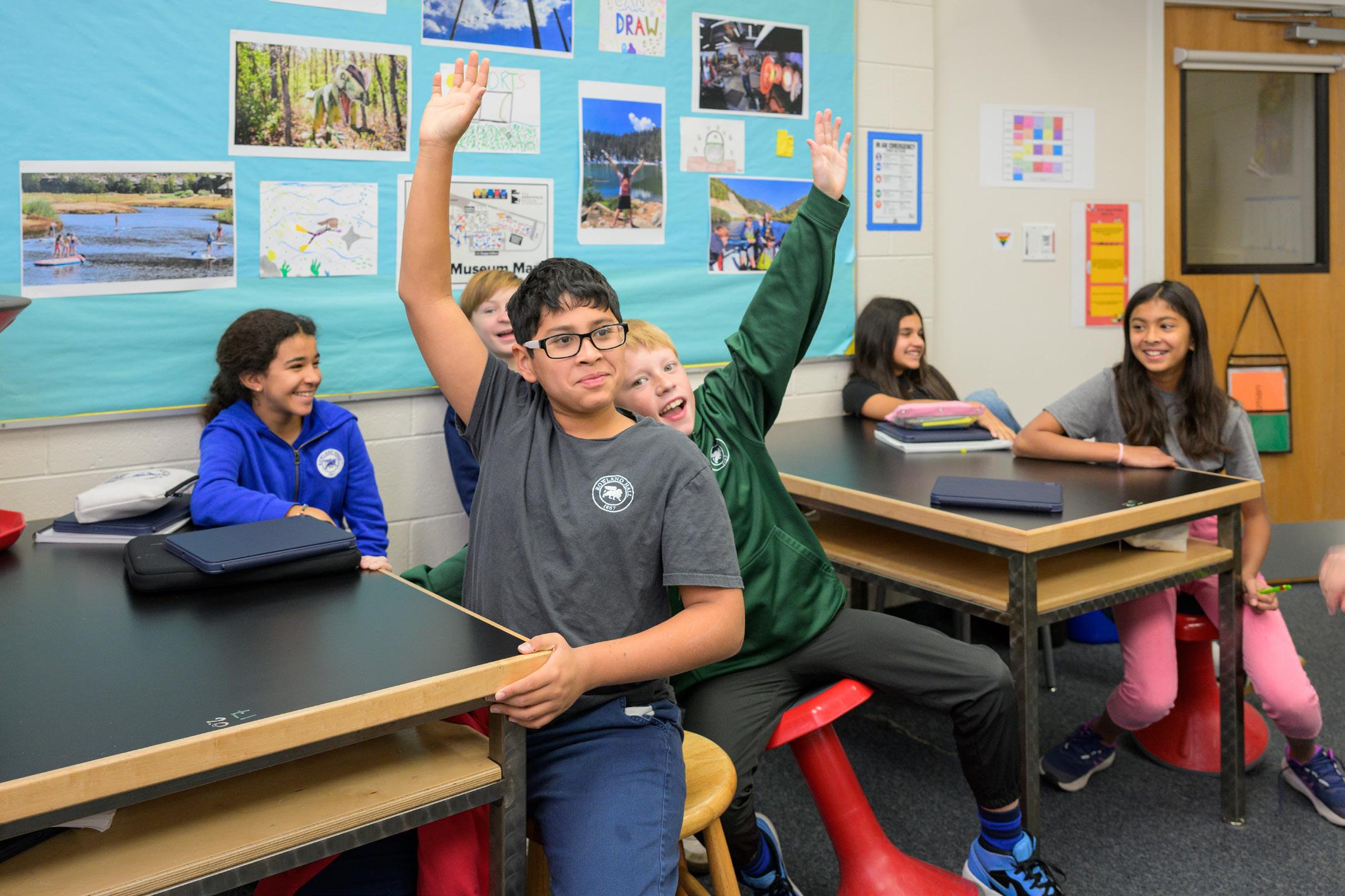 Our core curriculum requires all students to take math, English, science, and history and social studies, known as MESH classes; participate in physical education and wellness courses; and study a world language (French, Mandarin Chinese, or Spanish) during their time in our Middle School. Sixth graders are also enrolled in a yearlong Foundations program covering four areas of study, and every student is assigned to an advisory group