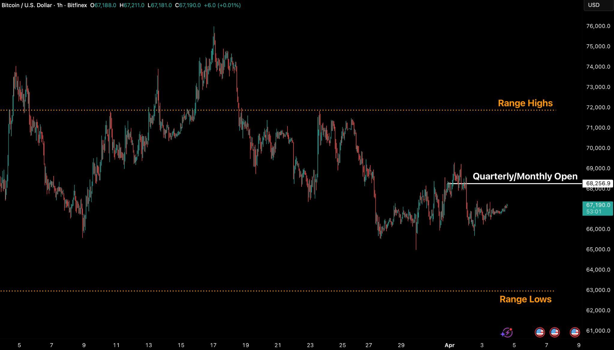vùng cung tích tụ lớn. Trước đó, việc thủng xuống dưới mốc mở cửa tháng và quýtại$68.247làtínhiệusuyyếurõrệtcủacấutrúcngắnhạn,nhấtlàkhixảy ra sau giai đoạn tái cân bằng danh mục, cho thấy thiếu động lực mua tự nhiên trênthịtrườngspot.Tuynhiên,BTCvẫntránhđượcchuỗi6thánggiảmliêntiếp–kịch bản chỉ từng xuất hiện trong thị trường gấu 2018. Mức tăng nhẹ khoảng 1,8% trong tháng 3 có thể xem là dấu hiệu ổn định tạm thời, nhưng chưa đủ để xácnhậnmộtxuhướngmới.