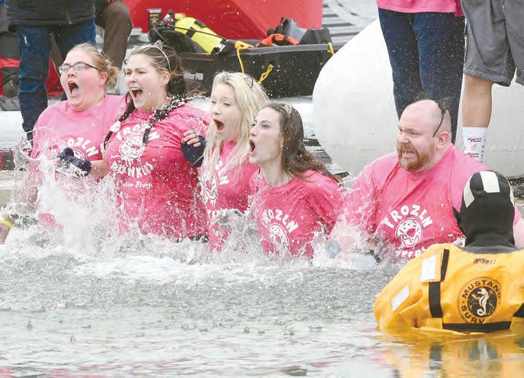 At left: Members of the Frozen Dunkers hit the water during last year’s event.