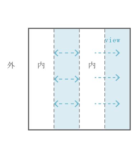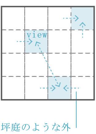 内外に狭間に設けられた室内空間の縁である縁側は、内を延長した場所とも、外 を引き寄せた場所としても解釈できます。