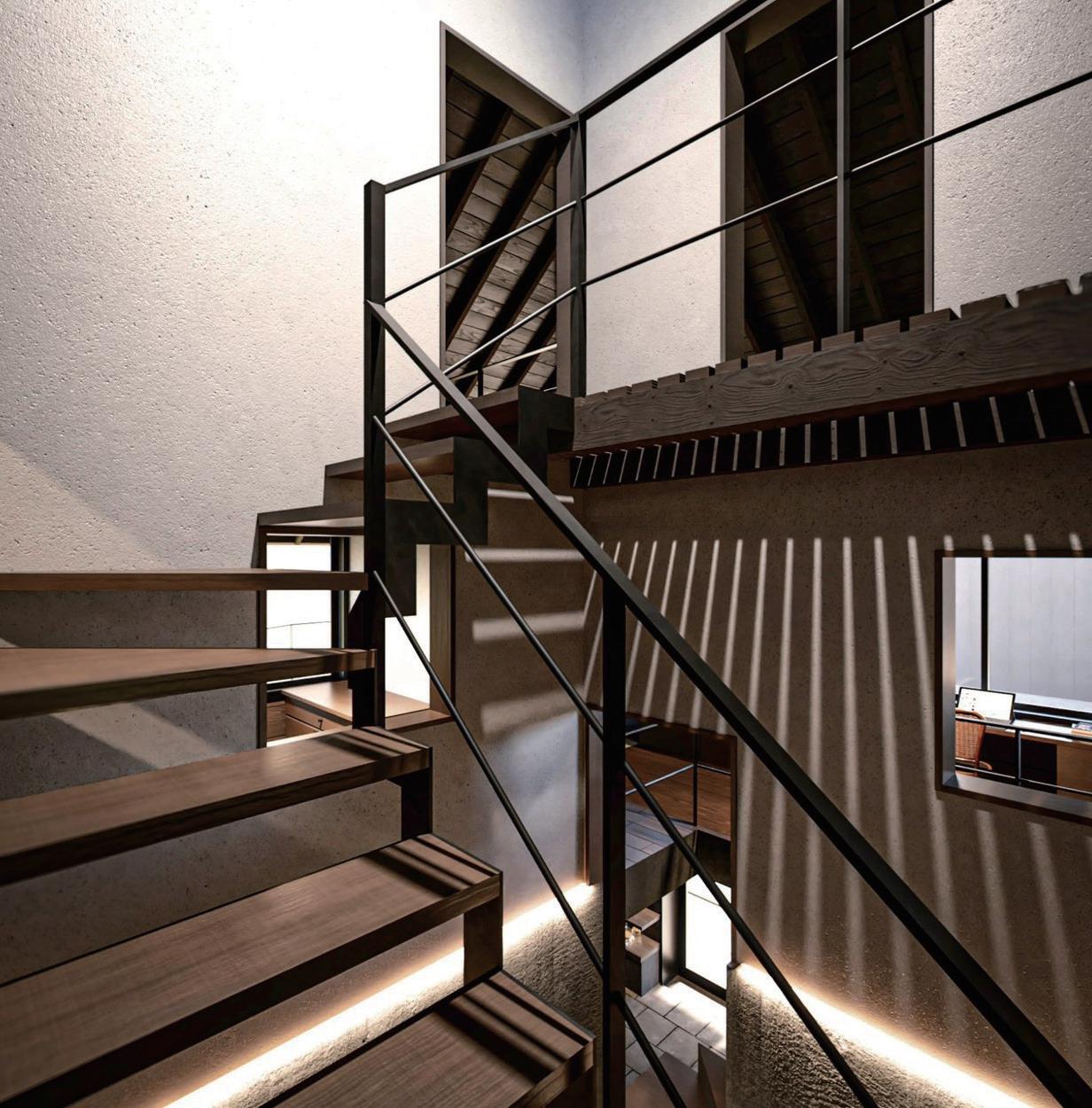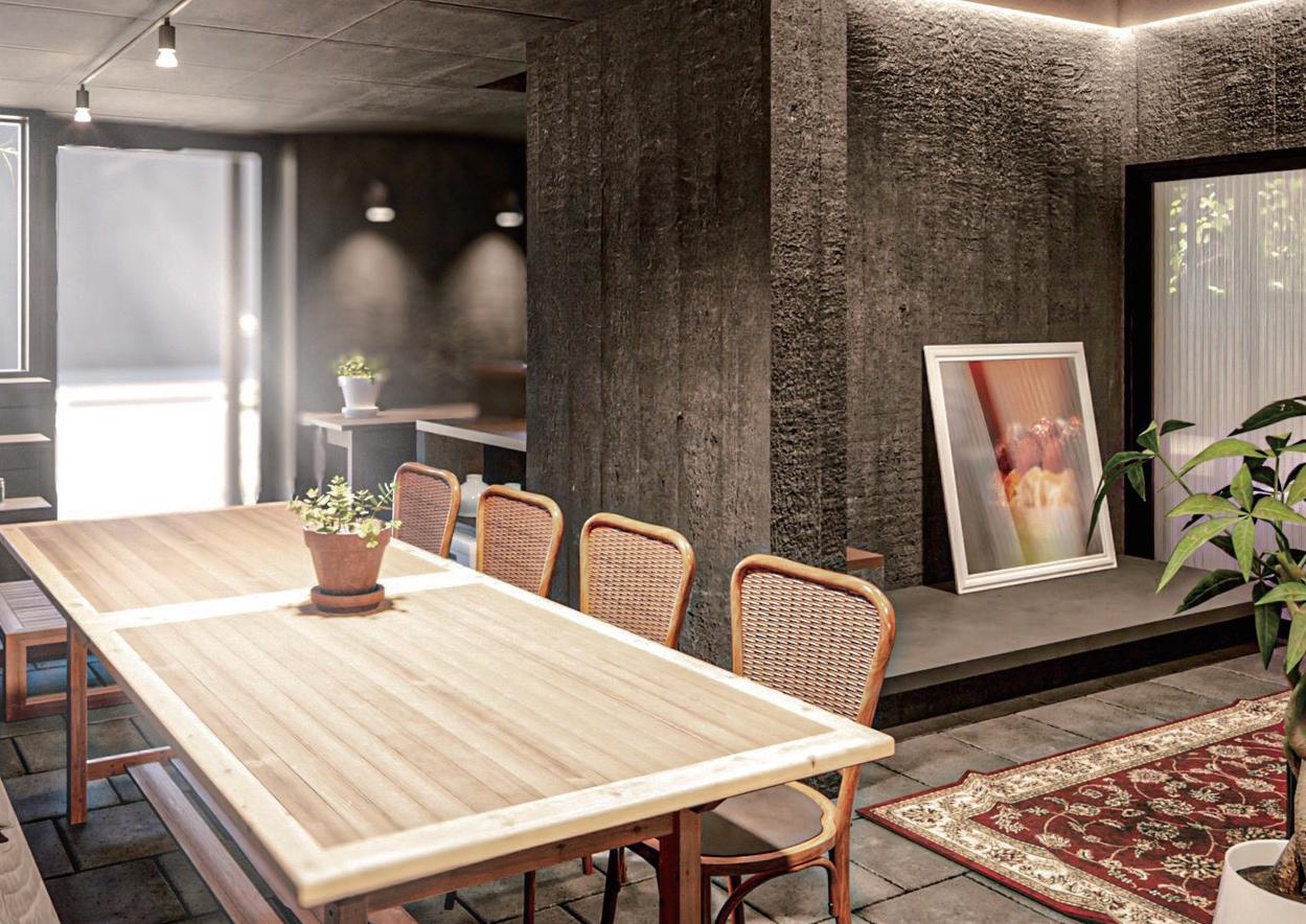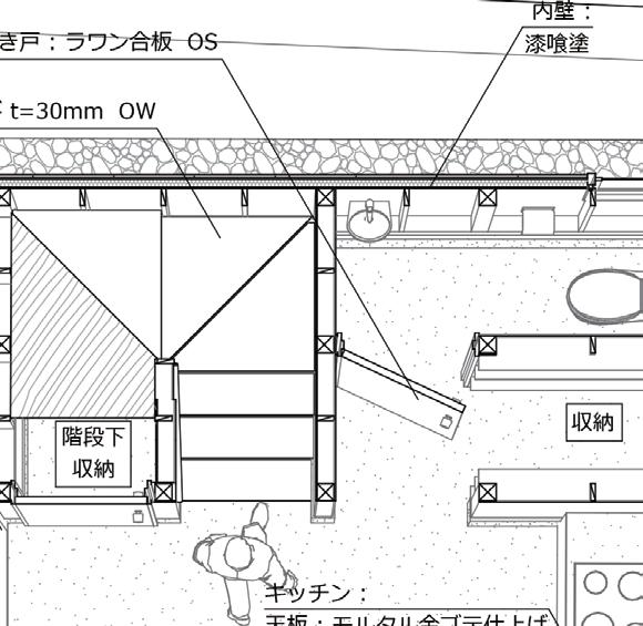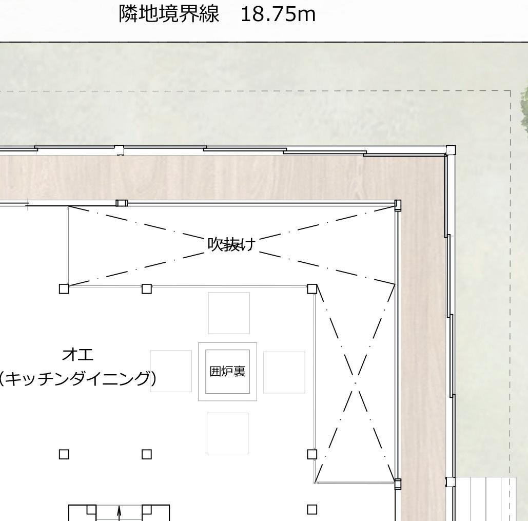 地面のような三和土の床仕上げや小屋組みを露した高い天井や吹き抜けなどの要 素は、現代住宅にも垣間見えます。