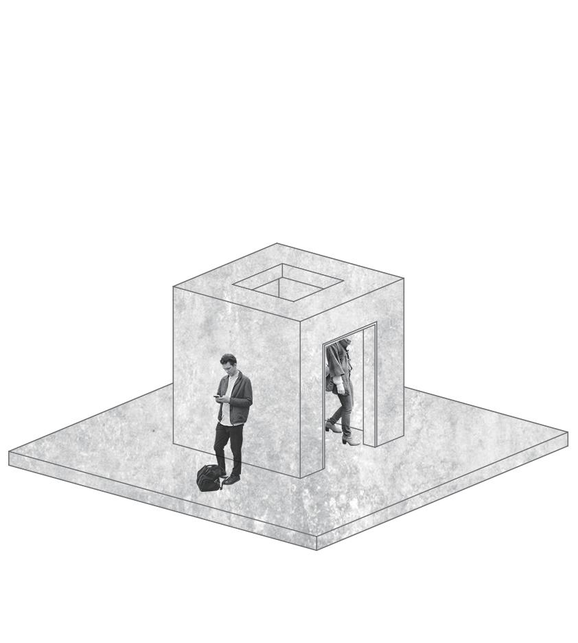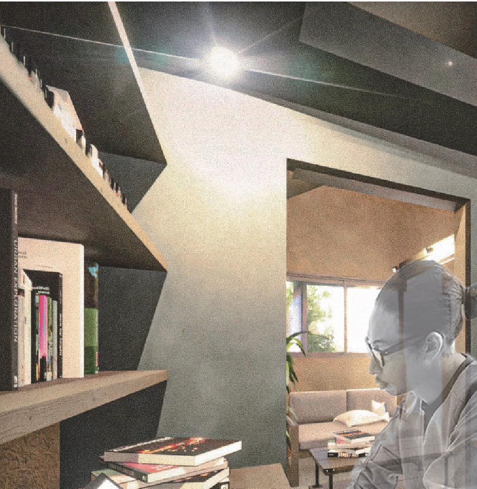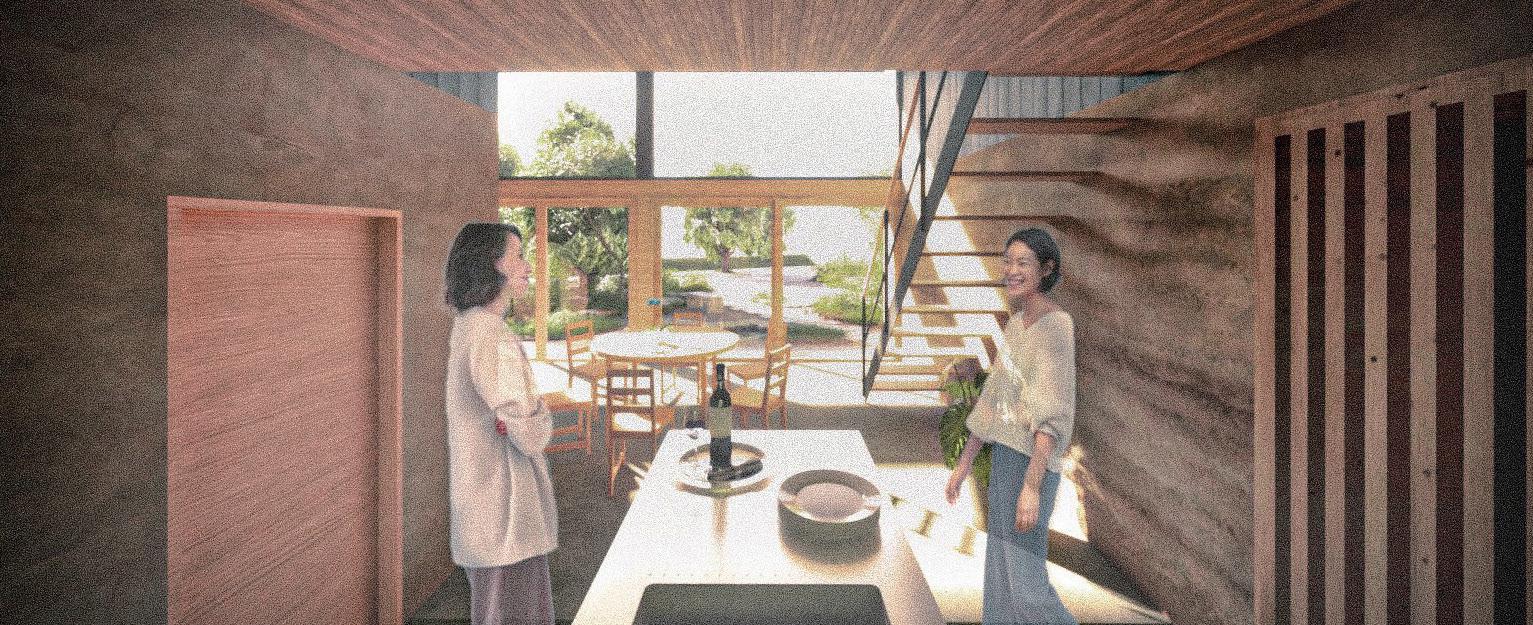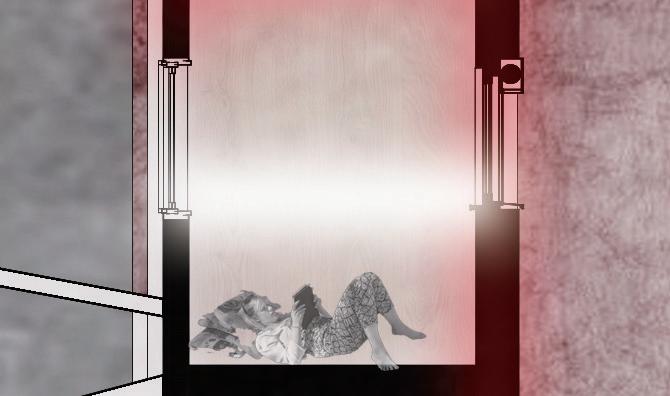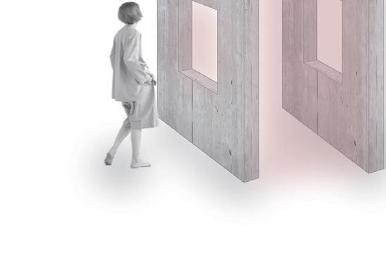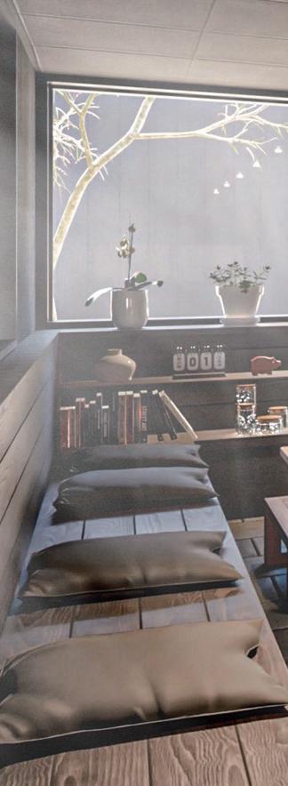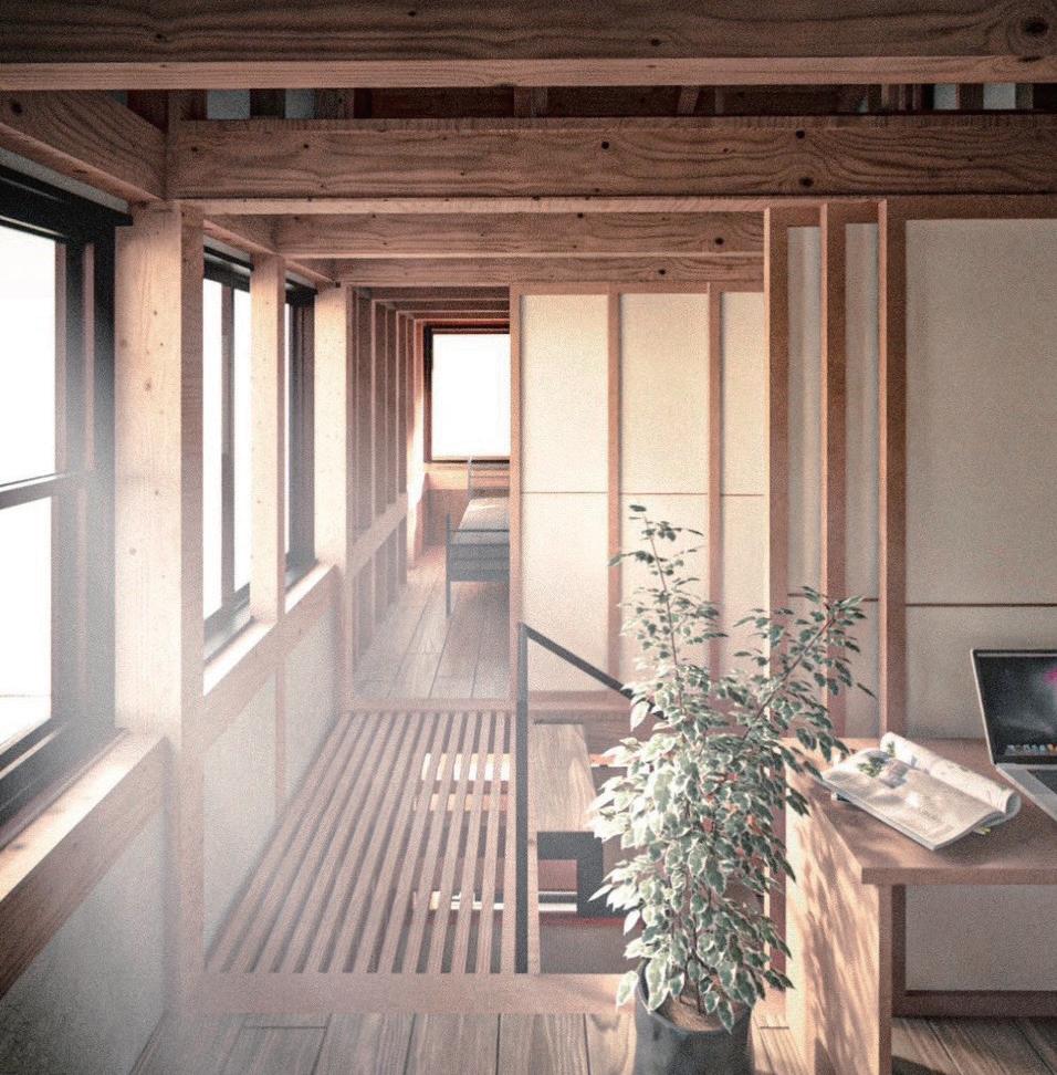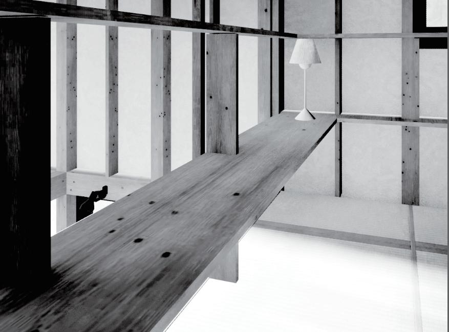 外界の情報と密接に関わっている現代、今一度自分を見つめて自己を確立してい くことが大切であると考えます。本提案では10代後半から20代の情報社会に 疲れ切ってしまい自己を確立したい方をメインターゲットとして、外界を遮断せ ず緩やかにつながった内省する部屋を提案します。独りで滞在したり、心を許し た人と過ごすことで自分と向き合います。