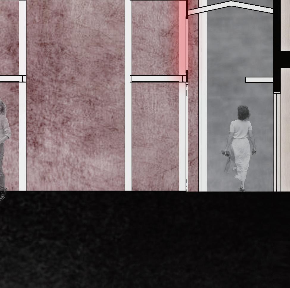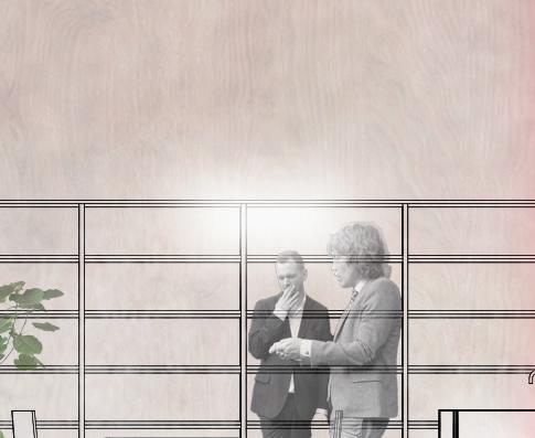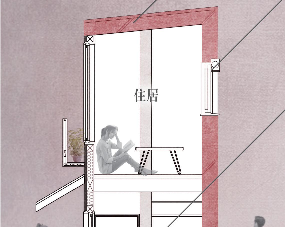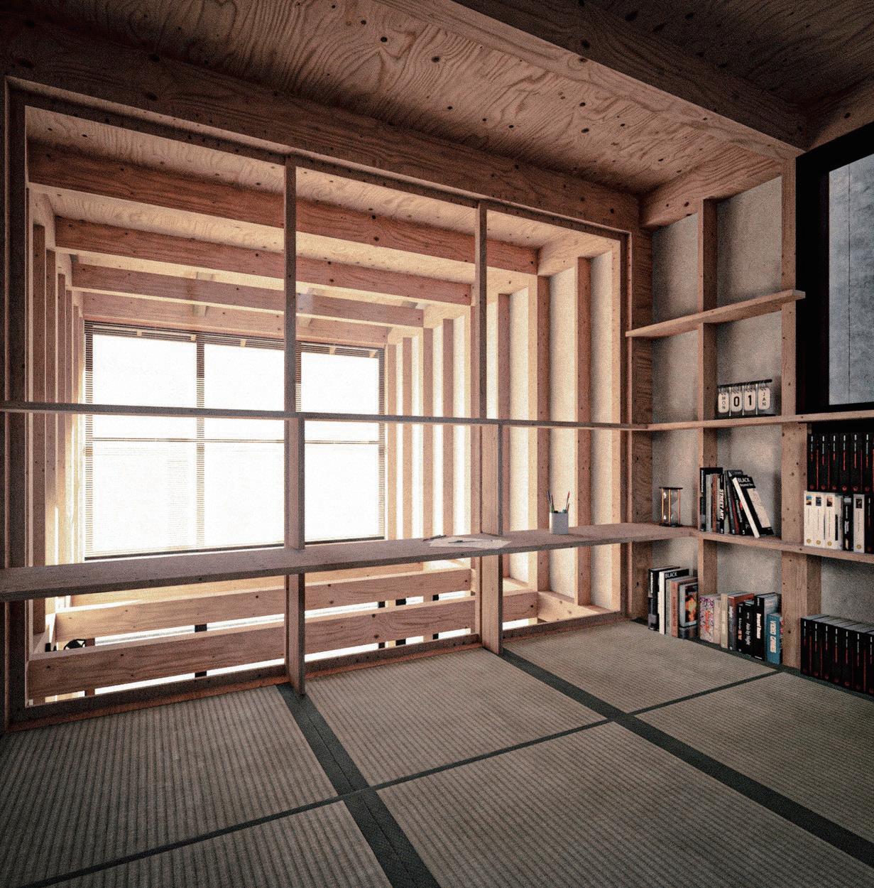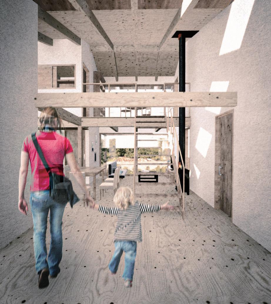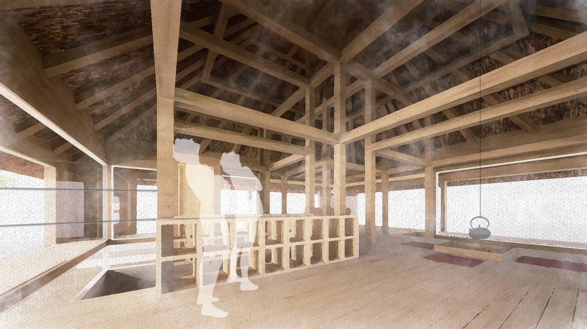 外界の情報と密接に関わっている現代、今一度自分を見つめて自己を確立してい くことが大切であると考えます。本提案では10代後半から20代の情報社会に 疲れ切ってしまい自己を確立したい方をメインターゲットとして、外界を遮断せ ず緩やかにつながった内省する部屋を提案します。独りで滞在したり、心を許し た人と過ごすことで自分と向き合います。