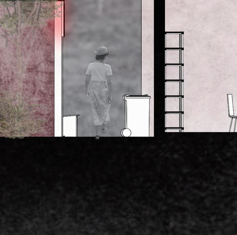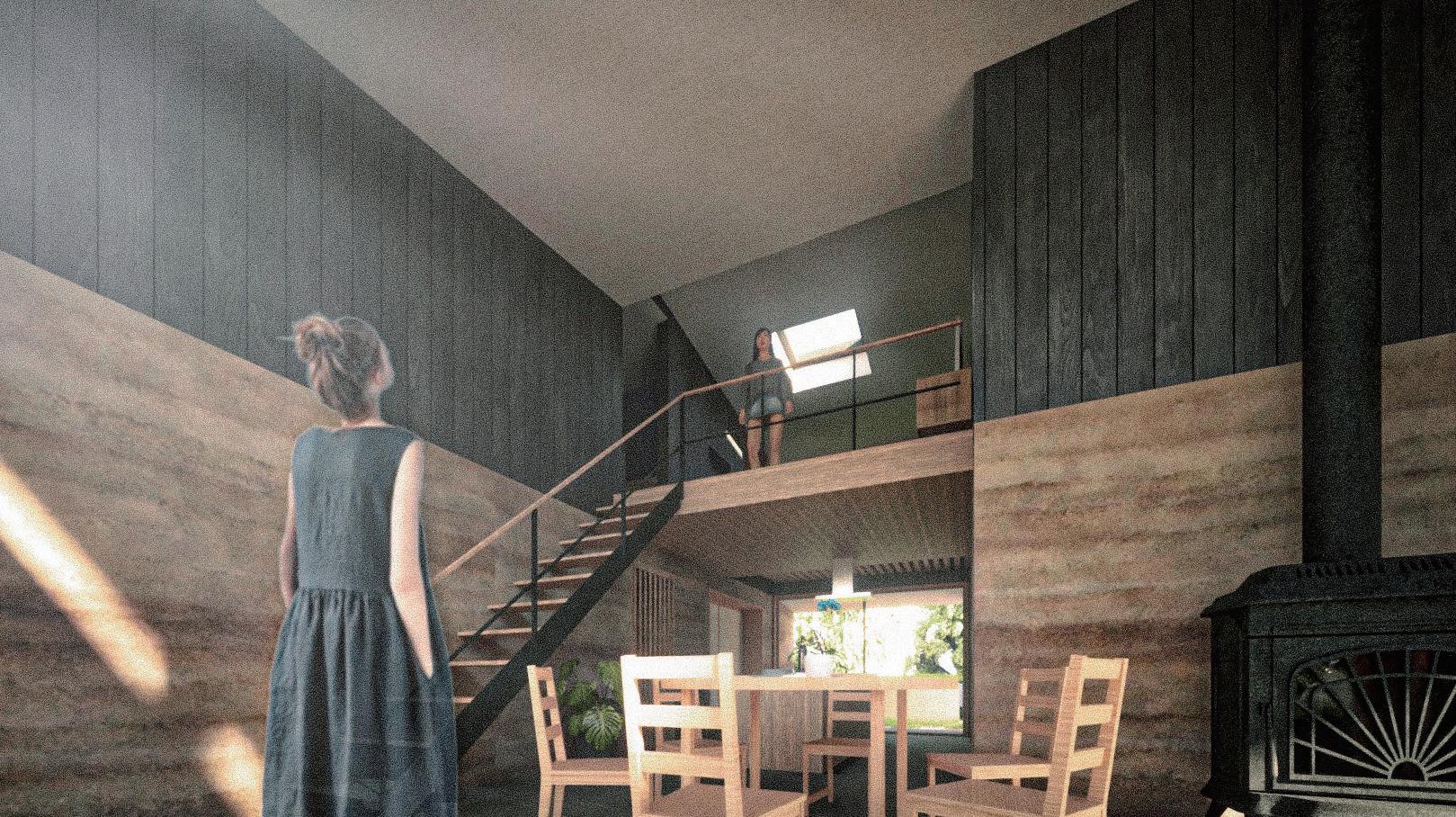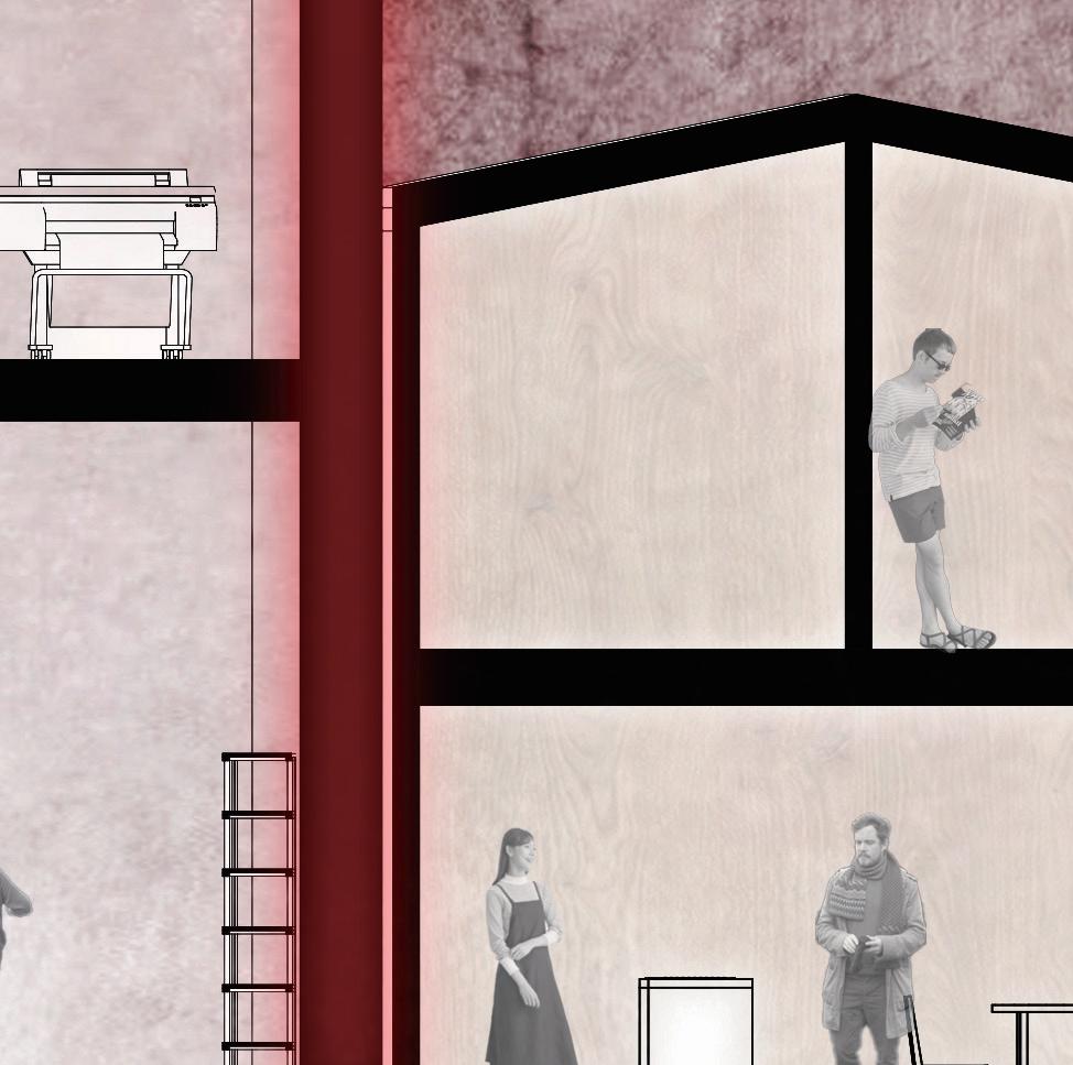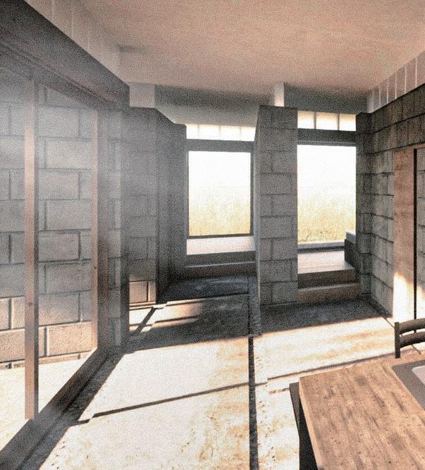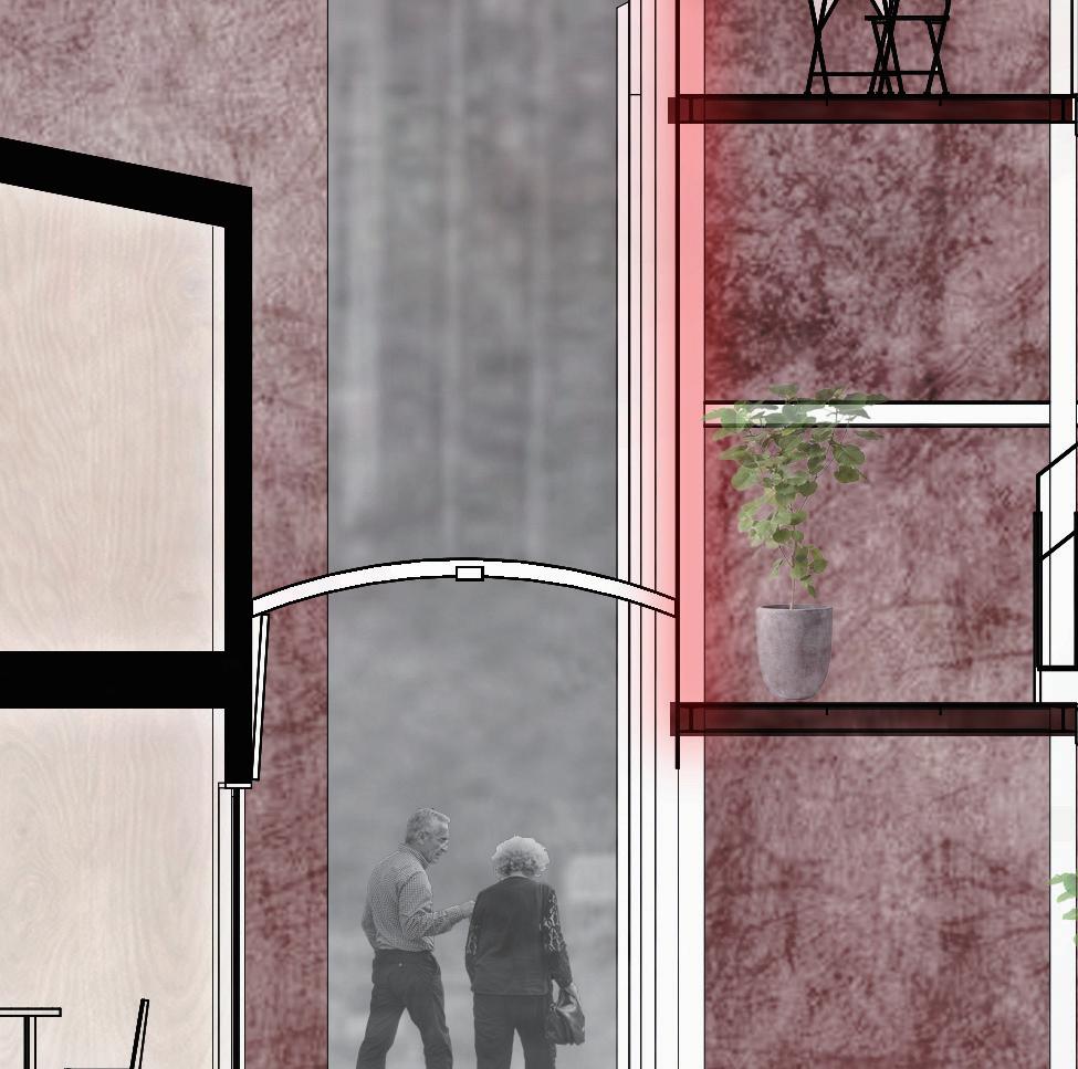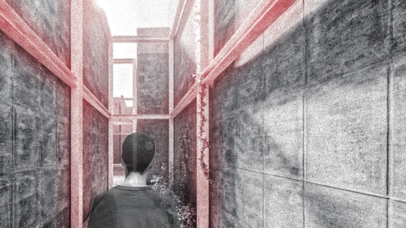 外界の情報と密接に関わっている現代、今一度自分を見つめて自己を確立してい くことが大切であると考えます。本提案では10代後半から20代の情報社会に 疲れ切ってしまい自己を確立したい方をメインターゲットとして、外界を遮断せ ず緩やかにつながった内省する部屋を提案します。独りで滞在したり、心を許し た人と過ごすことで自分と向き合います。