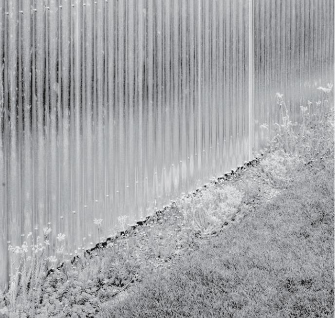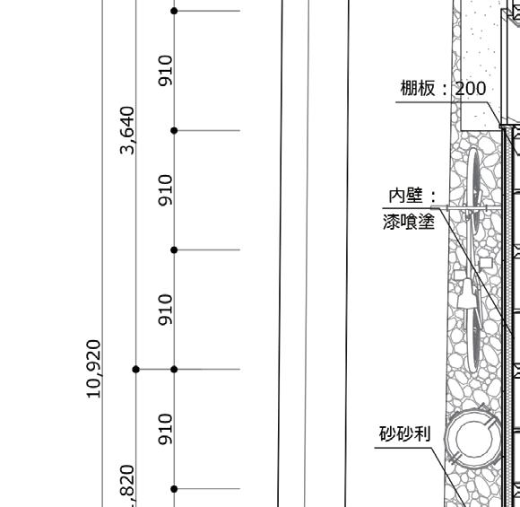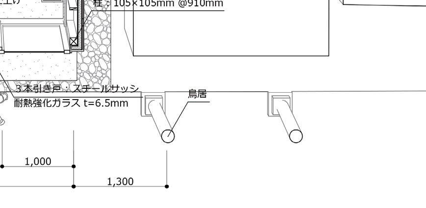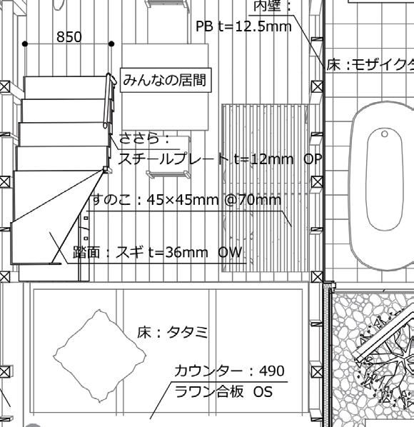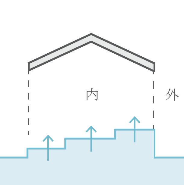 壁のように明確な境界面ではなく、床の縁に沿って曖昧な空間の輪郭を感じさせ ます。