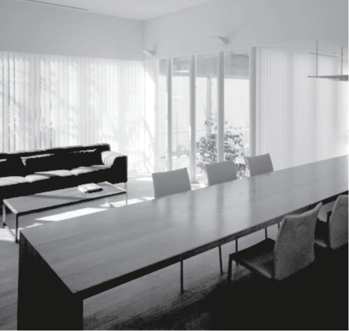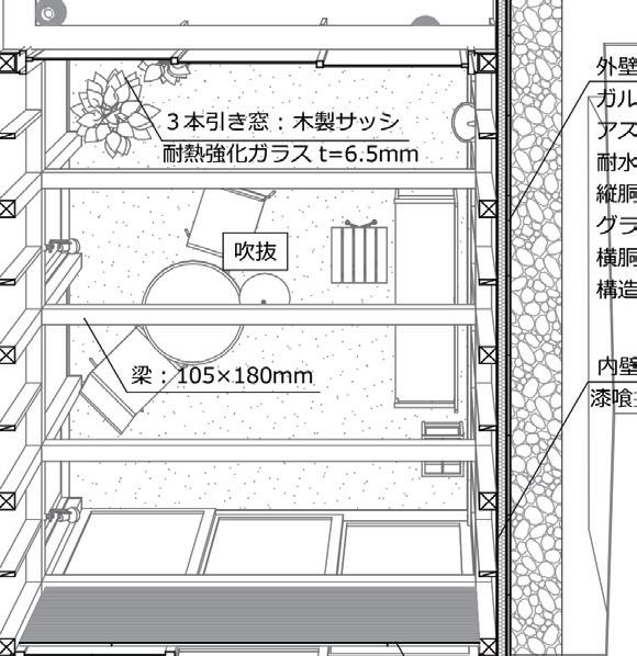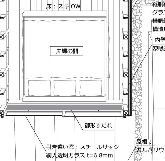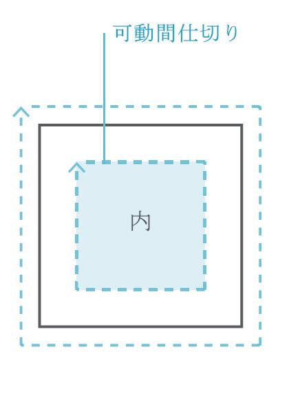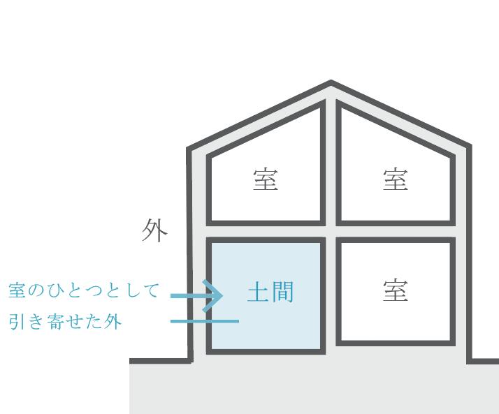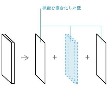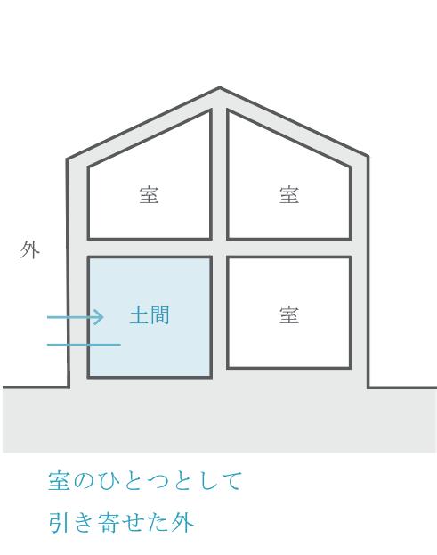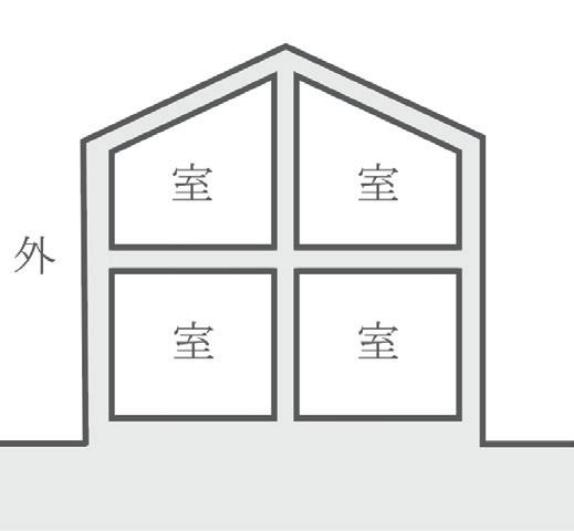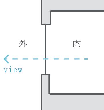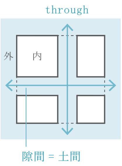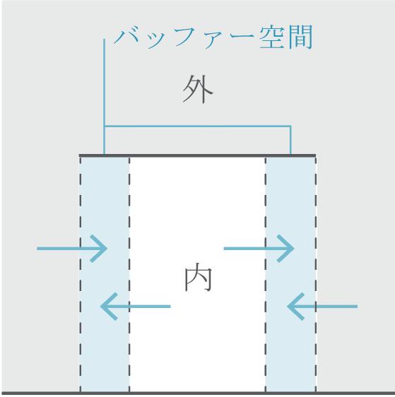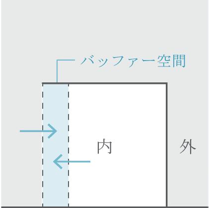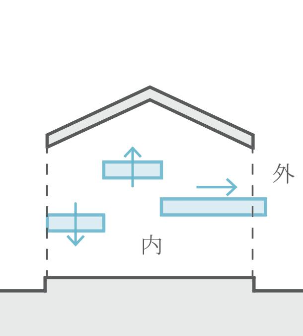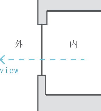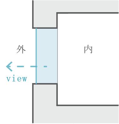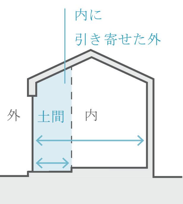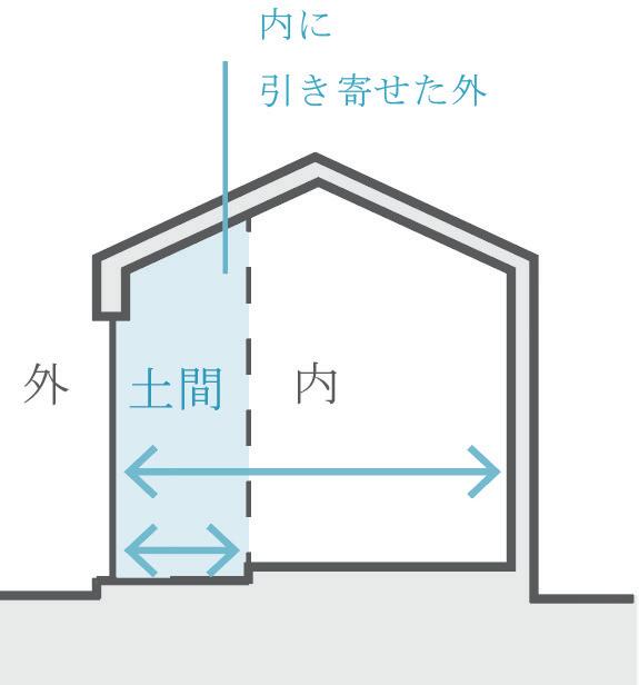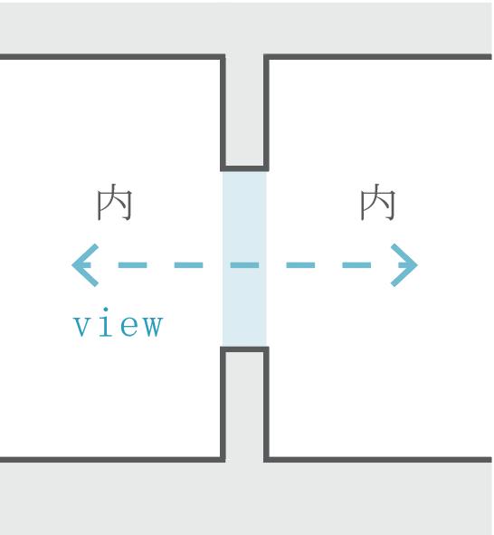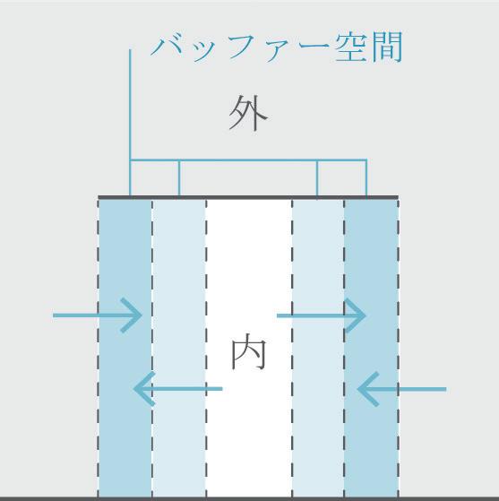 るべき外との境界面を内側に確保する仕組みを持ちます。それによって限られた 室内空間のかたわらに、広がりや奥行きを生み出します。