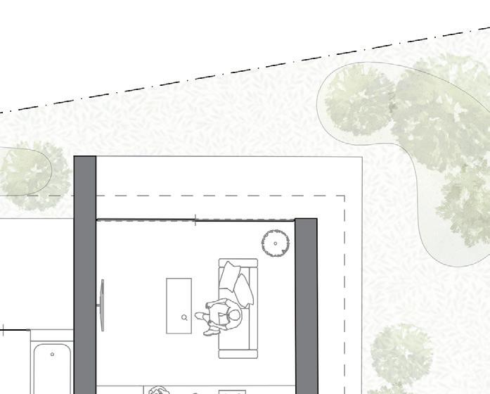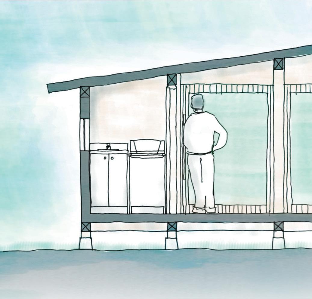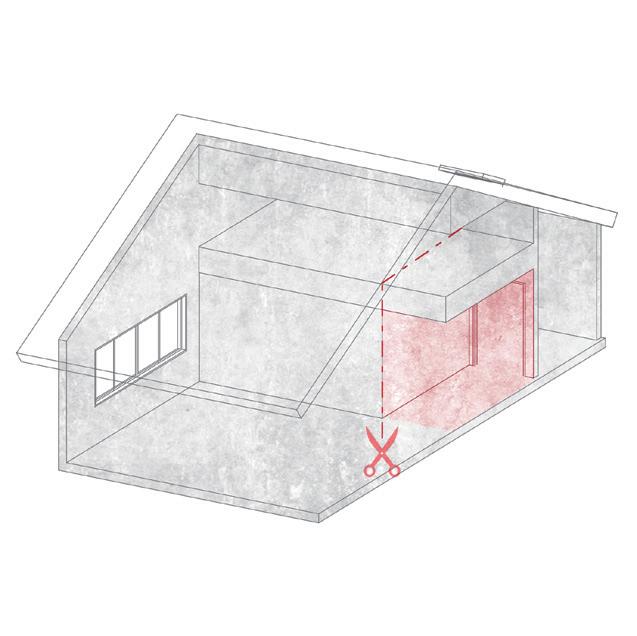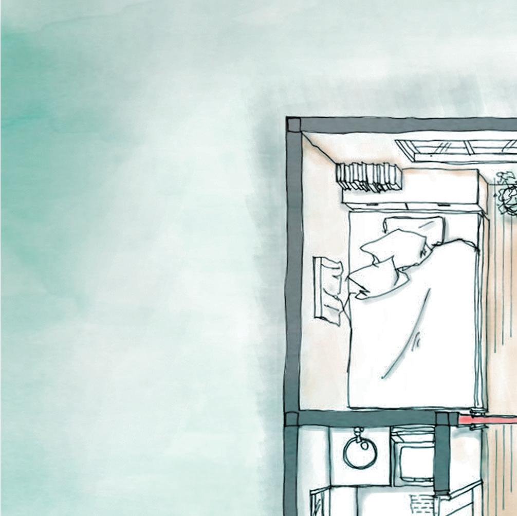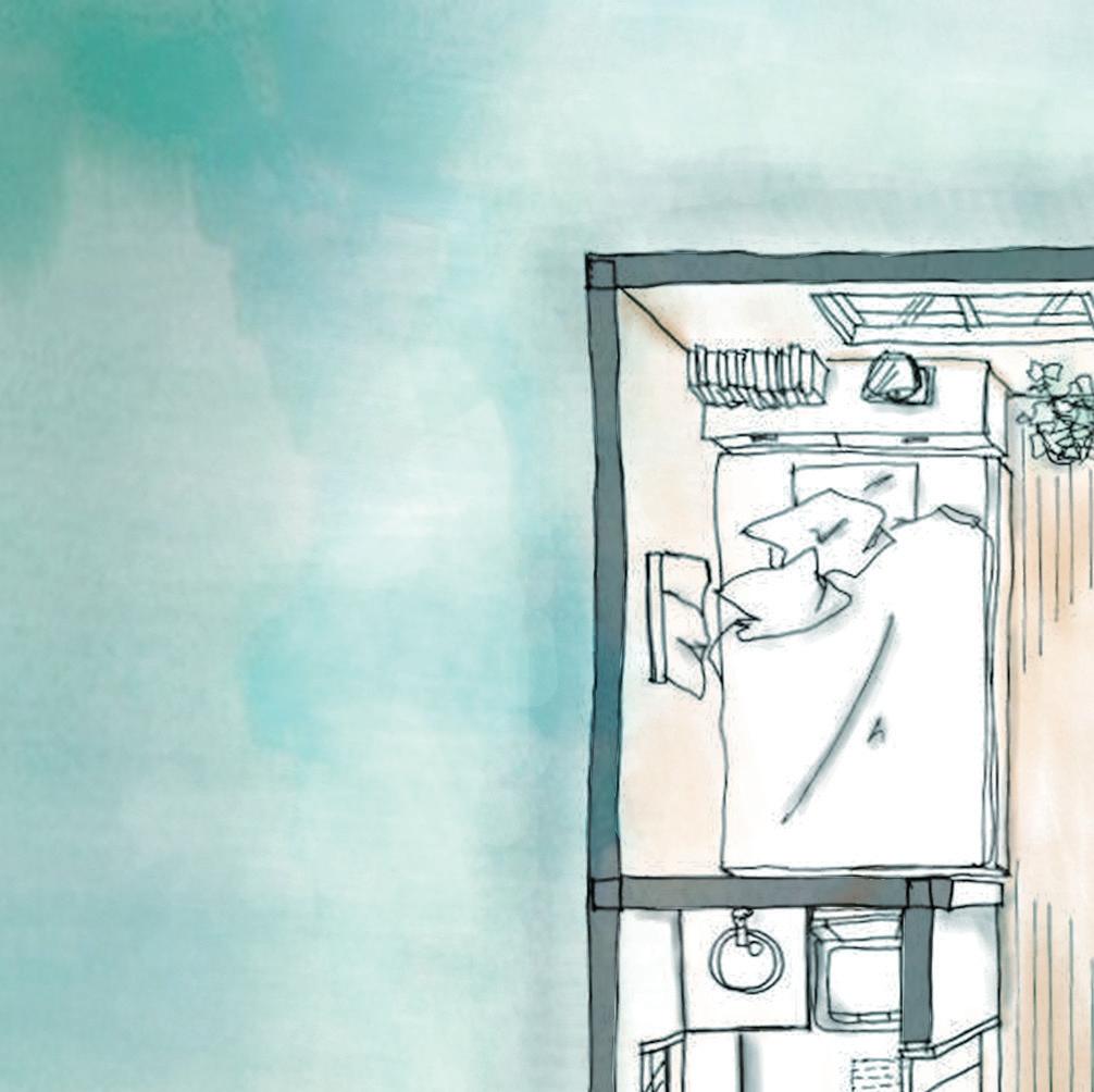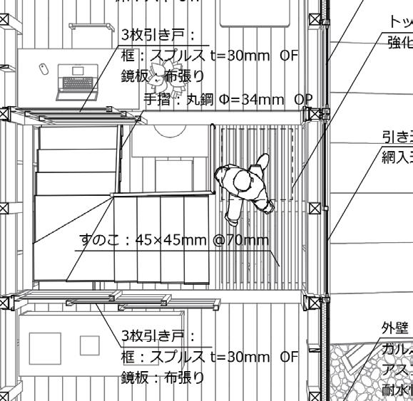 そのため本提案では部屋の中や外部の環境と緩やか につながりを持たせる。滞在した人が以前よりも外 界の広さに気付くきっかけとなる部屋である。