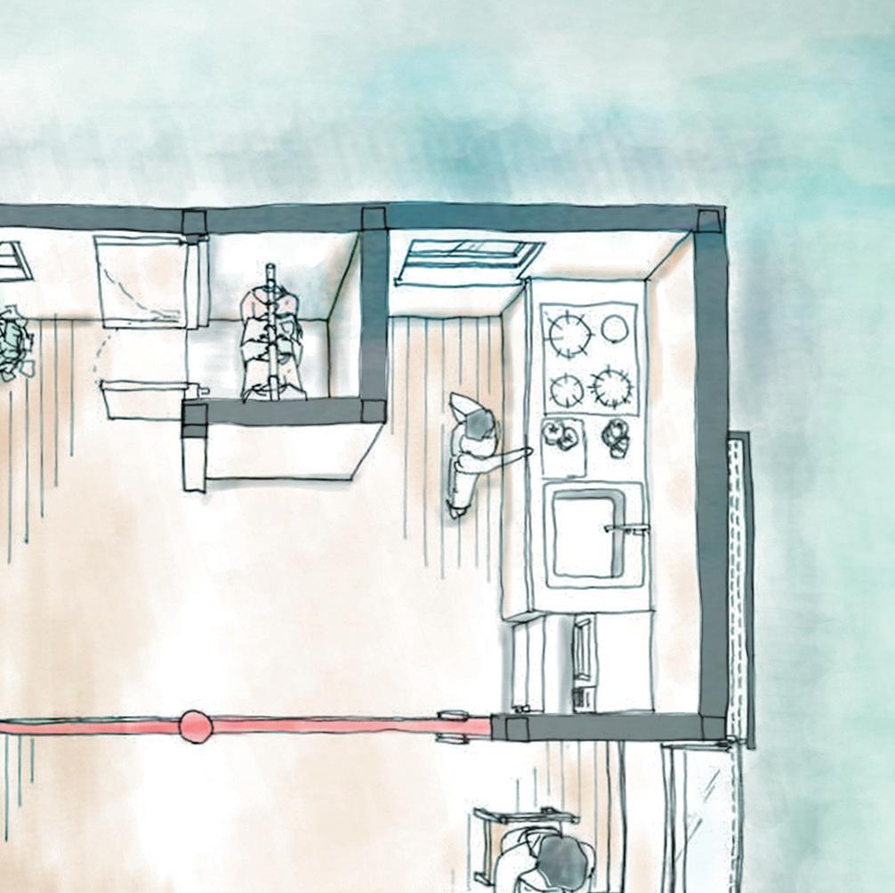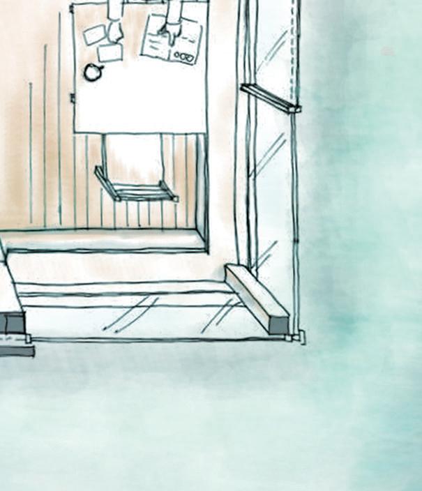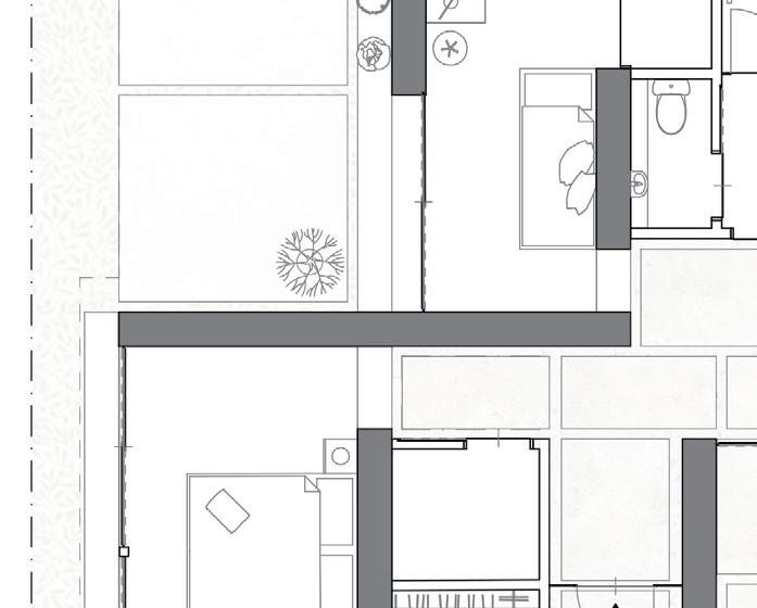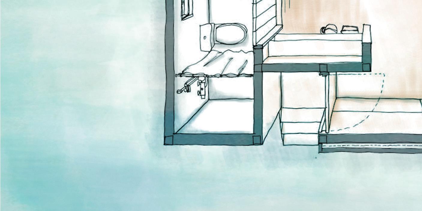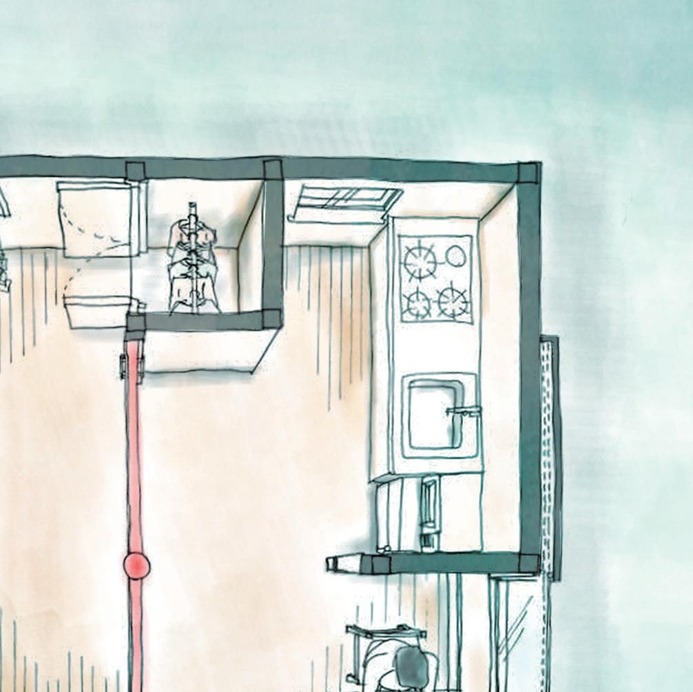 そのため本提案では部屋の中や外部の環境と緩やか につながりを持たせる。滞在した人が以前よりも外 界の広さに気付くきっかけとなる部屋である。