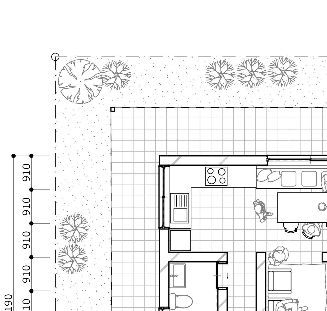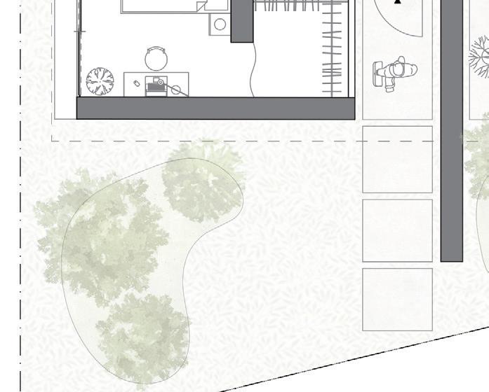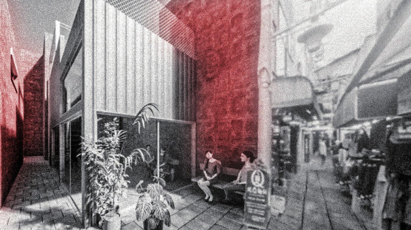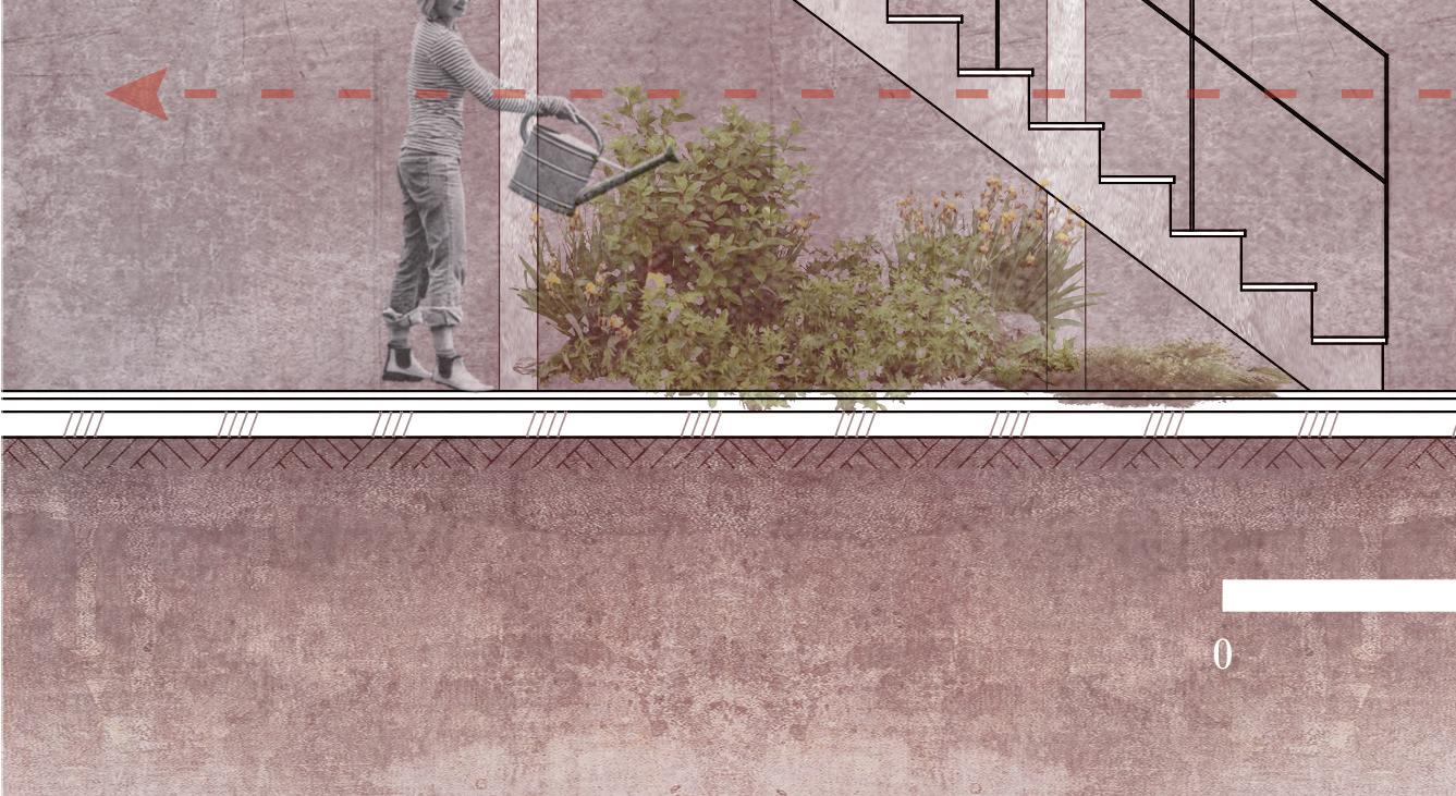このことを踏まえて、木漏れ日に包まれる、身体ス ケールに寄り添った花と緑の屋台を提案します。