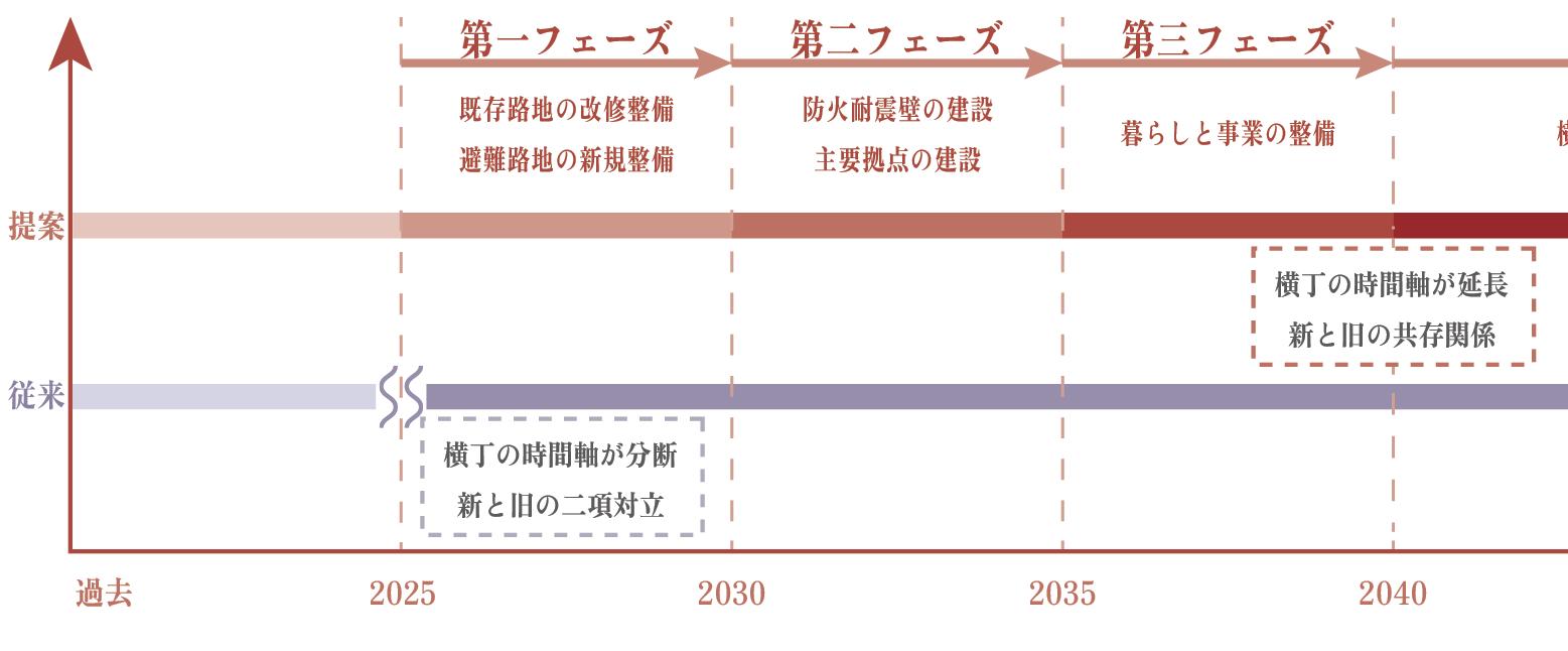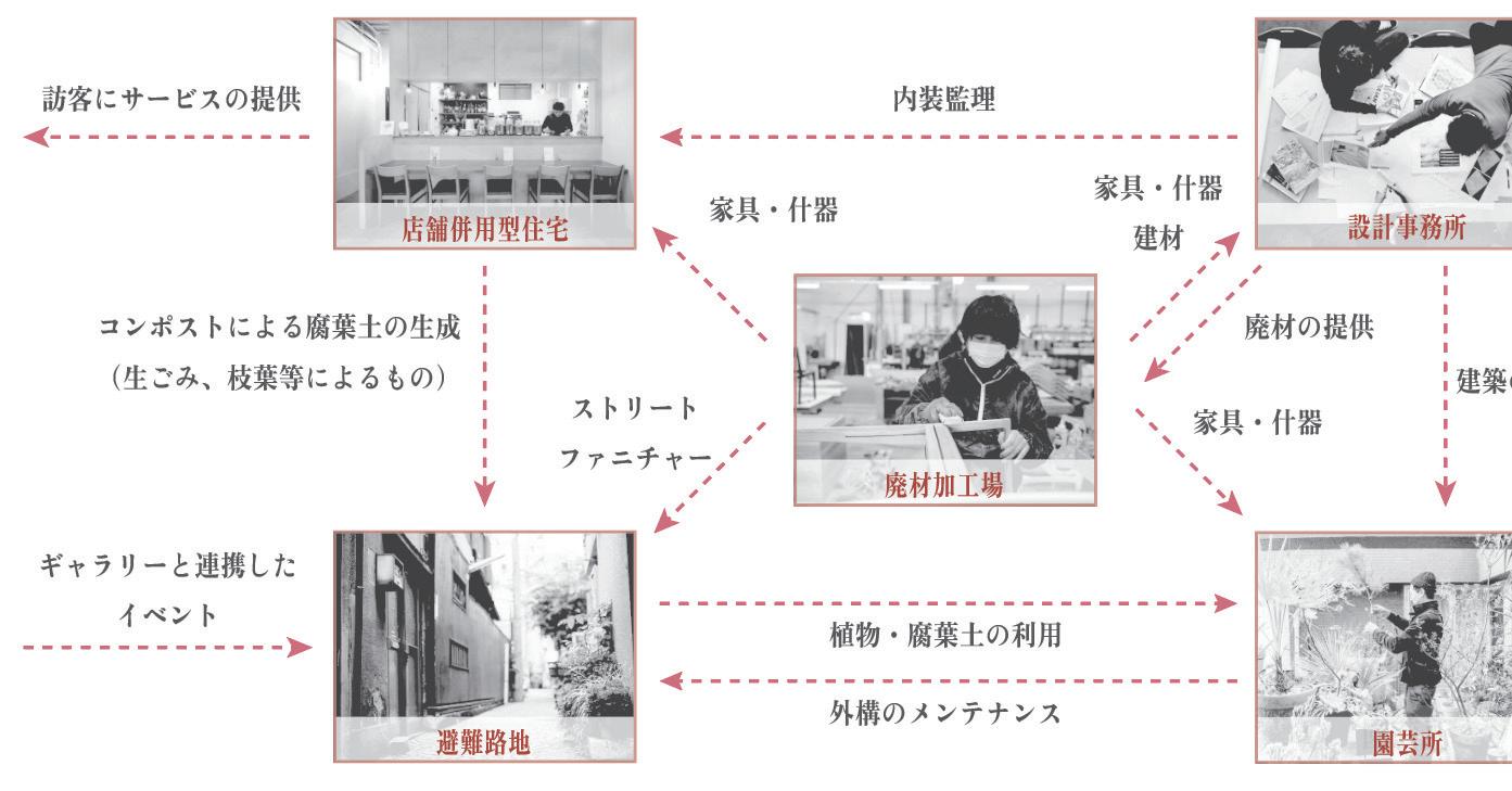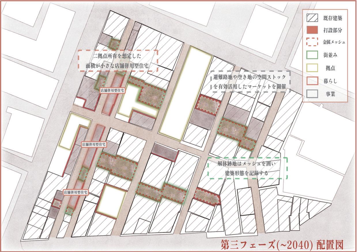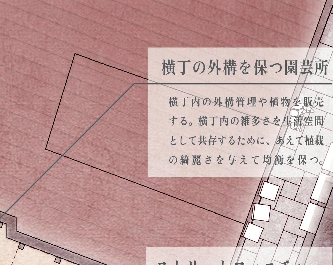 昨今の情報社会ではSNS での過剰な人の距離感を持 つ一方で現実での繋がりは増々希薄化し、両者の繋 がり方には大きな差が生じています。そのため空間 というヒト・モノ・コトの基盤の境界性を整えるこ とが必要であると考えます。