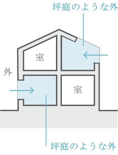 坪庭を内包する住居の形式は、採光・通風などを主な目的として、本来外周にあ