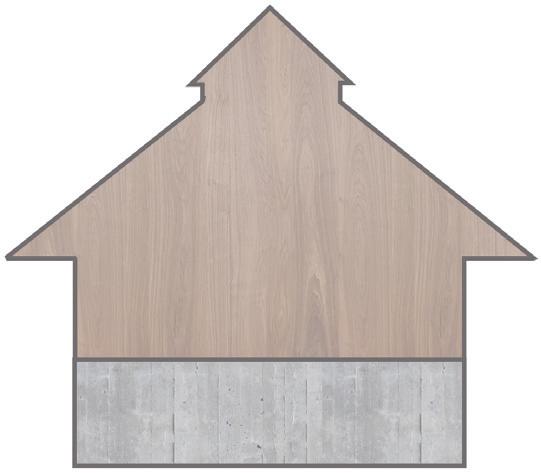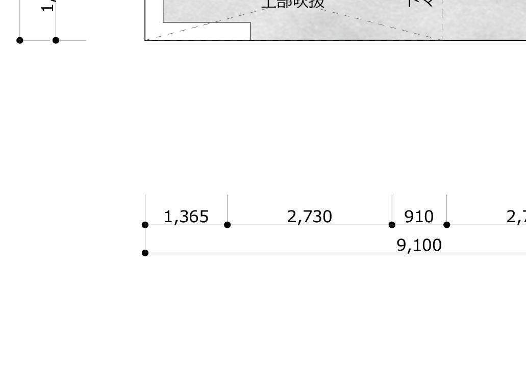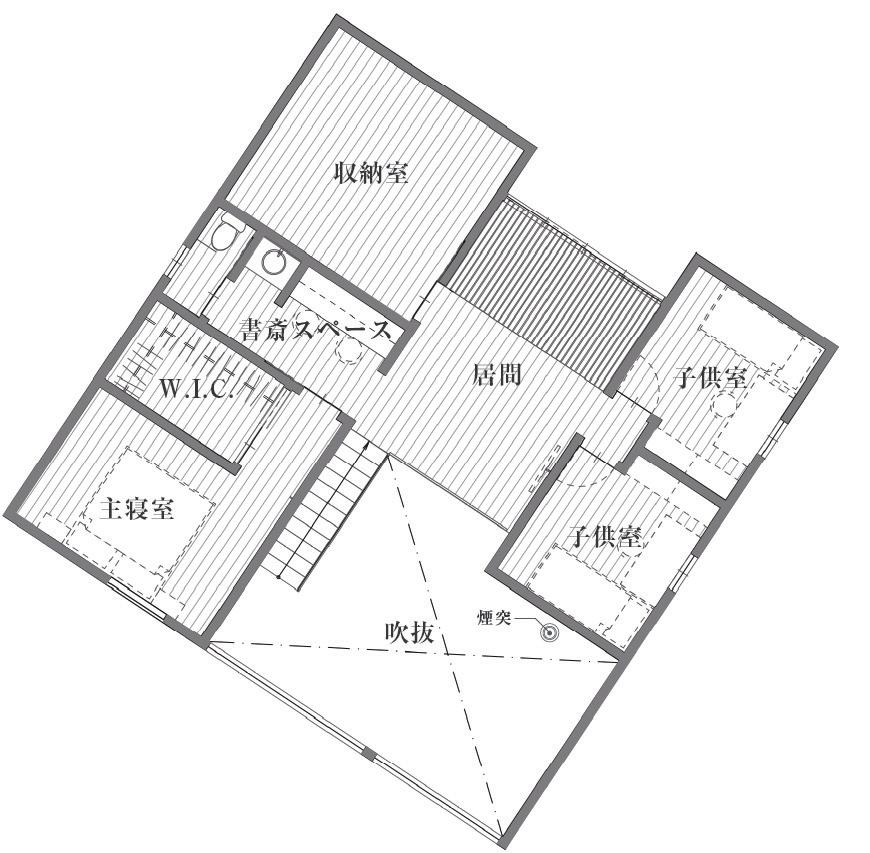 片流れのシンプルな構成は、小さな空間でも抑揚 をもたらすことができる。