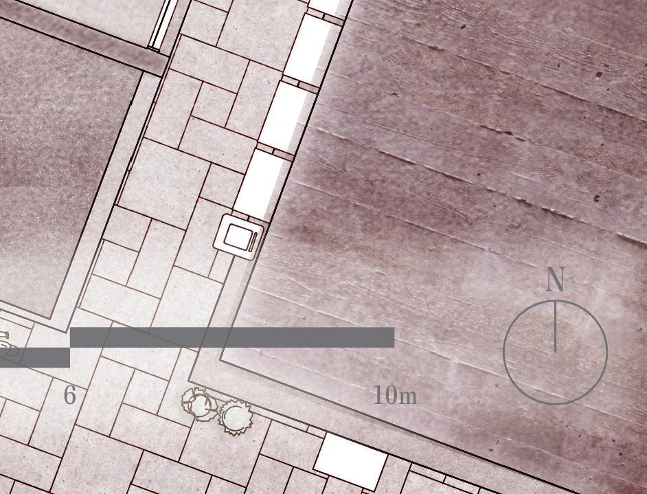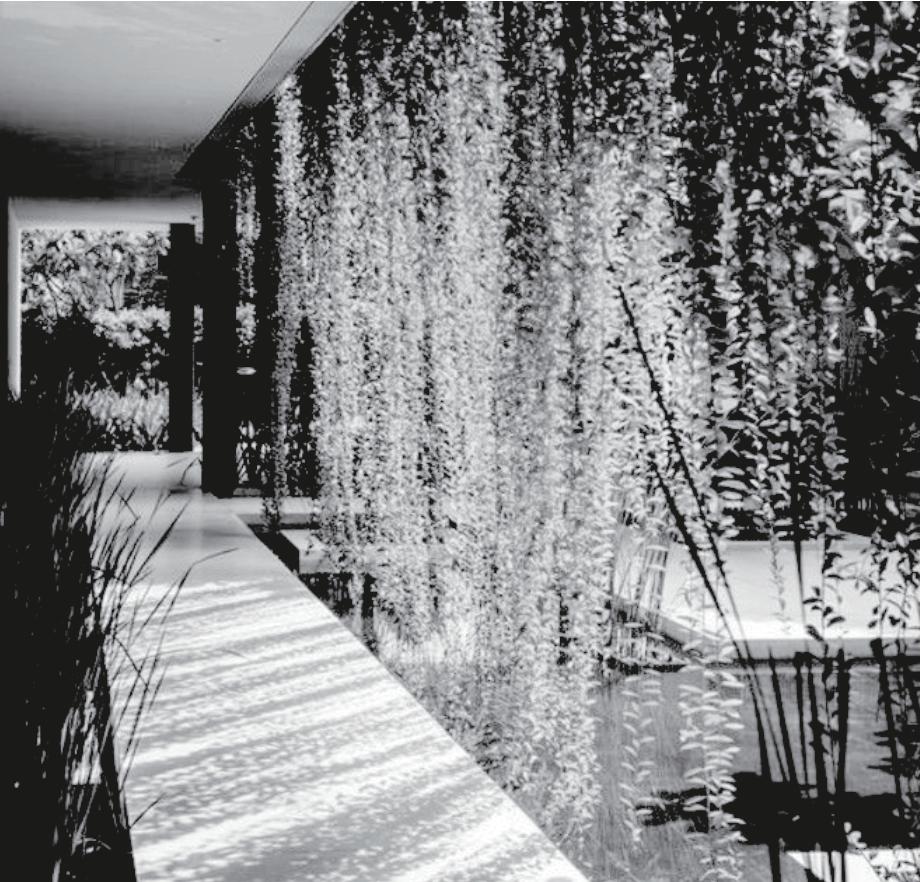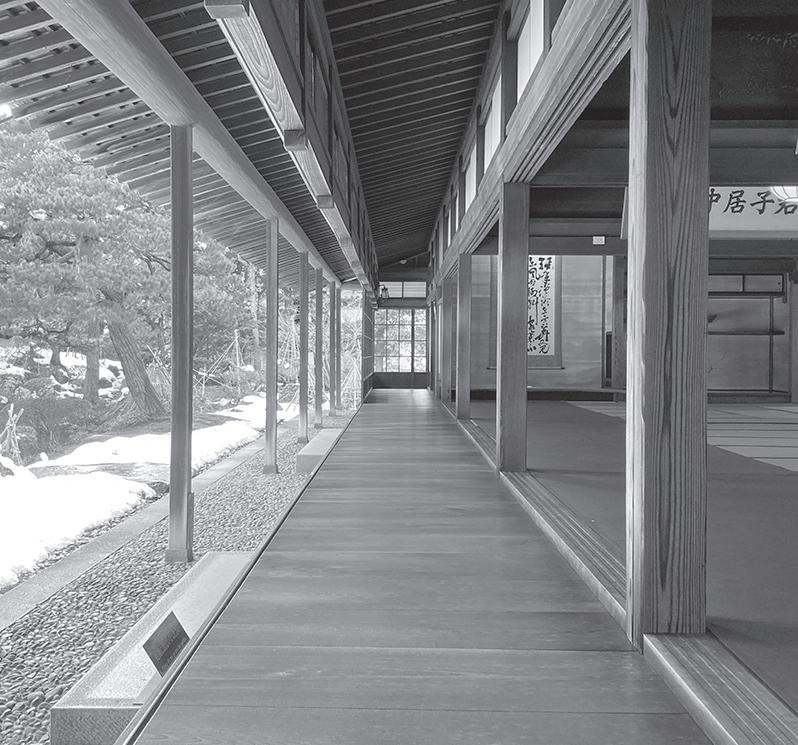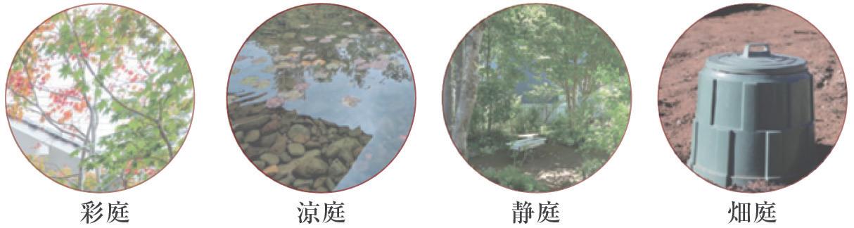 現代では坪庭のような空間を挟んで、室同士を関係づけたり、回廊的な坪庭を周 辺環境とのバッファーとする形式が見られます。 [坪庭]