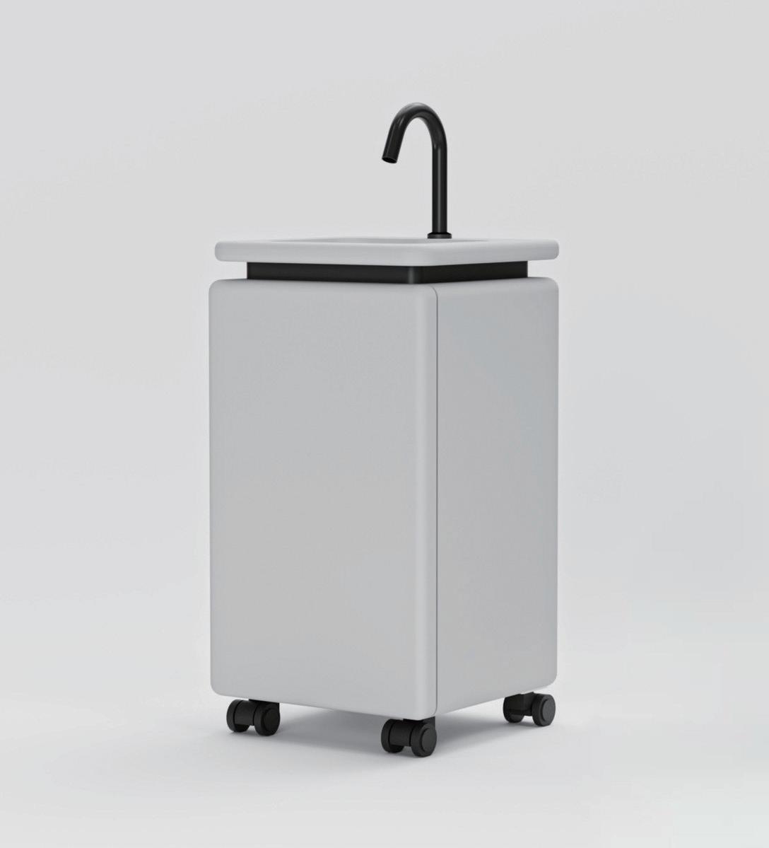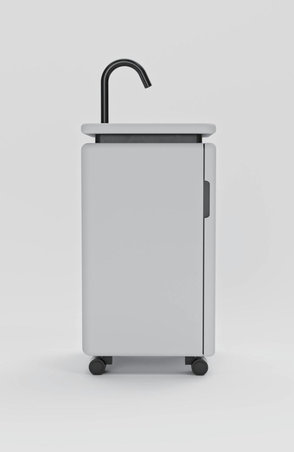 『Wota-gon』は充電式の水循環型システムを内蔵 した、移動洗面台です。