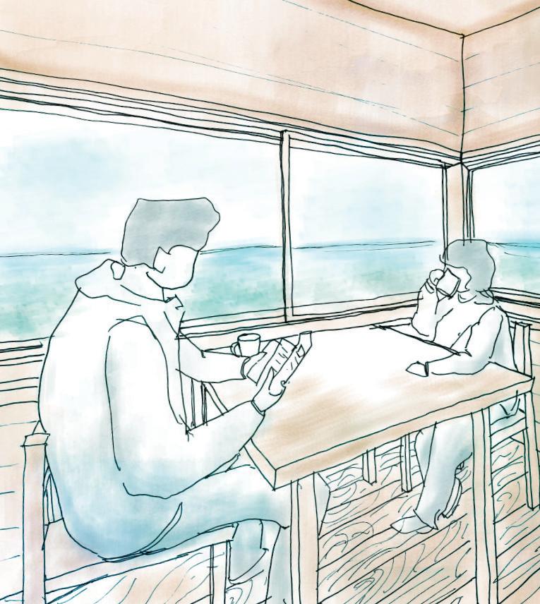 翌朝、目が覚めると友人は回転扉の向こう側でコー ヒーを淹れてくれていた。朝食を食べて、私たちは「か んこう」に出発した。