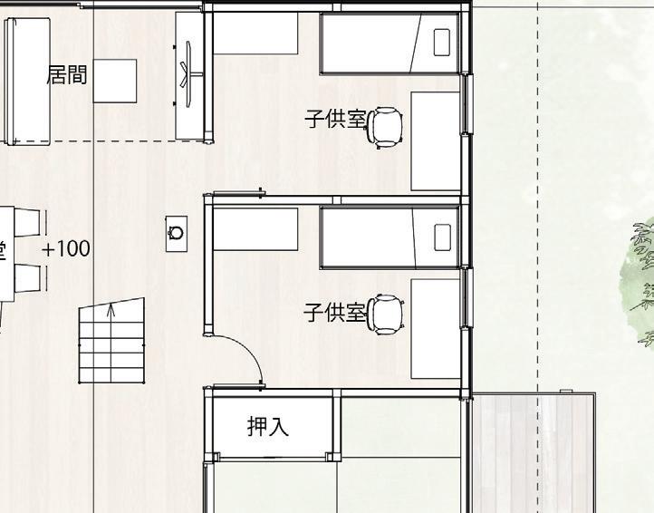 したがって、視線は遮りつつも緩やかなひとつながりの空間にし、部屋内や外の 環境との繋がりを持つよう設計しました。