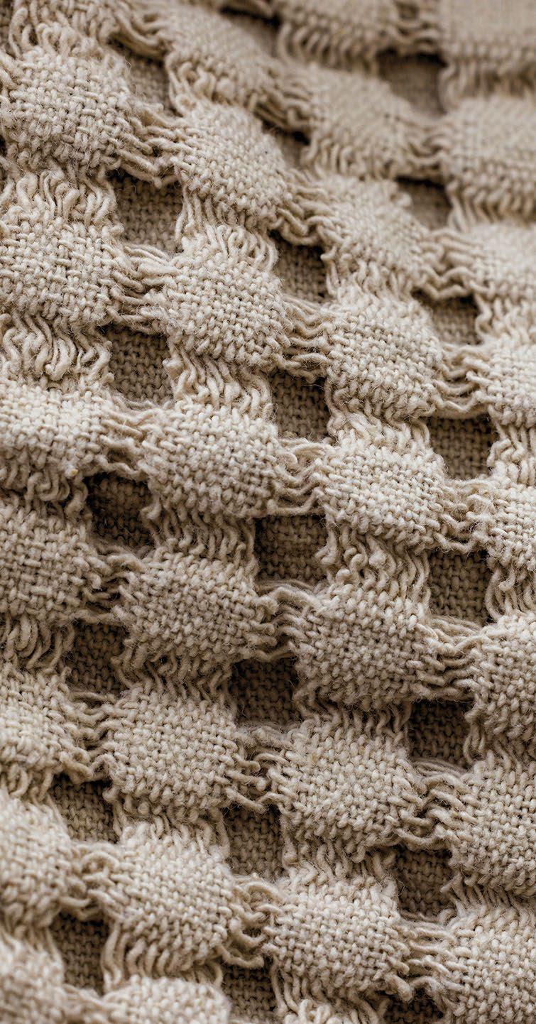 Layered weave shapes a sense of depth and comfort, reconnection texture with meaning. Warmth and versatility, designed to pair with Interlaced and Understated.