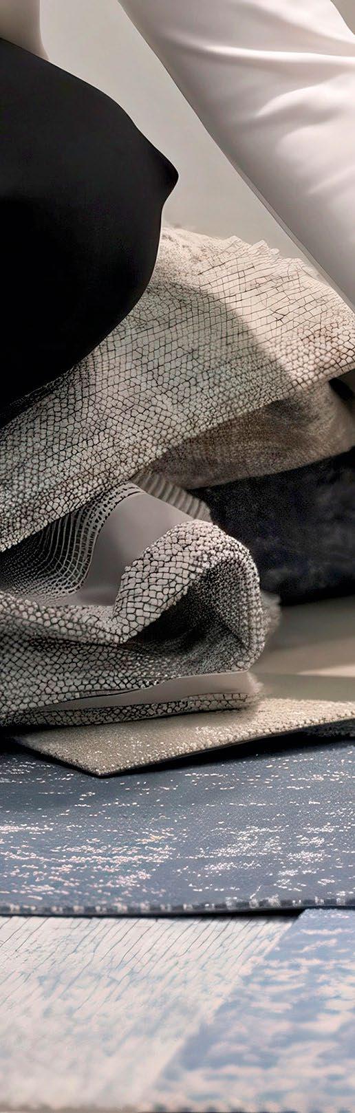 A sophisticated evolution and celebration of timeless blues and greys. Subtle embrace of gentle transitions rather than bold contrasts. Soft, smoky tones and muted hues create an elevated, understated elegance, where colour unfolds quietly through layered textures and thoughtful accents.