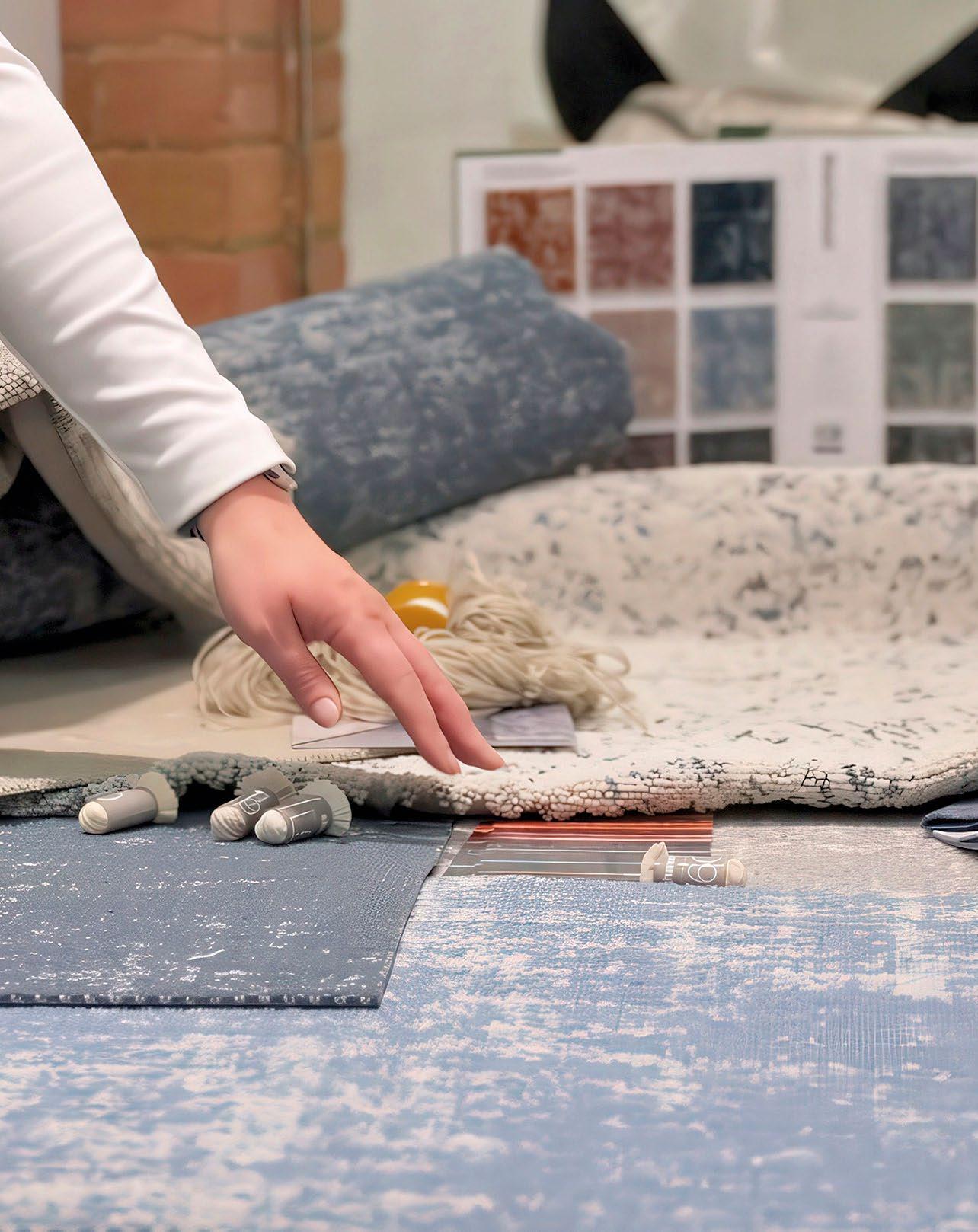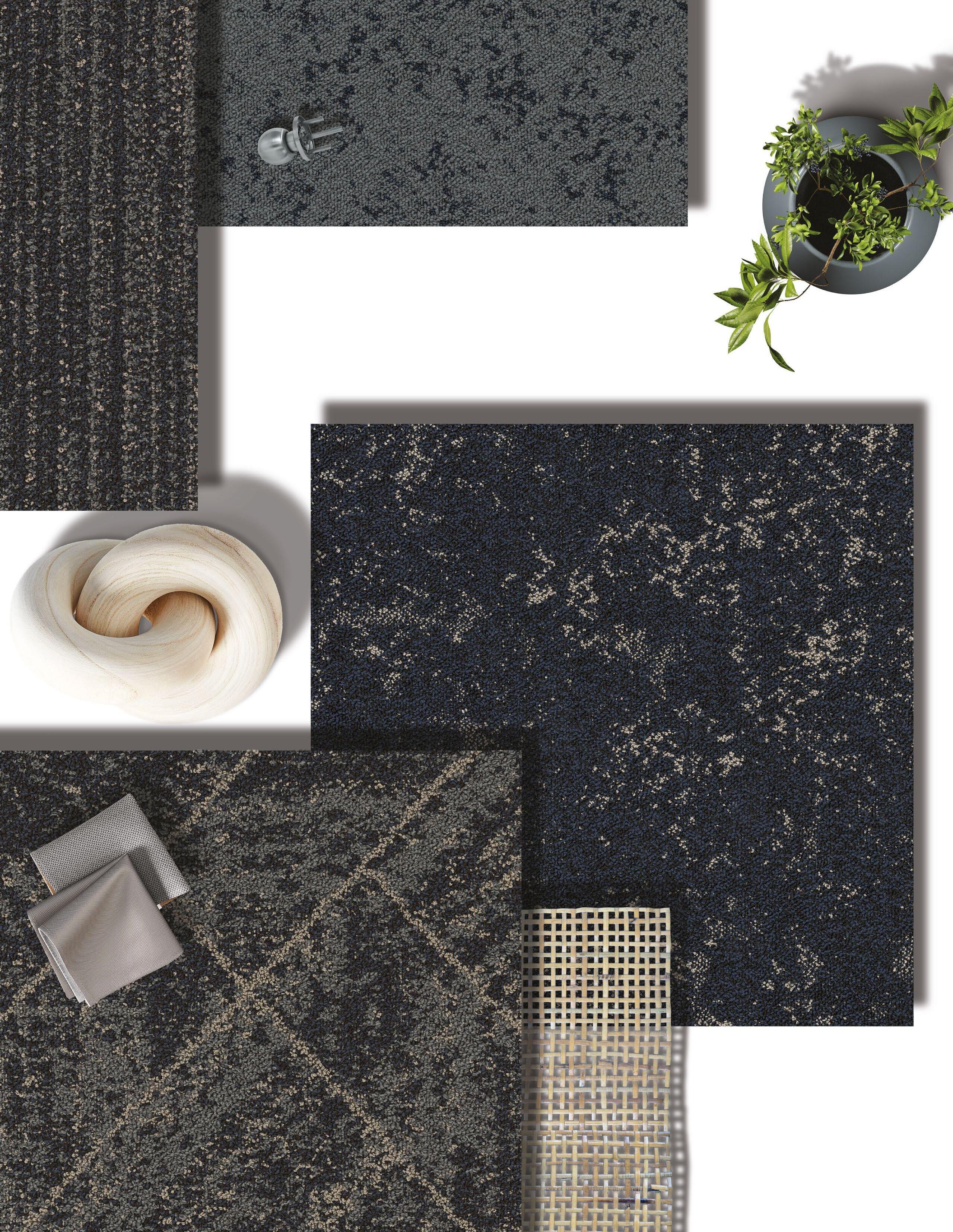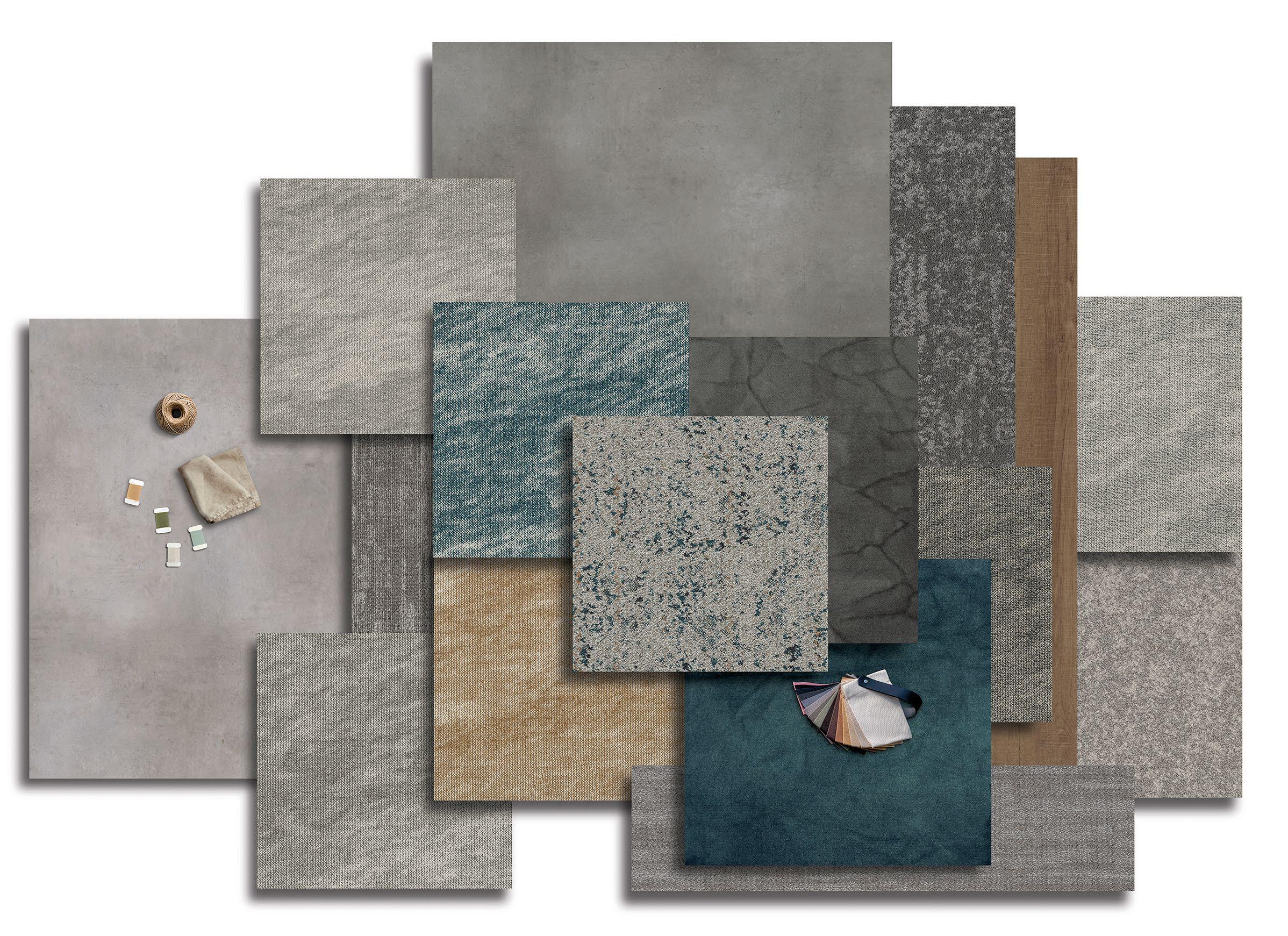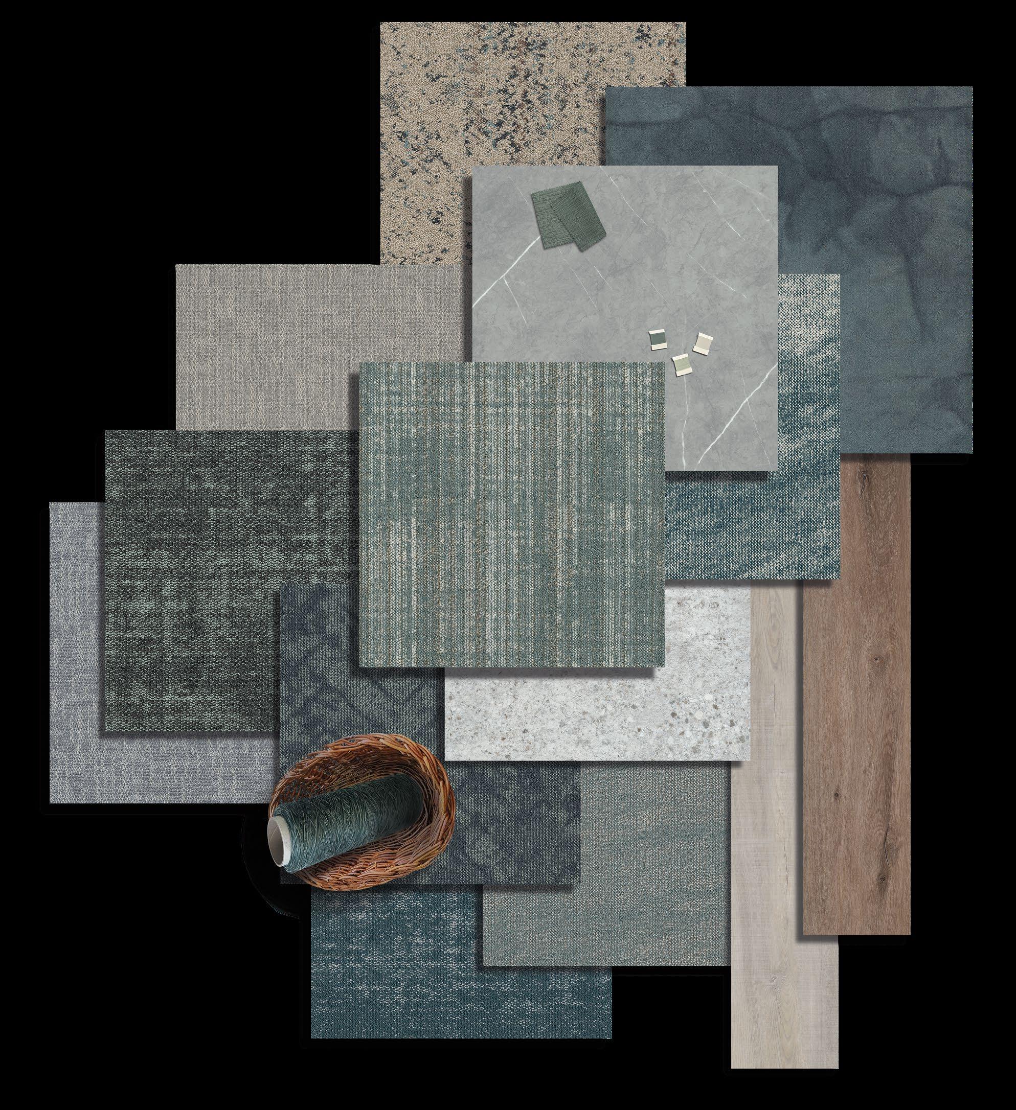 An evolution of moody blues and greys, blending mineral greys, storm cloud blues, warm beiges, and walnut tones to create a sophisticated, earthy and grounded ambiance. Subtle yet purposeful contrasts brings depth and warmth, offering a sophisticated, timeless composition that feels both inviting and effortlessly balanced.