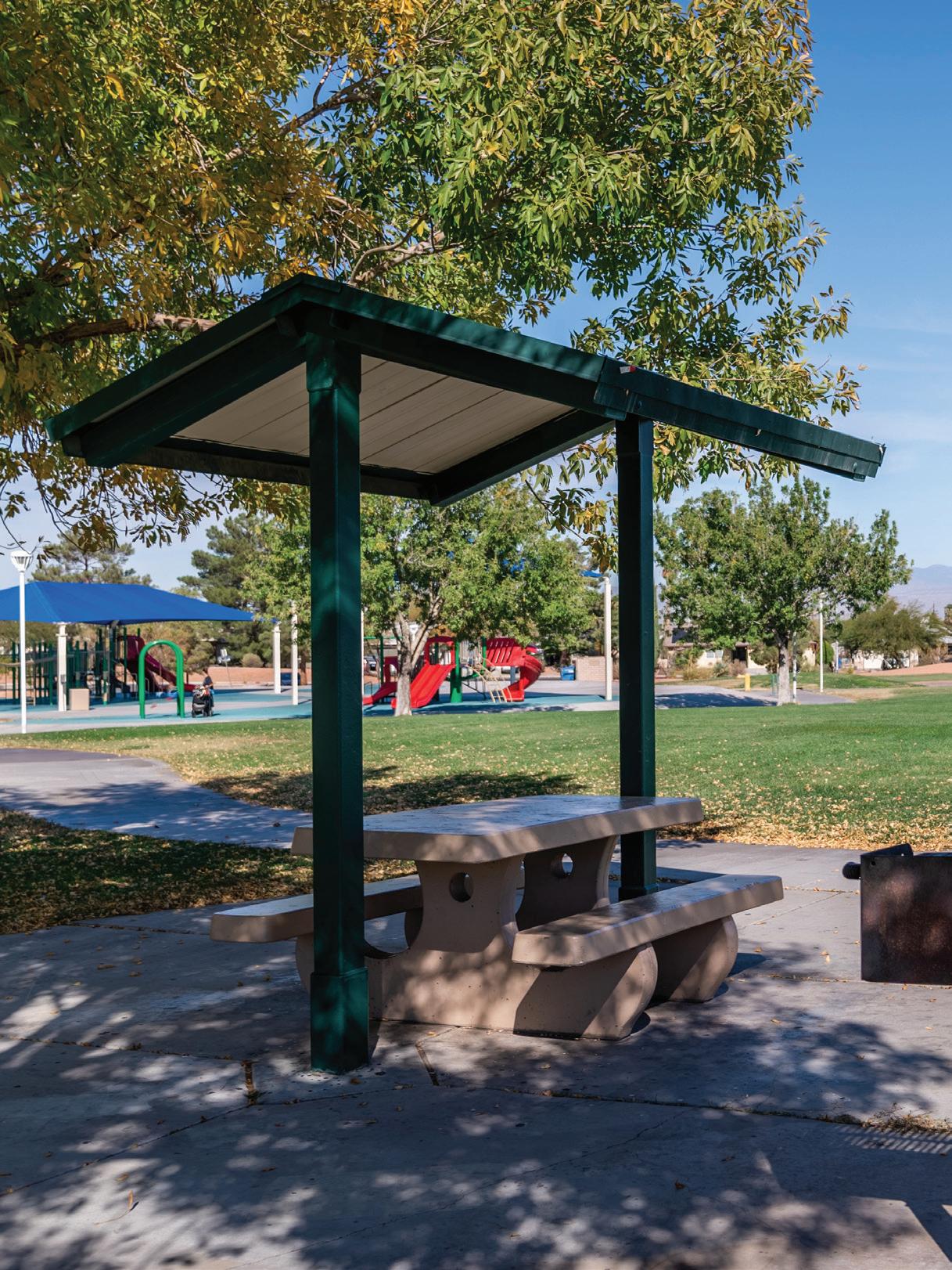 Park pavilions are available for groups up to 200 people and cost between $15 — $75 per hour, depending on the size of your group. In addition to shade, some of these areas have large tables and barbecue grills. To reserve a park pavilion or picnic shelter, contact our reservations line at 702.229.6718.
