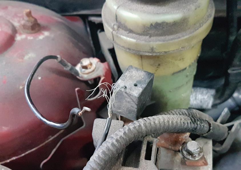 “I don’t understand why you’re charging me so much. The engine was simply making a noise. I mean, how much can it cost to fi x a simple noise? I want to see the manager.” This really happened. The customer (a female, in her 40s) brought her husband’s 2002 Ford F350 RWD to a shop to have an “engine noise” fi xed. It quickly became obvious that the “noise” was due to a completely devastated left front wheel bearing, where the wheel was about to come off had the truck been driven another mile or so. The damage involved not only the wheel bearing, but the spindle (requiring a complete steering knuckle replacement). In addition, though unrelated to the wheel bearing issue, the caliper had seized up, the brake rotor was trashed and the brake hose was cracked and split.