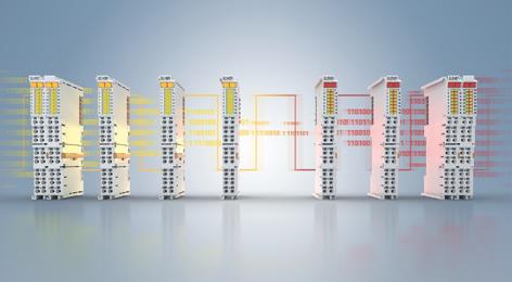 EtherCAT terminals enable flexible logic configuration in I/O, and add an input filter. EL14xx’s I/O are all 24 V DC with a 3 ms input filter, and include three with 16-channel, digital inputs, one with a 32-channel, digital input, and positive or ground switching or both. EL24xx’s I/O are all 24 V DC, and include two with 16-channel, digital inputs, one with a 32-channel, digital input, and positive or ground switching.