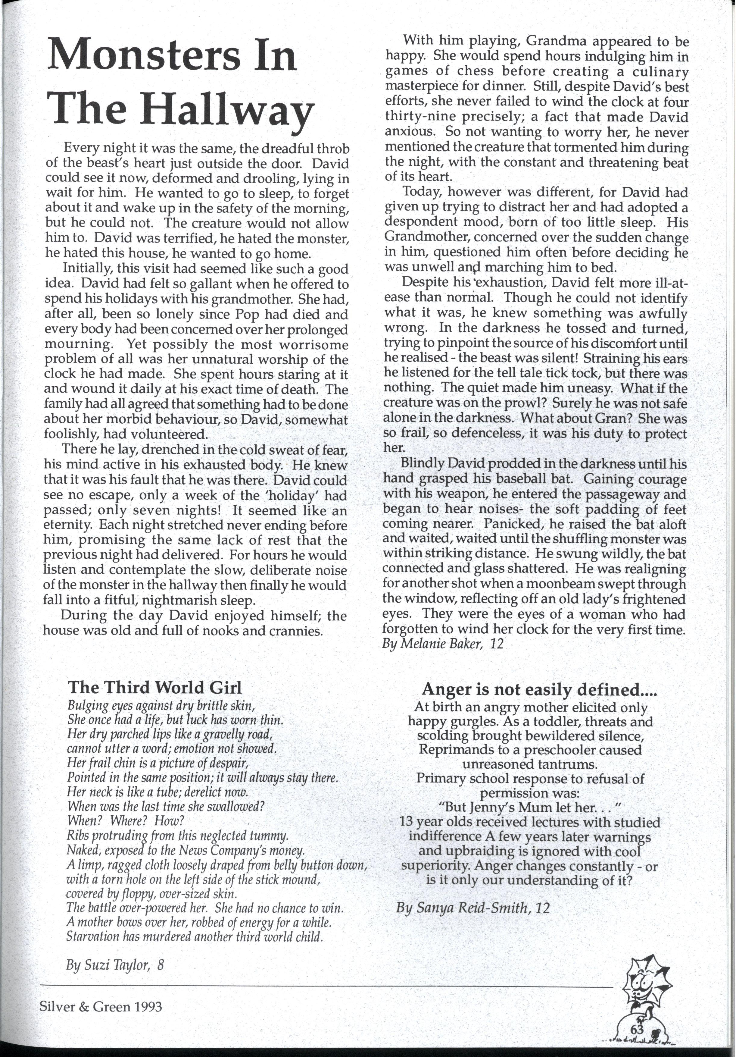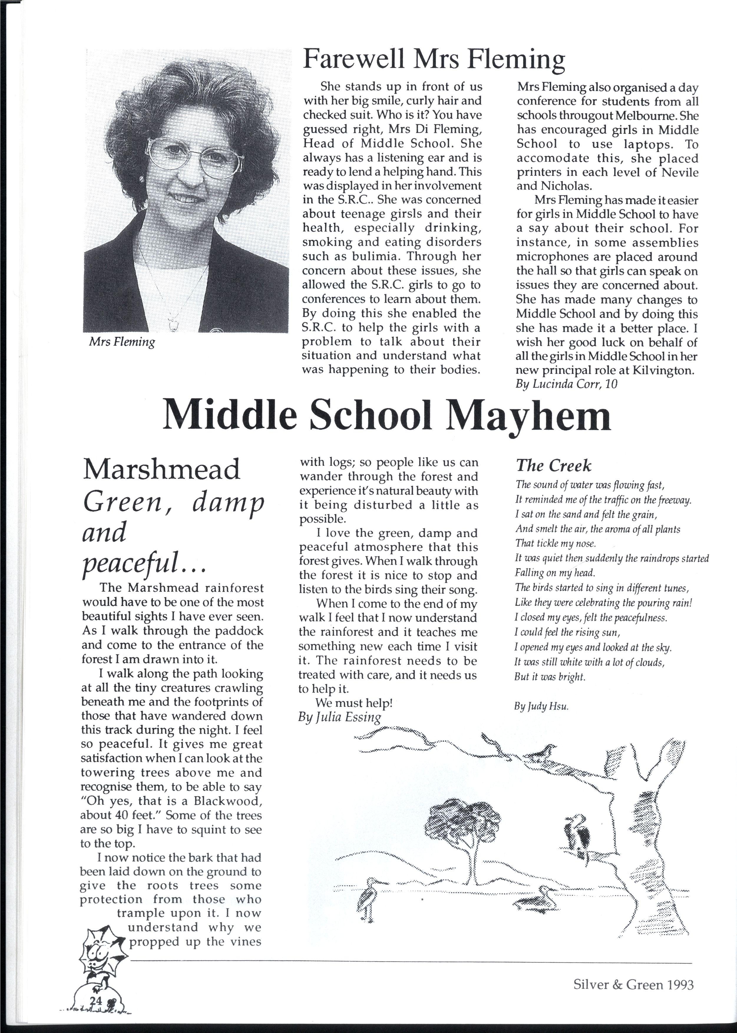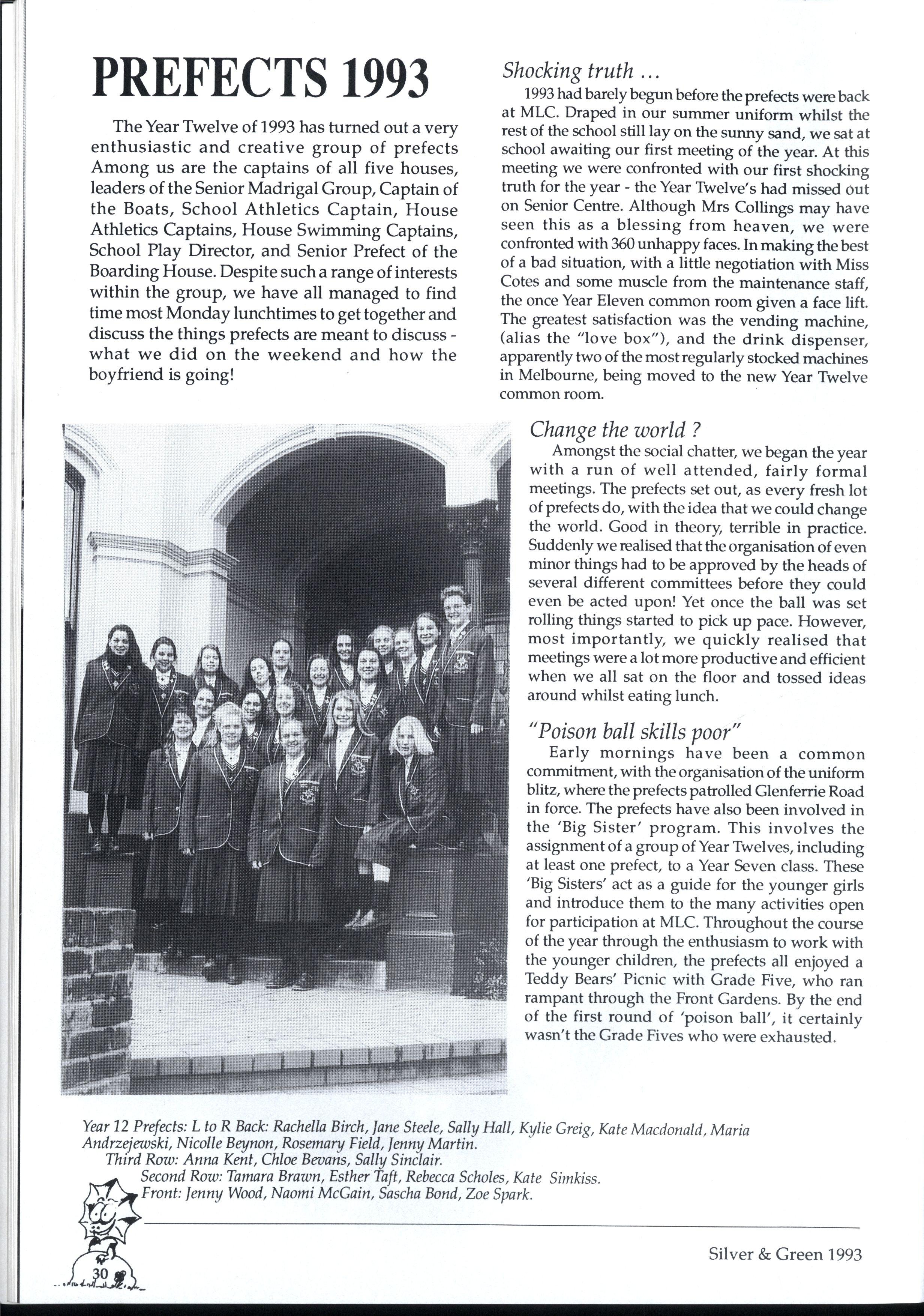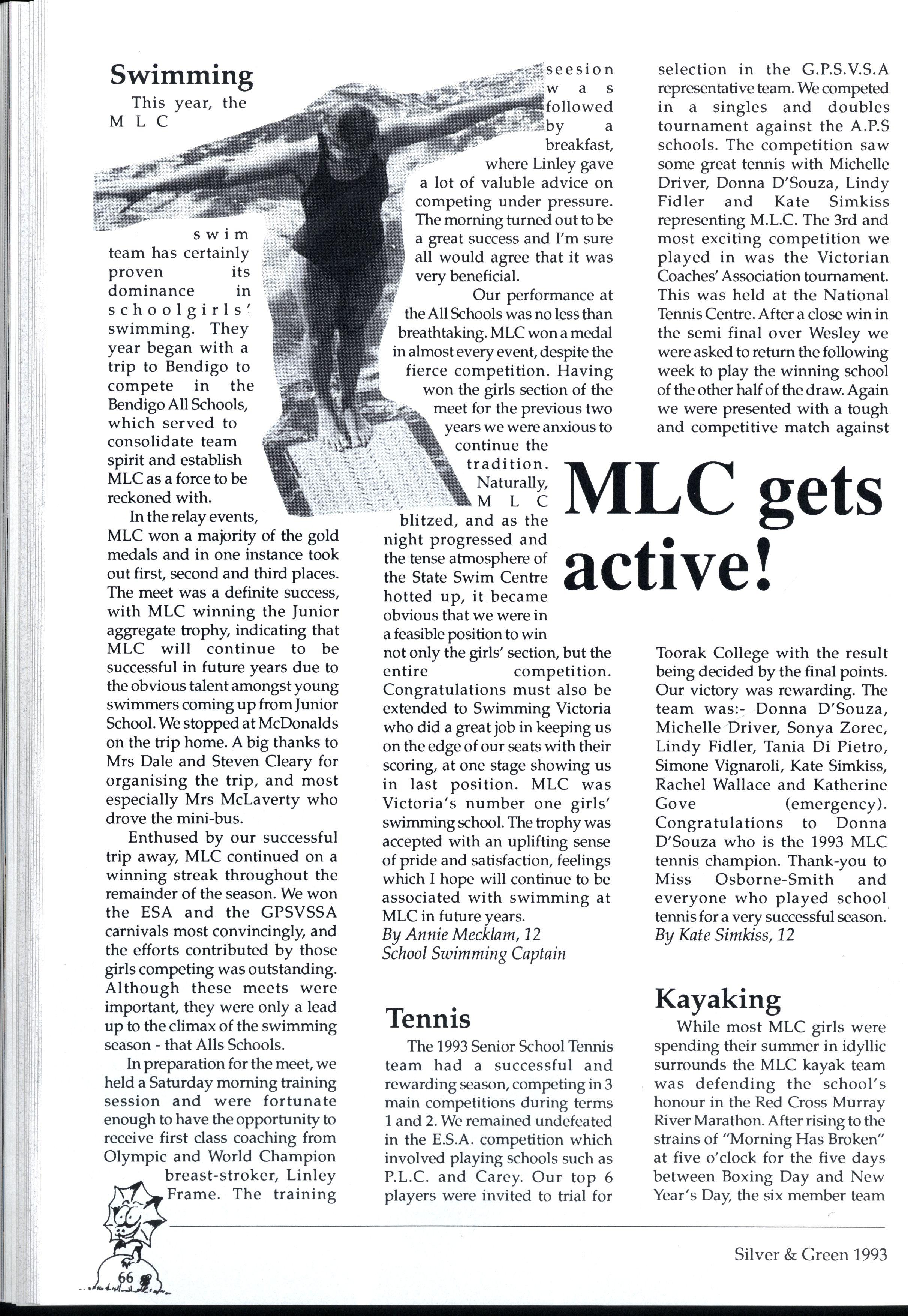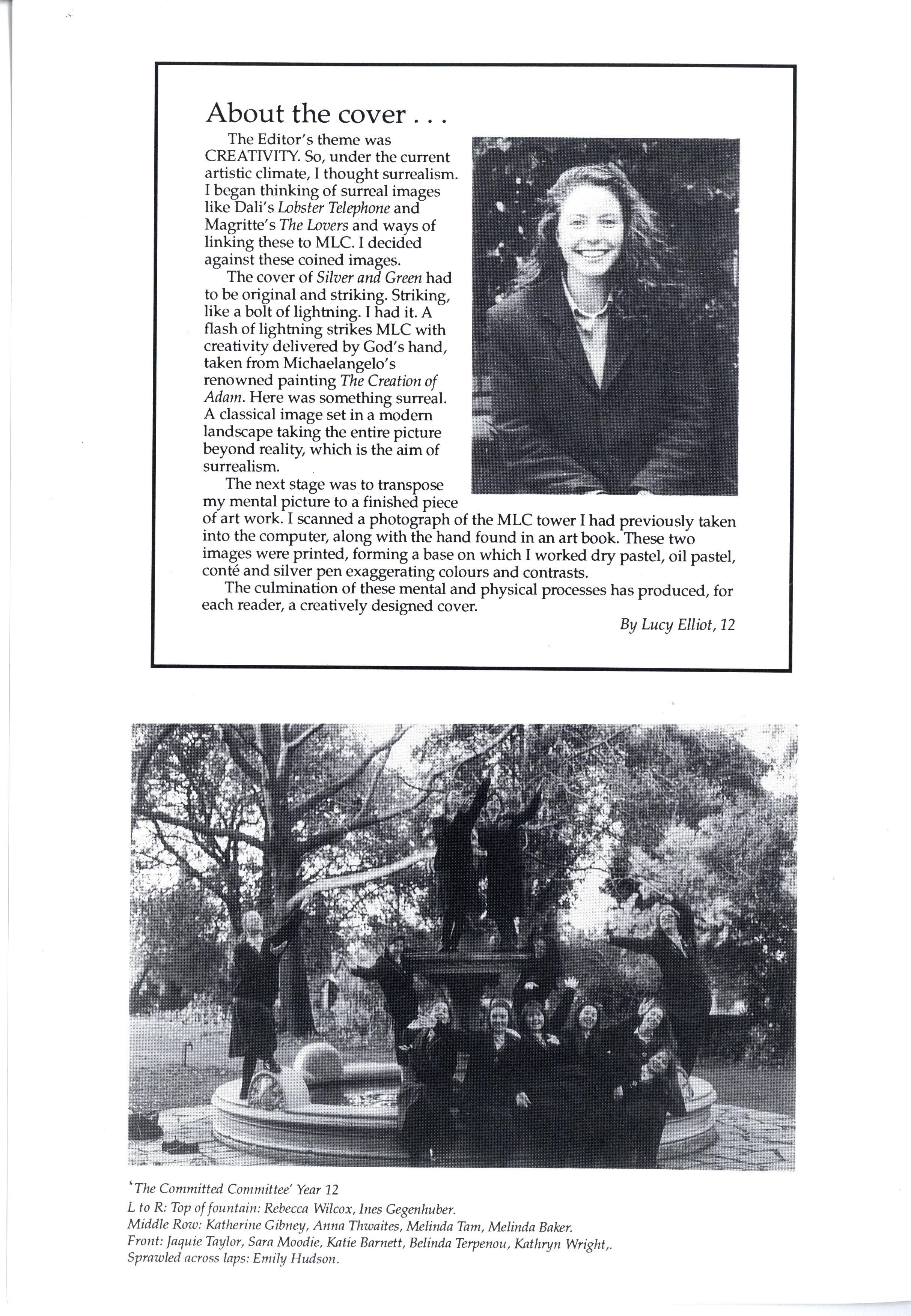 We have endeavoured to create a magazine so exciting that people will be magnetically drawn to it...so people are falling over themselves to write for us But reality 'it us and we can assure you it 'urt There are so many different activities going on at MLC that one often wonders how people could find the time to write for Silver and Green. However many did, and the articles have been of a fantastic standard Creativity is the theme for '93, and we've enjoyed our dip in the sea of creative stories that have flooded submission boxes. * * *