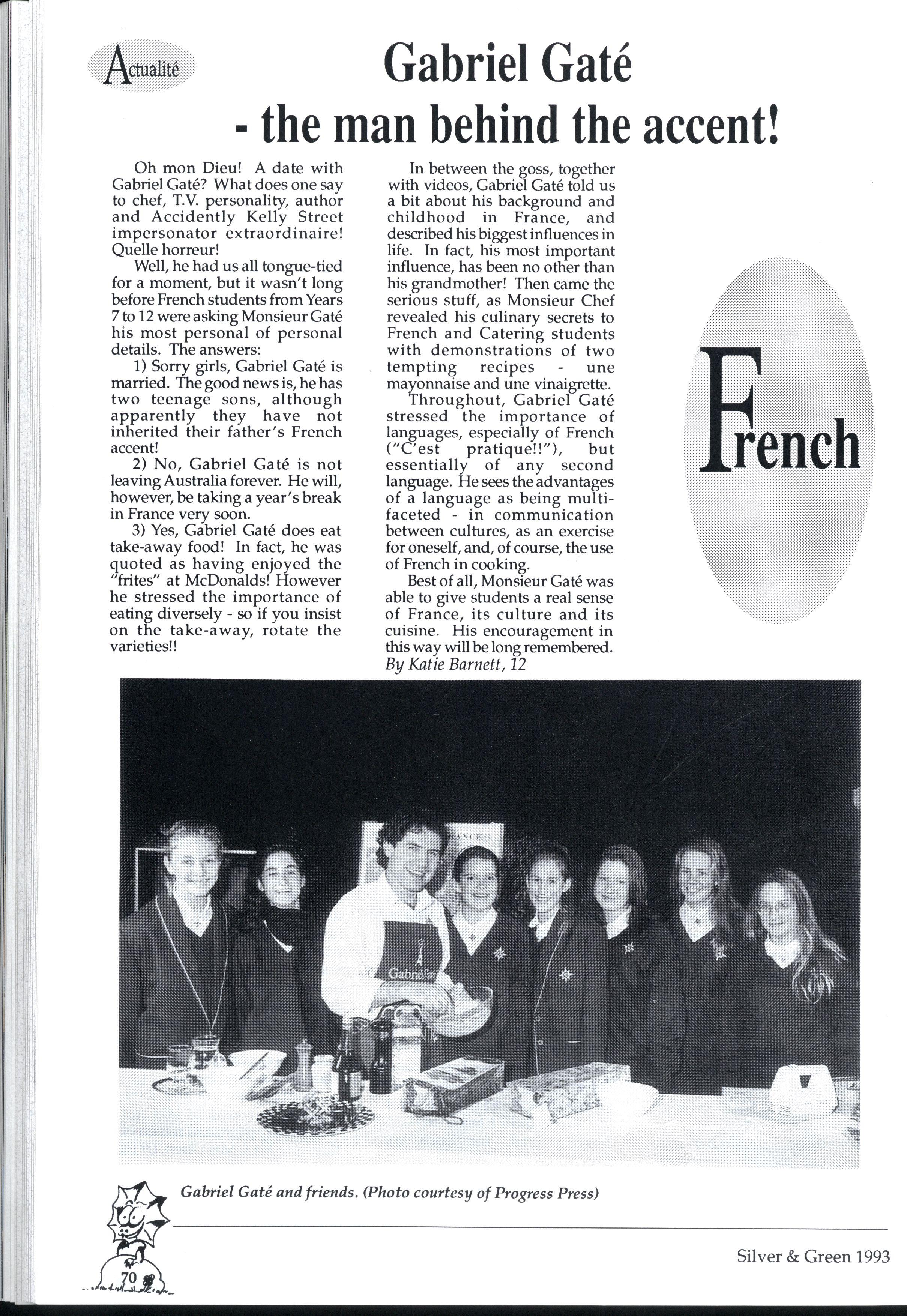 Best of all, Monsieur Gate was able to give students a real sense of France, its culture and its cuisine His encouragement in this way will be long remembered. By