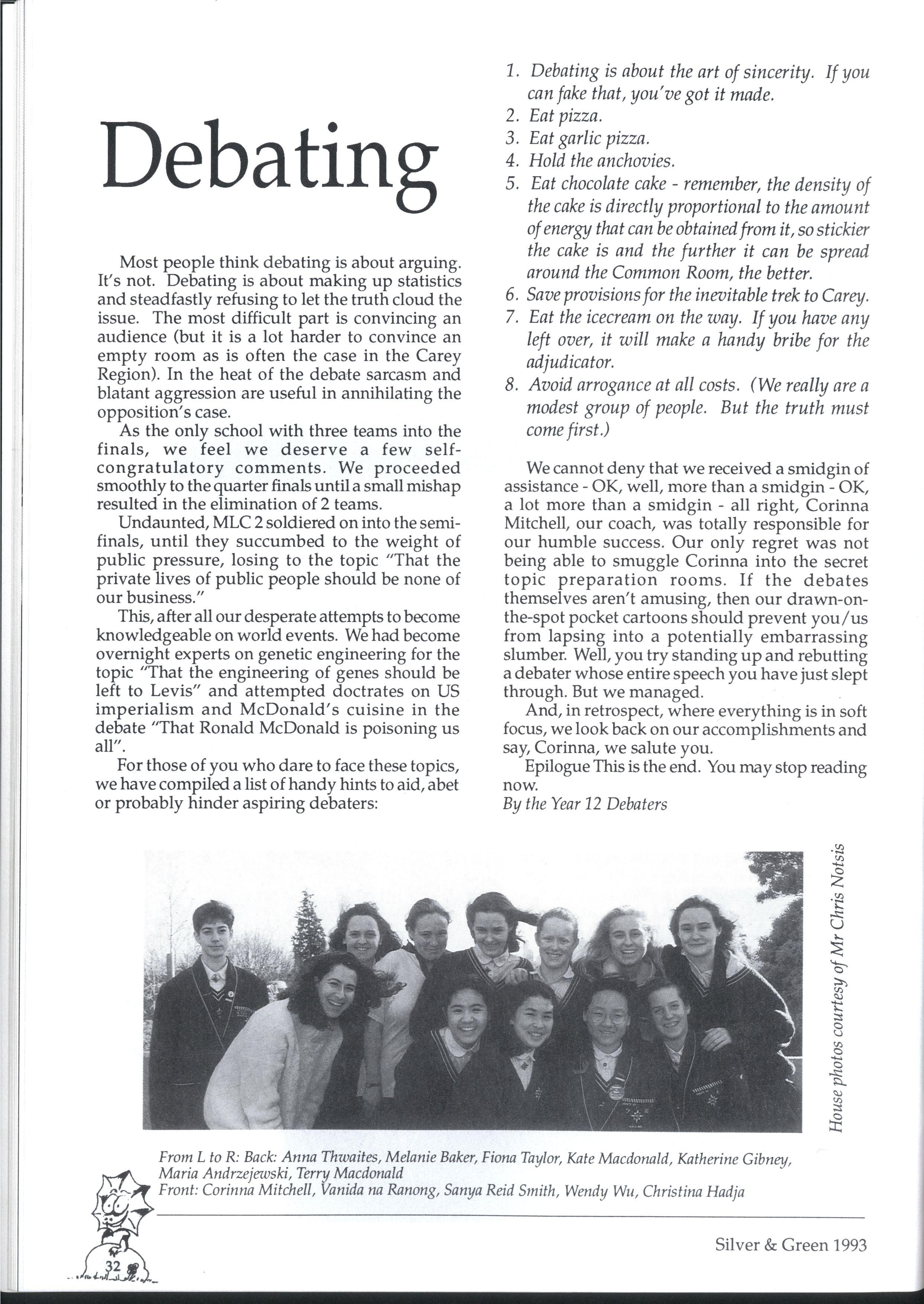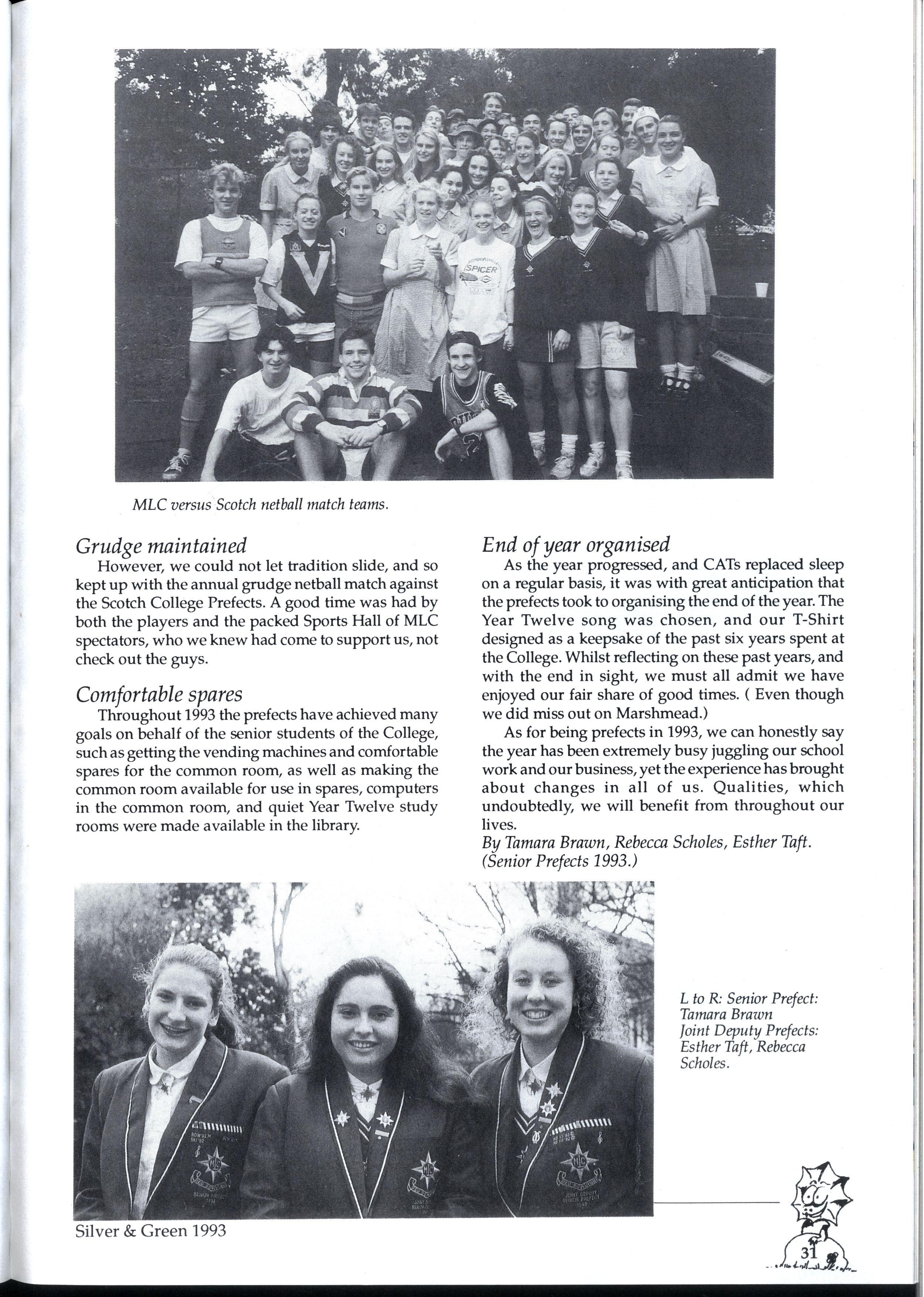 For Gorr, MLC provided the opportunity to dabble is an many opportunties as she could find Athletics, debating, oratory, cricket, music and drama; you name it, Gorr was in it As Fitchett Drama Captain, she organised and directed the drama festival 'That's another good thing about this school, they give you a lot of responsibility," she comments