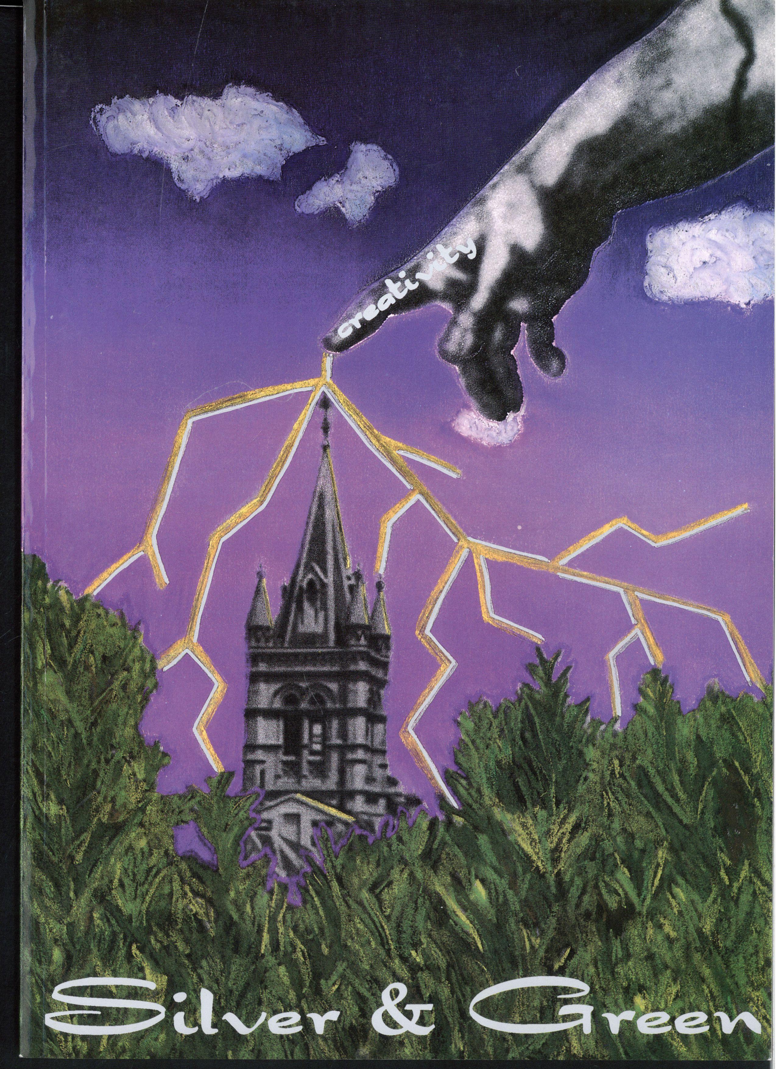 The cover of Silver and Green had to be original and striking Striking, like a bolt of lightning. I had it. A flash of lightning strikes MLC with creativity delivered by God's hand, taken from Michaelangelo's renowned painting The Creation of Adam. Here was something surreal A classical image set in a modern landscape taking the entire picture beyond reality, which is the aim of surrealism