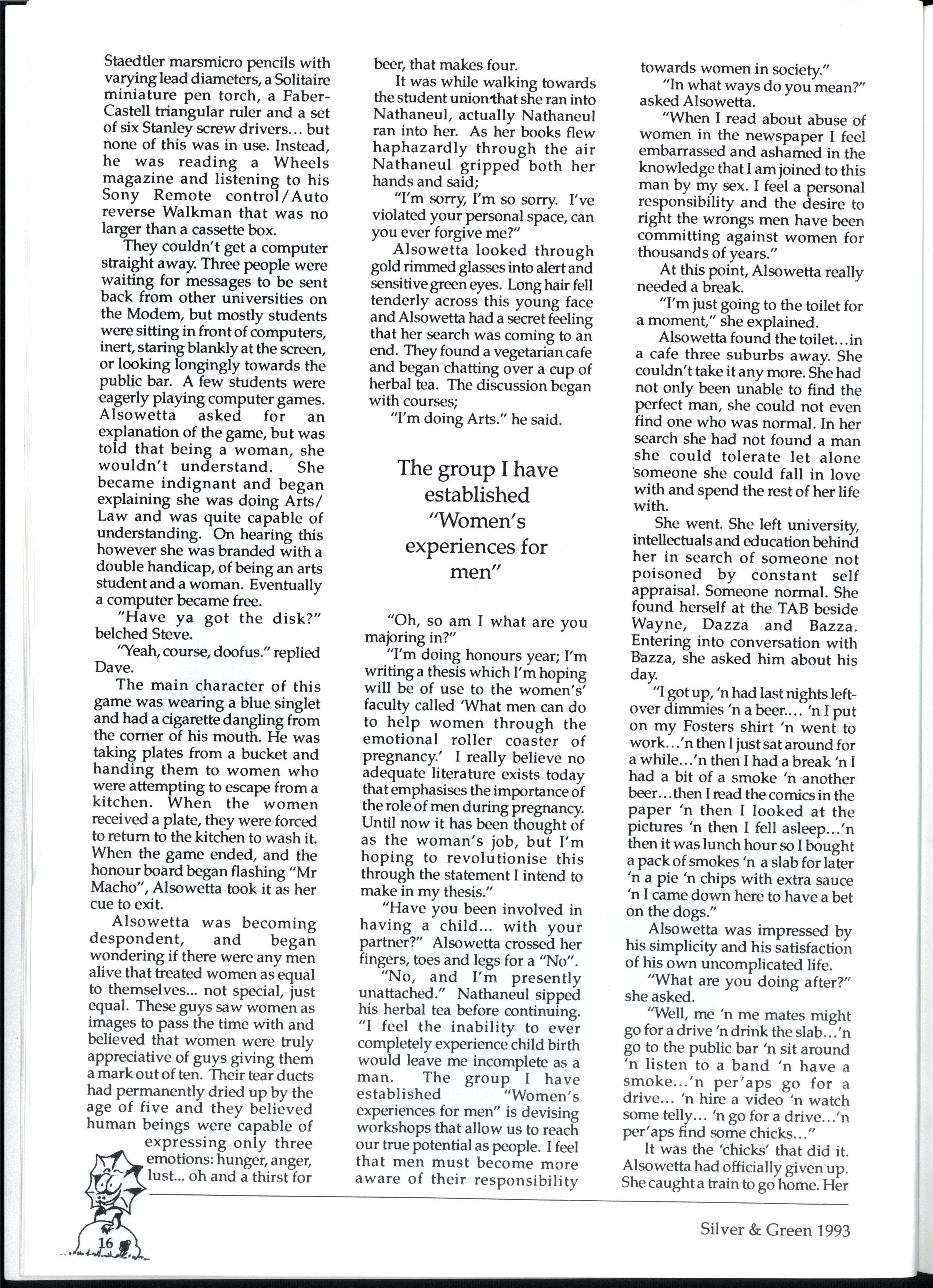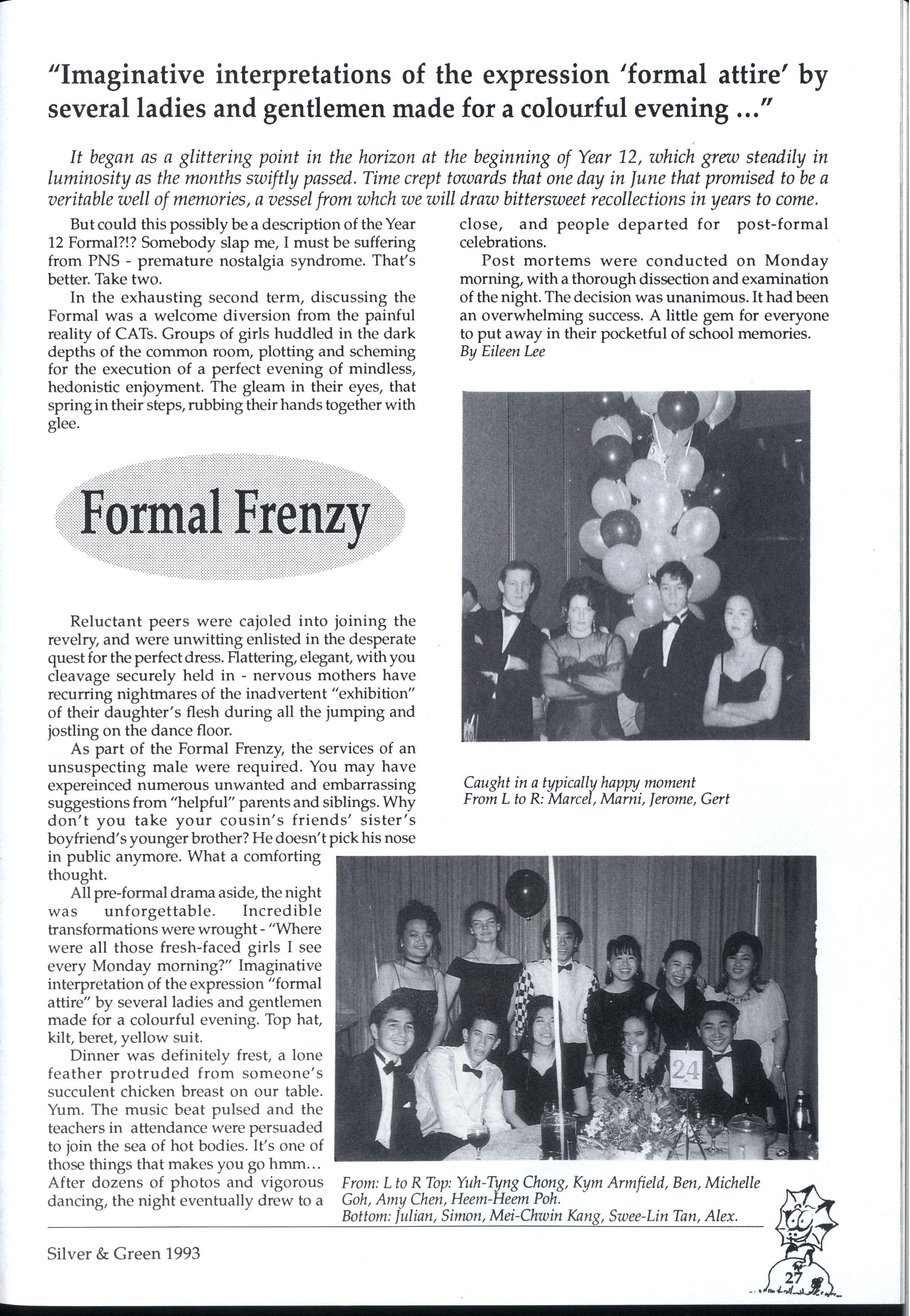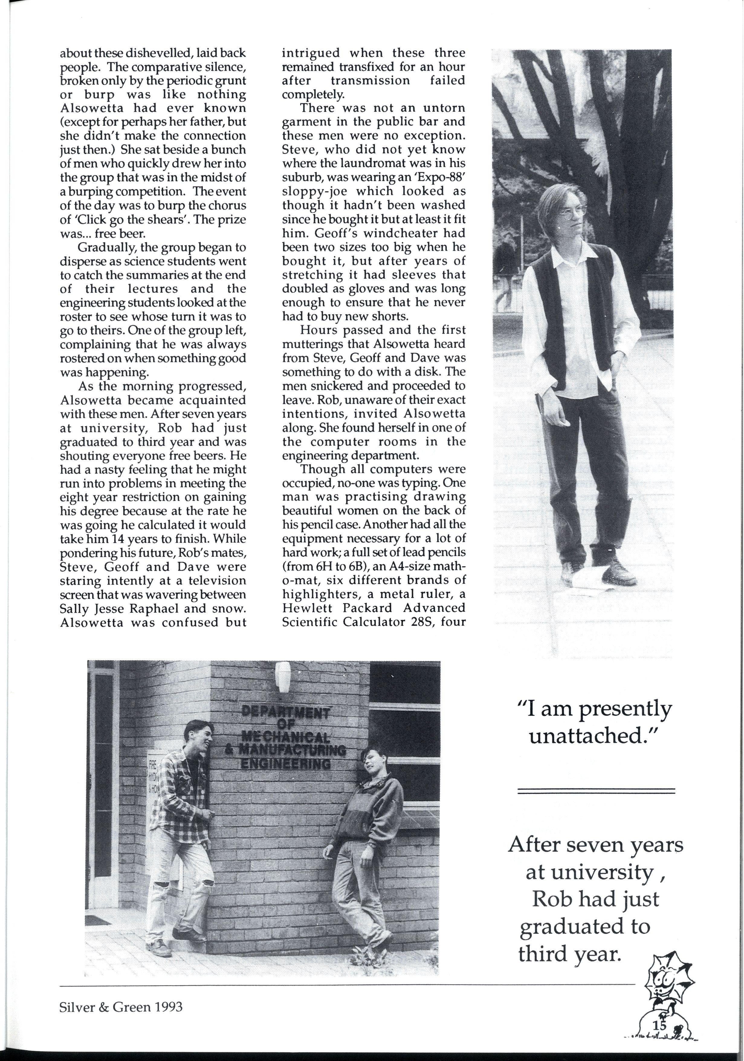 The birds are singing, the sun is shining and your hapless editors are lying in a deep sleep on the lawns of the front garden. After a week of laying out the 1993 edition of Silver and Green (sacraficing our holidays, we might add, but we'll refrain from using this space for a mere sob story), we are both mentally and physically exhausted...do you appreciate us?