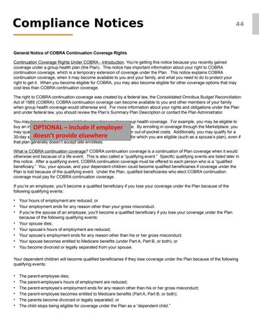 • If you’re the spouse of an employee, you’ll become a qualified beneficiary if you lose your coverage under the Plan because of the following qualifying events: