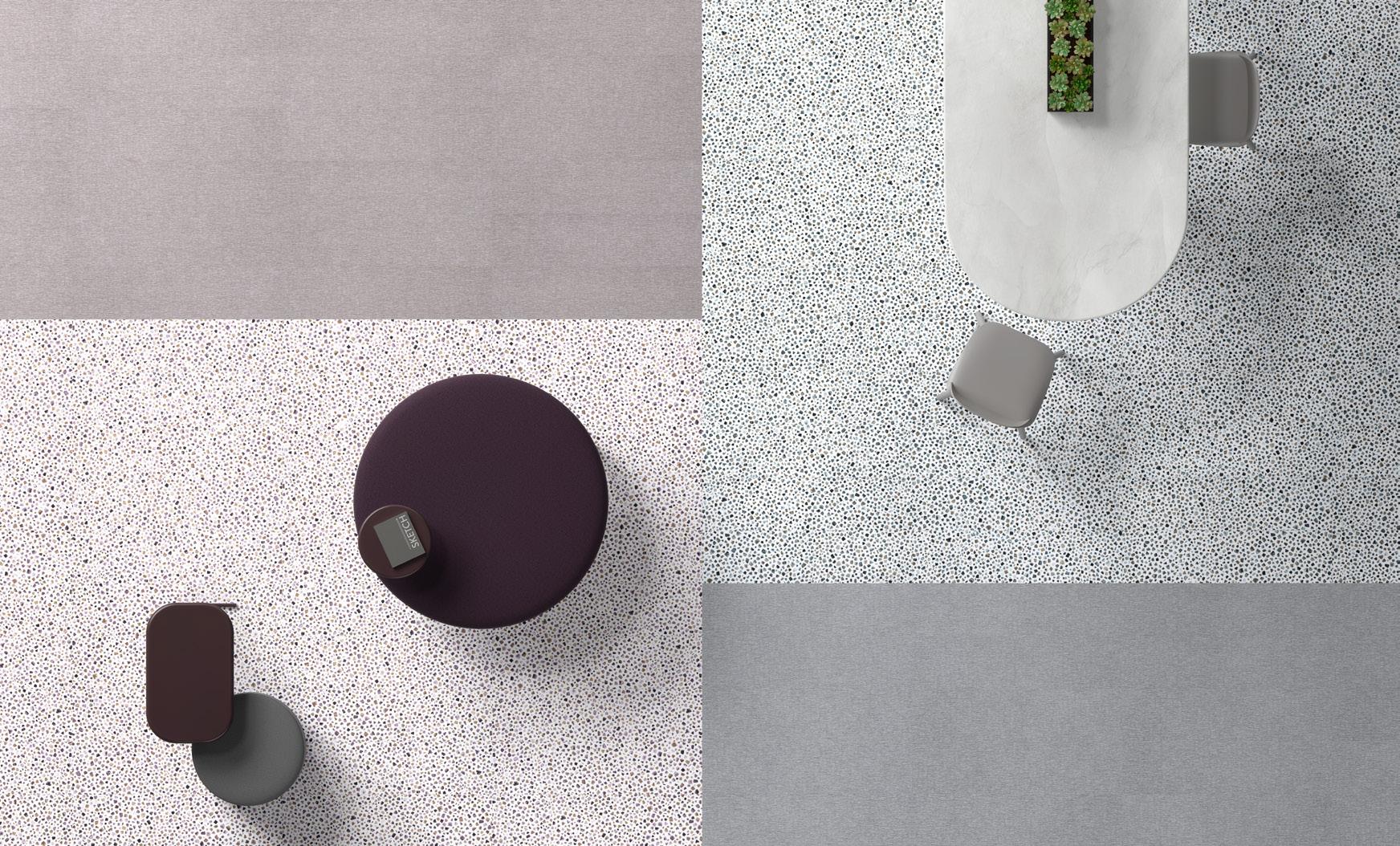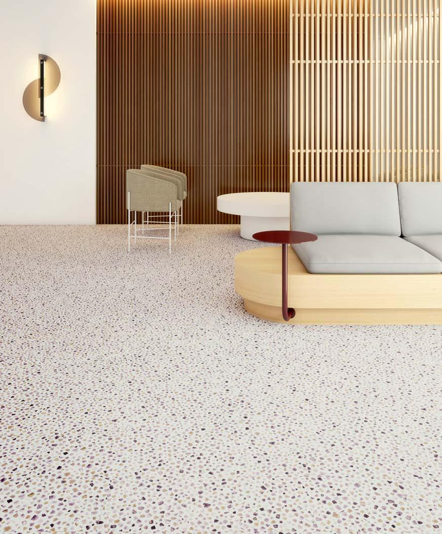 INSPIRED BY THE VISUAL OF AGGREGATE IN CONCRETE, CREATE IN PLACE EXPLORES SHAPE AND COLOR IN THE ABSTRACT. USING A VARIETY OF ARTISTIC TECHNIQUES LIKE HAND-PAINTED WATERCOLOR AND BLOCK PRINTING, THE COLLECTION IS A CURATED SERIES OF TEXTURAL VISUALS AND AN INTERPLAY OF POSITIVE AND NEGATIVE SPACE. WITH STYLES CONNECTED THROUGH COLOR, THIS LVT COLLECTION IS DESIGNED TO USE ALONE OR COORDINATE