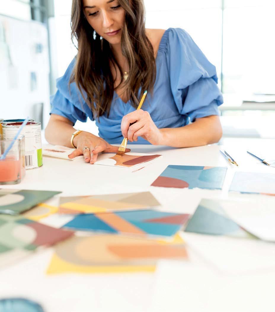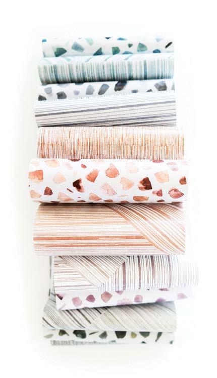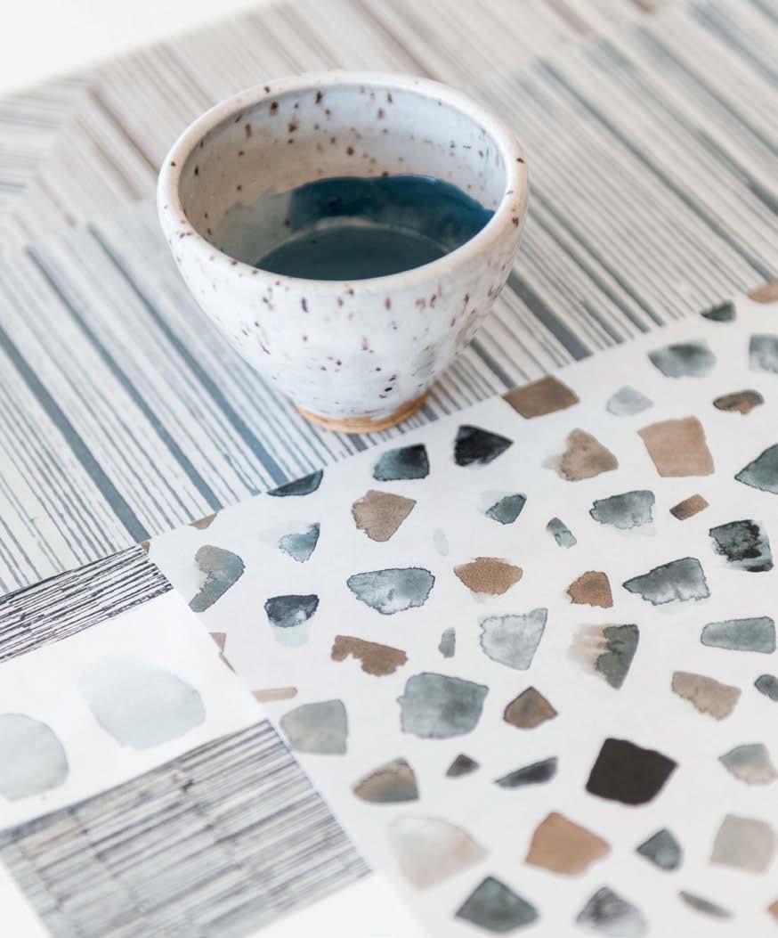 For Create In Place, product designer Amanda Hopkins set out to design a hard surface collection that was directly connected to original artwork. Inspired to create a concrete and terrazzo-inspired visual with an artistic approach, Amanda dabbed watercolor paint in various brush strokes, sizes and shapes to create the styles for the collection.