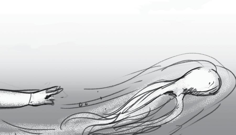2. She swims up to the surface