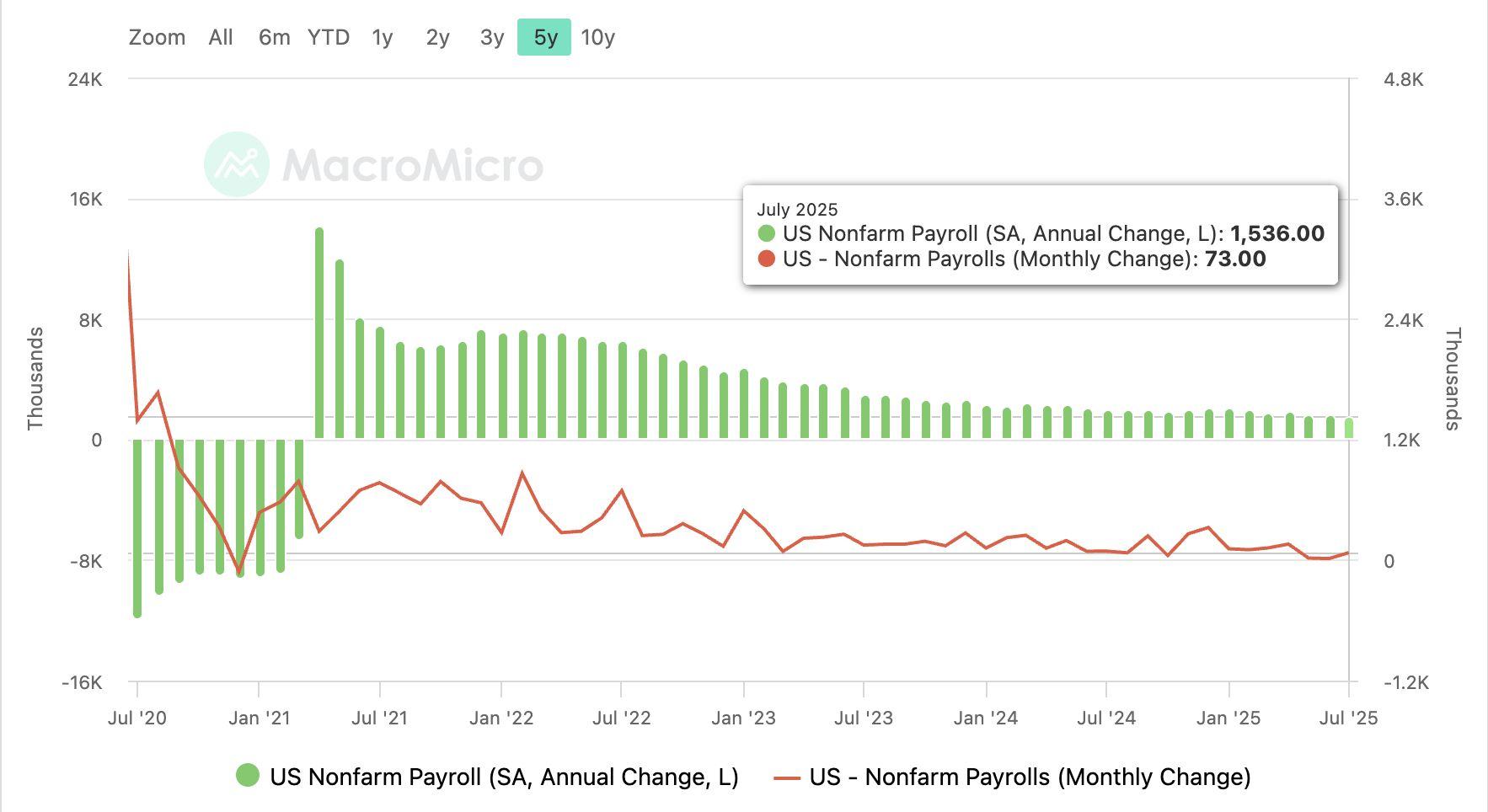 若 9 月 5 日公布的 8 月就業報告顯示非農新增就業低於 50,000 人,聯準會或許會將其 作為降息依據;但若就業維持在每月 50,000 至 100,000 人之間,則難以再進一步放鬆, 尤其當通膨仍卡在 2% 以上水準時。