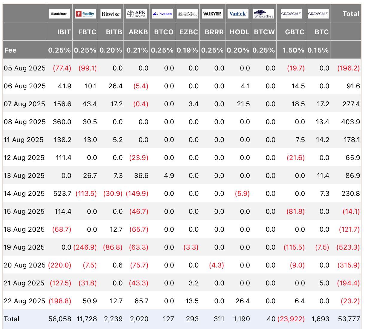 上週,因應 Jackson Hole 年會的避險部位,BTC 一度下探至 111,990 美元,ETH 也回 落至 4,209.80 美元,與美國現貨 ETF 流入再度轉弱的情況相互呼應。