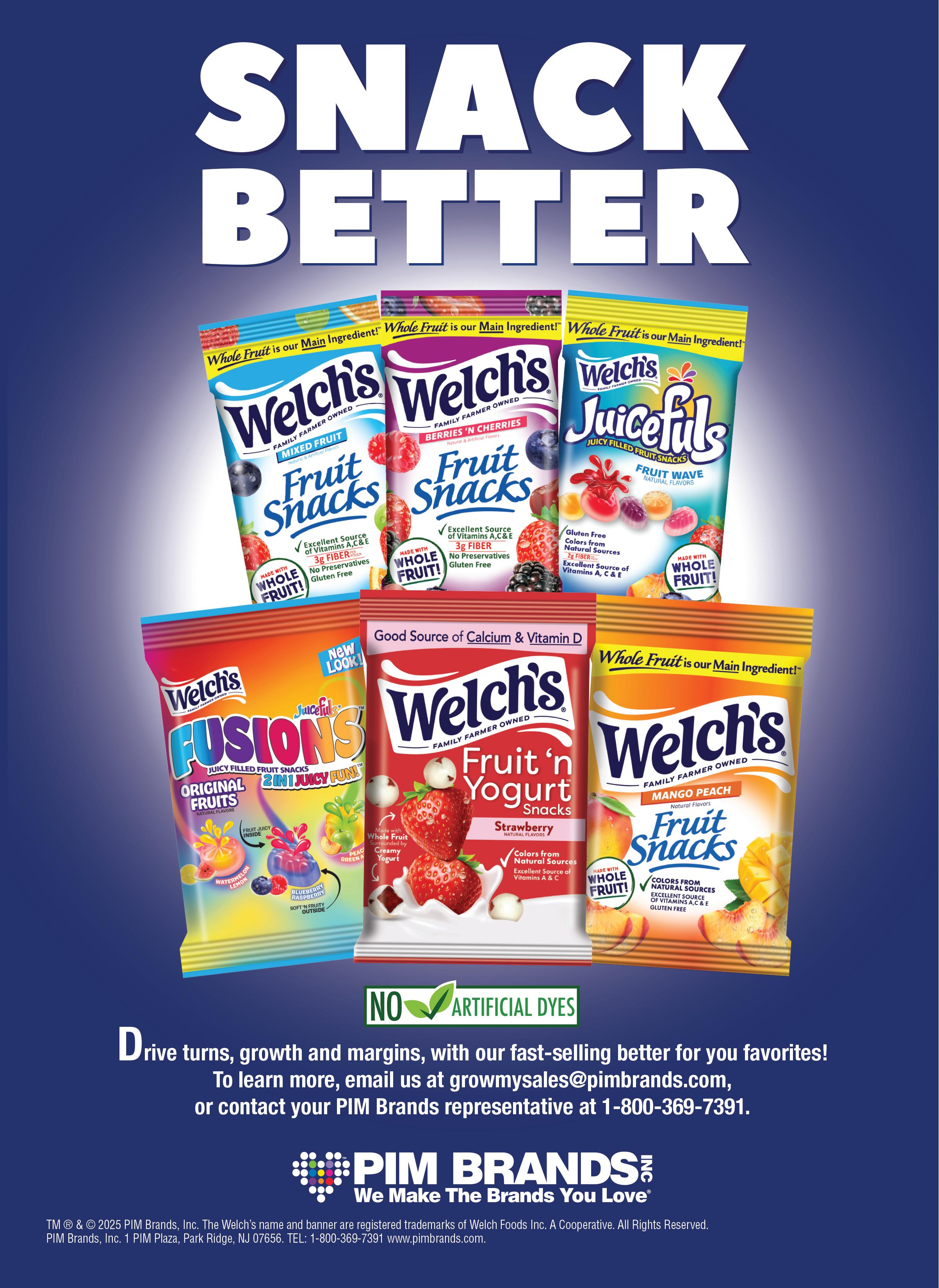 Welch’s Fruit Snacks Juicefuls Fusions offers several better-for-you attributes. They are made with natural flavors and colors from natural sources, and each serving is a source of vitamins A, C and E. Juicefuls Fusions are also gluten-free and peanut-free, appealing to health-conscious consumers and those with dietary restrictions. They are offered in 4oz peg bags as well as multipacks with 50 or 20 0.8oz pouches.