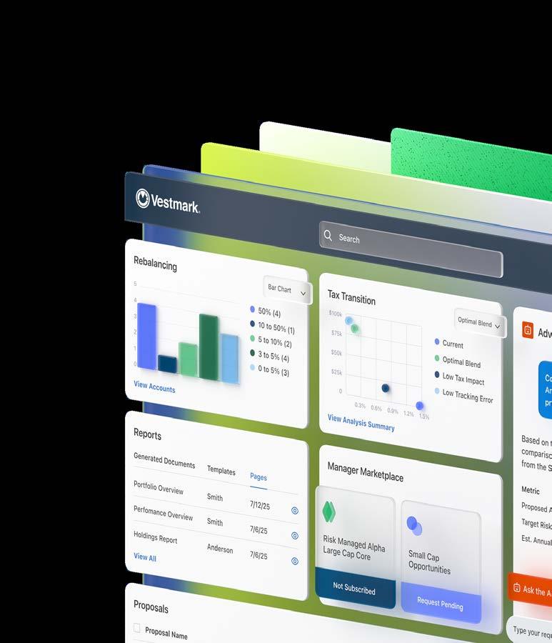 At its core, Vestmark is a sophisticated portfolio management and enterprise trading platform, complemented by a broad suite of solutions including accounting, reporting, outsourced services, and tax-aware portfolio capabilities.