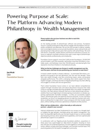 RECOGNISING LEADERS AC ROSS THE GLOBAL WEALTH MANAGEMENT INDUSTRY THROUGH THE WealthBriefing AWARDS PROGRAMME