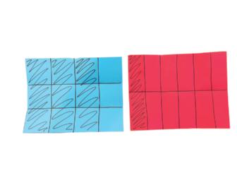 En 3.er grado, la clase interpreta los factores en la expresión 3 × 4 como 3 grupos de 4. Por lo tanto, en 4.° grado, la clase halla fracciones equivalentes al escribir una expresión como 3 × 4 3 × 5 .