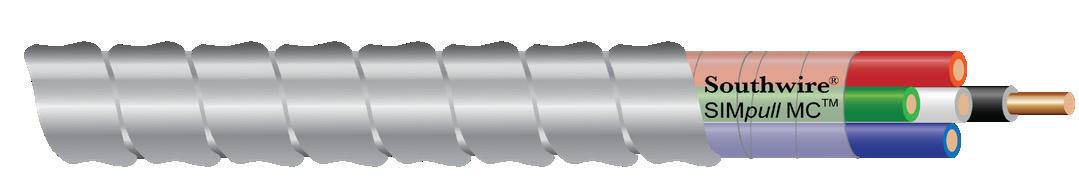 SIMpull MC cable is designed with a reengineered aluminum-interlocked-armor sheath that prevents the armor from jamming during pulling, reducing labor and boosting efficiency when compared to traditional metal-clad cable. It is less likely for this armor to split or break apart, which minimizes material scrap on the job site. This re-engineered profile is compact to potentially save costs on shipping, transportation, and installation time. It was redesigned in 2024 for streamlined manufacturing and increaseed production volume.