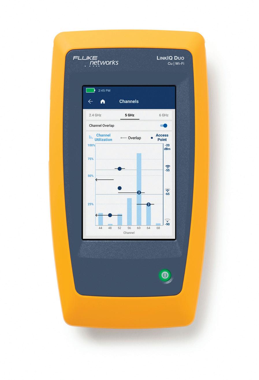 The LinkIQ Duo Cable+WiFi+Network tester combines the company’s cable qualification with advanced Wi-Fi 6E network testing and analysis. This compact portable device eliminates the need for multiple tools, streamlining the process of troubleshooting and validating both wired and wireless network infrastructures. It checks the cable performance up to 10 Gb/s, validates switch connectivity, and ensures sufficient Power over Ethernet (PoE) availability. Additionally, it checks access point configurations and verifies wireless network performance. It can flag common issues like misconfigured channels, overlapping access points, and weak security settings. Fluke Networks