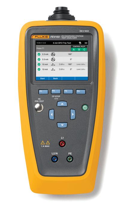 The FEV150 is designed to streamline the maintenance workflow of EV charging stations. Technicians can conduct comprehensive functional and safety tests swiftly and efficiently, ensuring uninterrupted service for electric vehicle users. The product tests AC EV charging stations with Type 1 or Tesla-type connectors and includes advanced features like auto control pilot waveform analysis. It features built-in test plans for streamlined maintenance and troubleshooting. Visual indicators speed testing and simplify analysis, while Bluetooth integration with TruTest EV Charging software enables quick reporting. A protective earth pre-test ensures voltage safety along with GFCI tests for 6mA and 20mA circuits.
