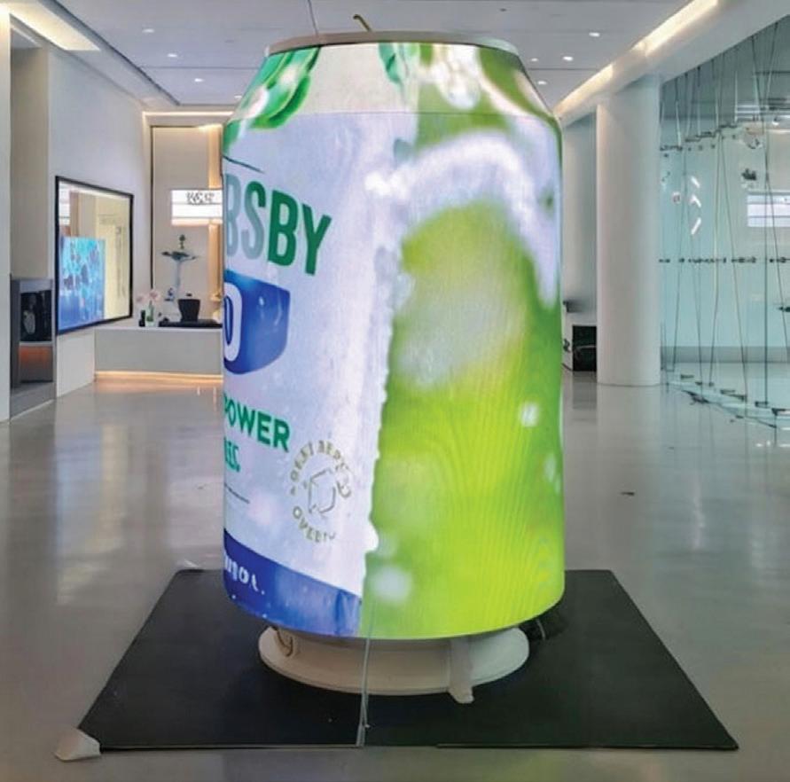 The Polet Digital LED Can is suited to beverage promotions. Built with customised Polet Ph2.5 flexible LED displays, it stands 1,300mm high with a diameter of 800mm, on a mobile housing.