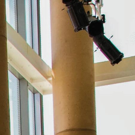 That black “blob” all over the mounting bracket of the luminaire is tape. The metal bracket is broken, and if it weren’t for the tape holding everything in place, the luminaire would be dangling upside-down by the circuit wires.