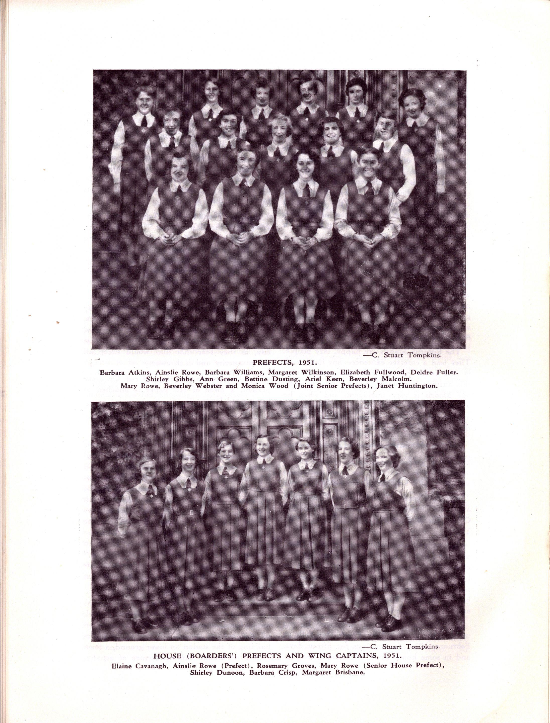 Ailsa Brownlee, Prefect, Secondary Studentship, Social Service Captain, Berry House Captain, Debating Society, Secretary of French Club, Senior Mathematics Group, Treasurer of Walking Club