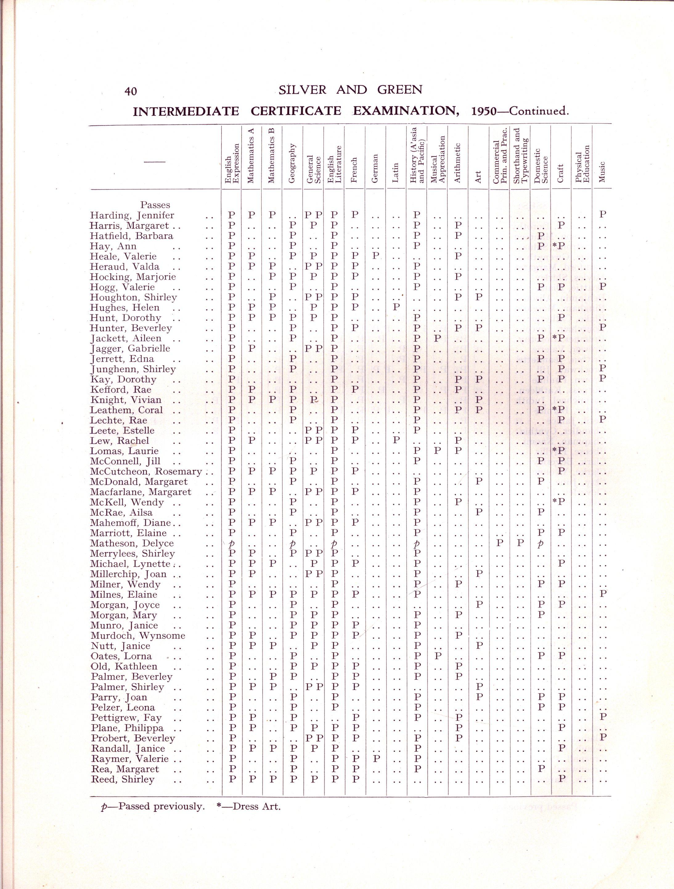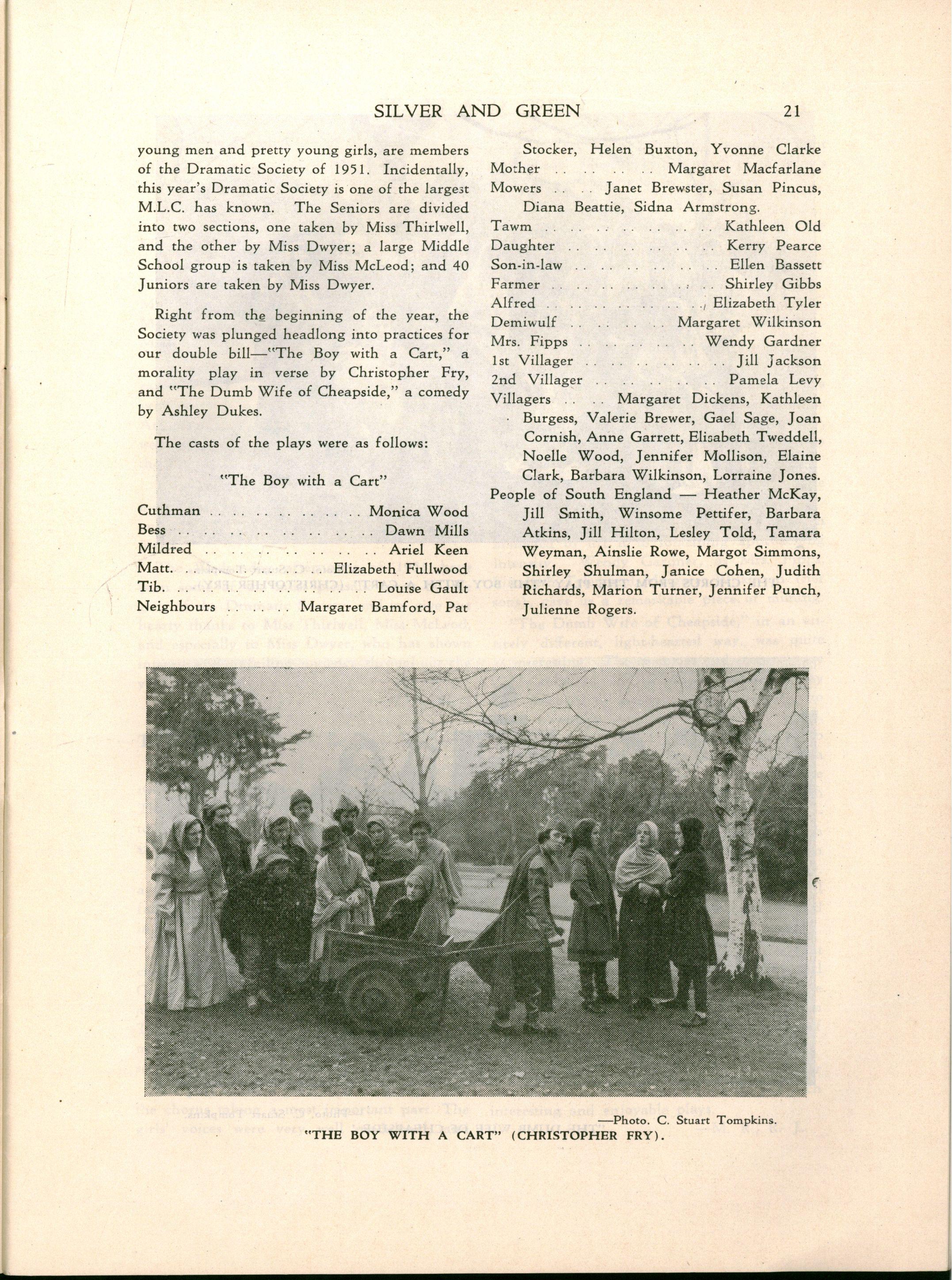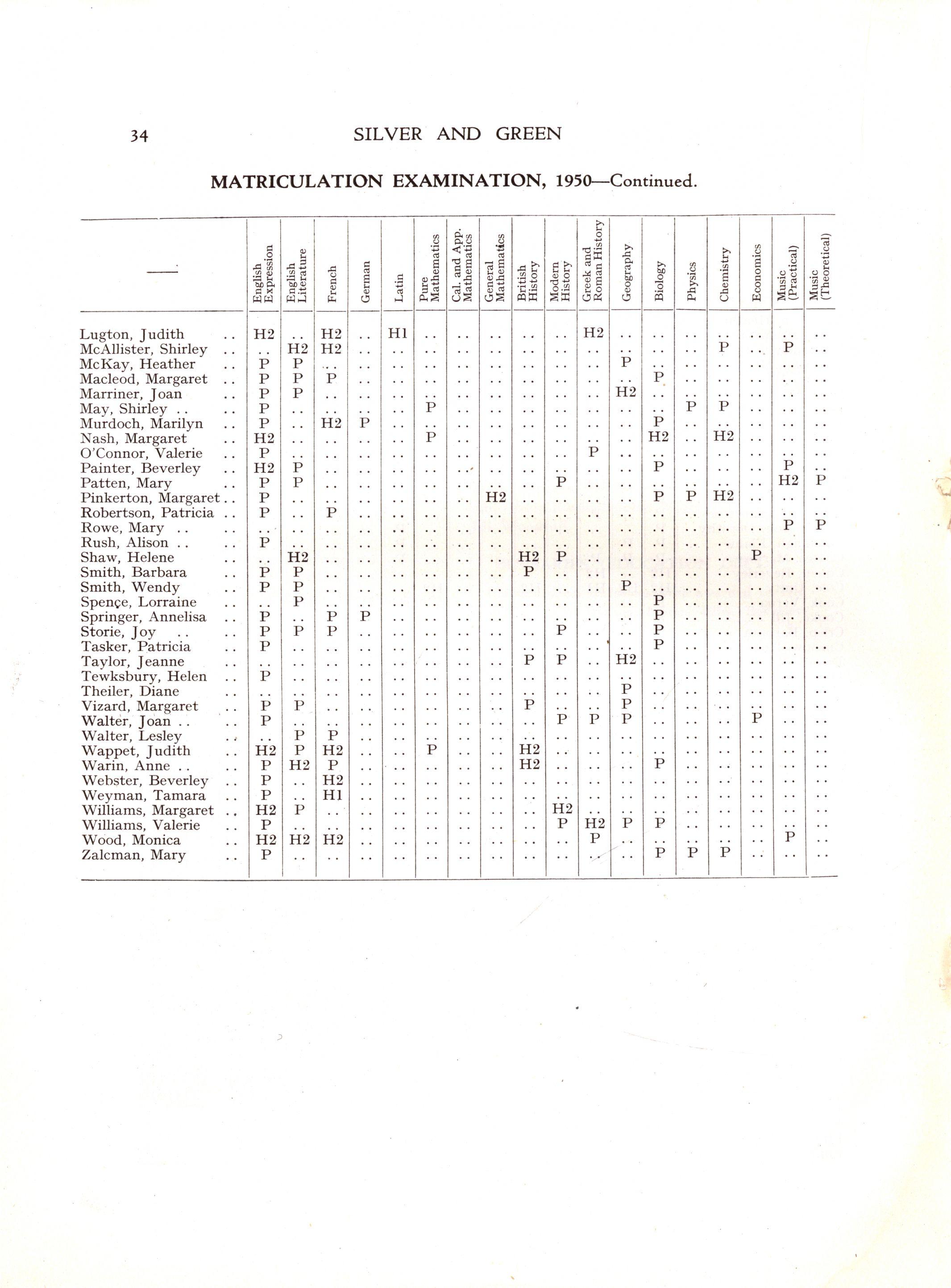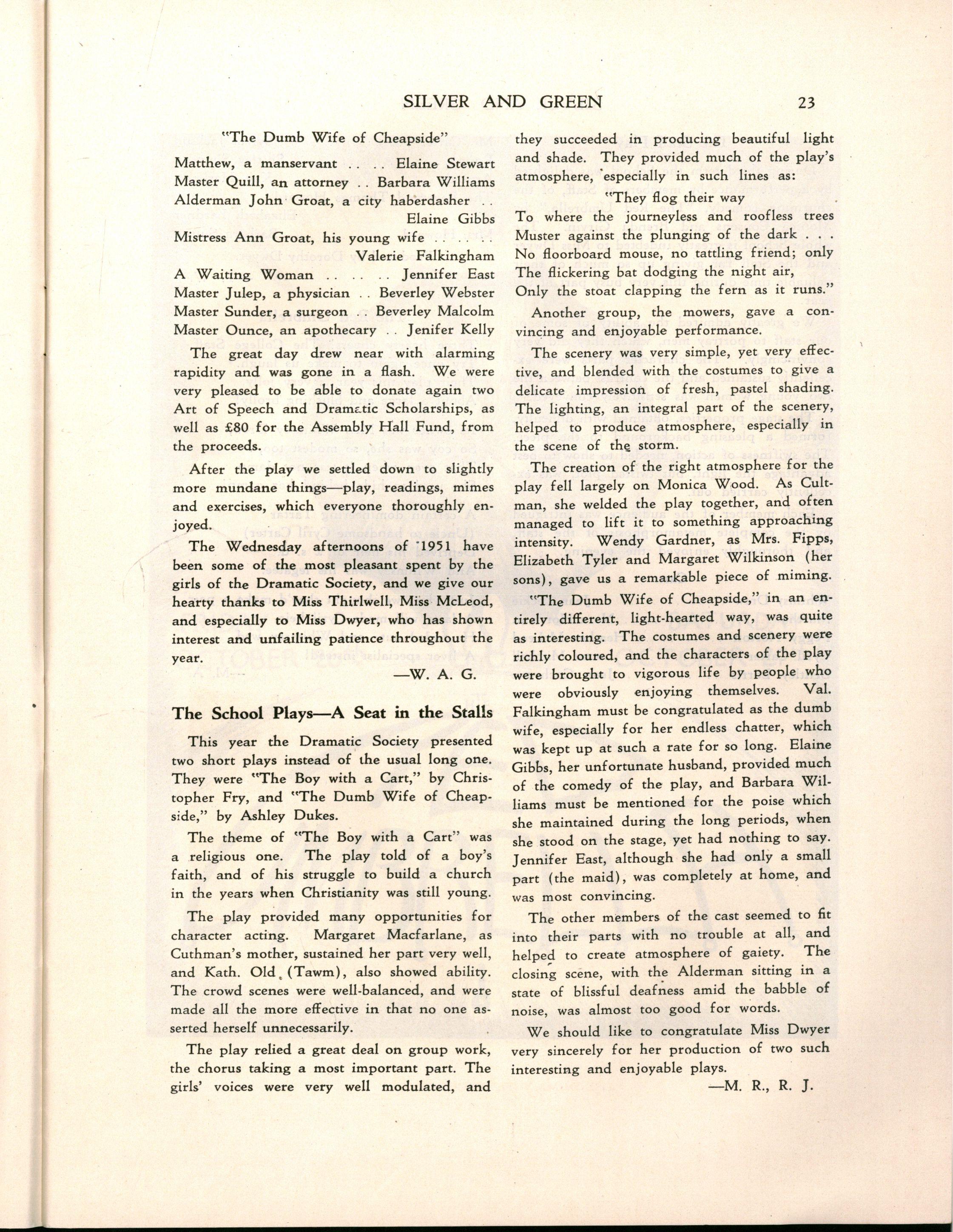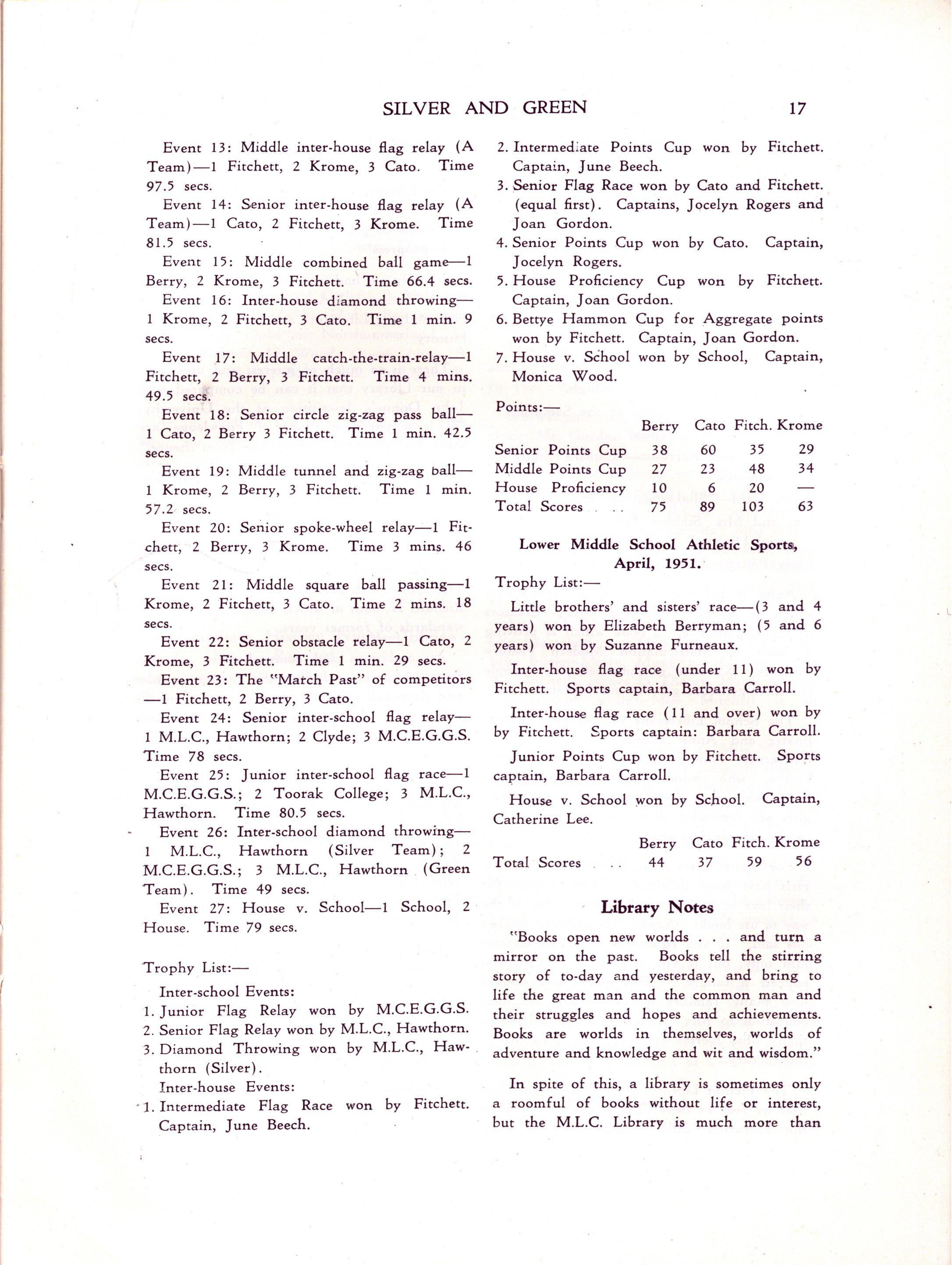 Miss W Mitchell, Mus.Bac., for 26 years teacher of Theory and Piano, is visiting England this year and will, we trust, return to the Music Staff in 1952