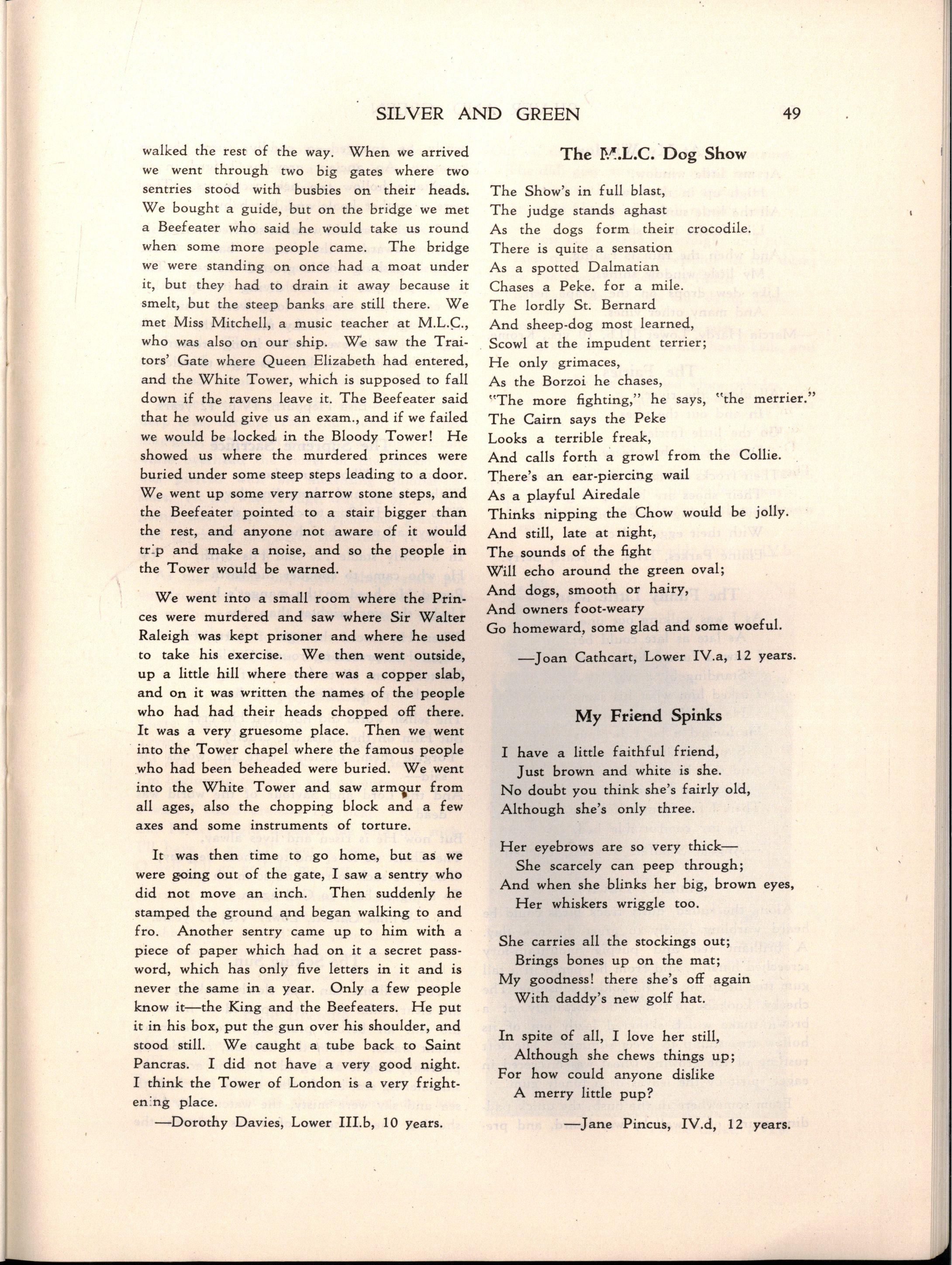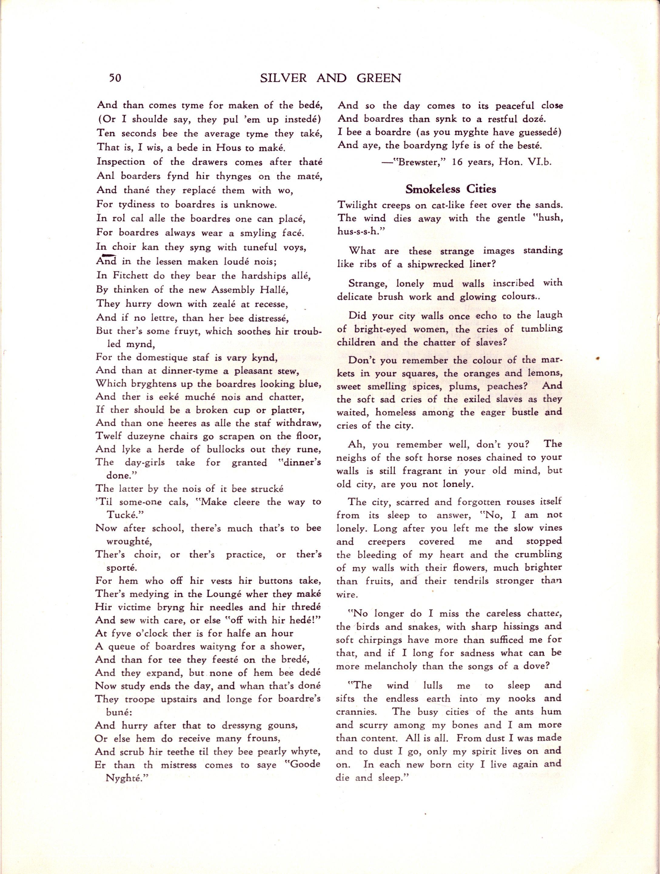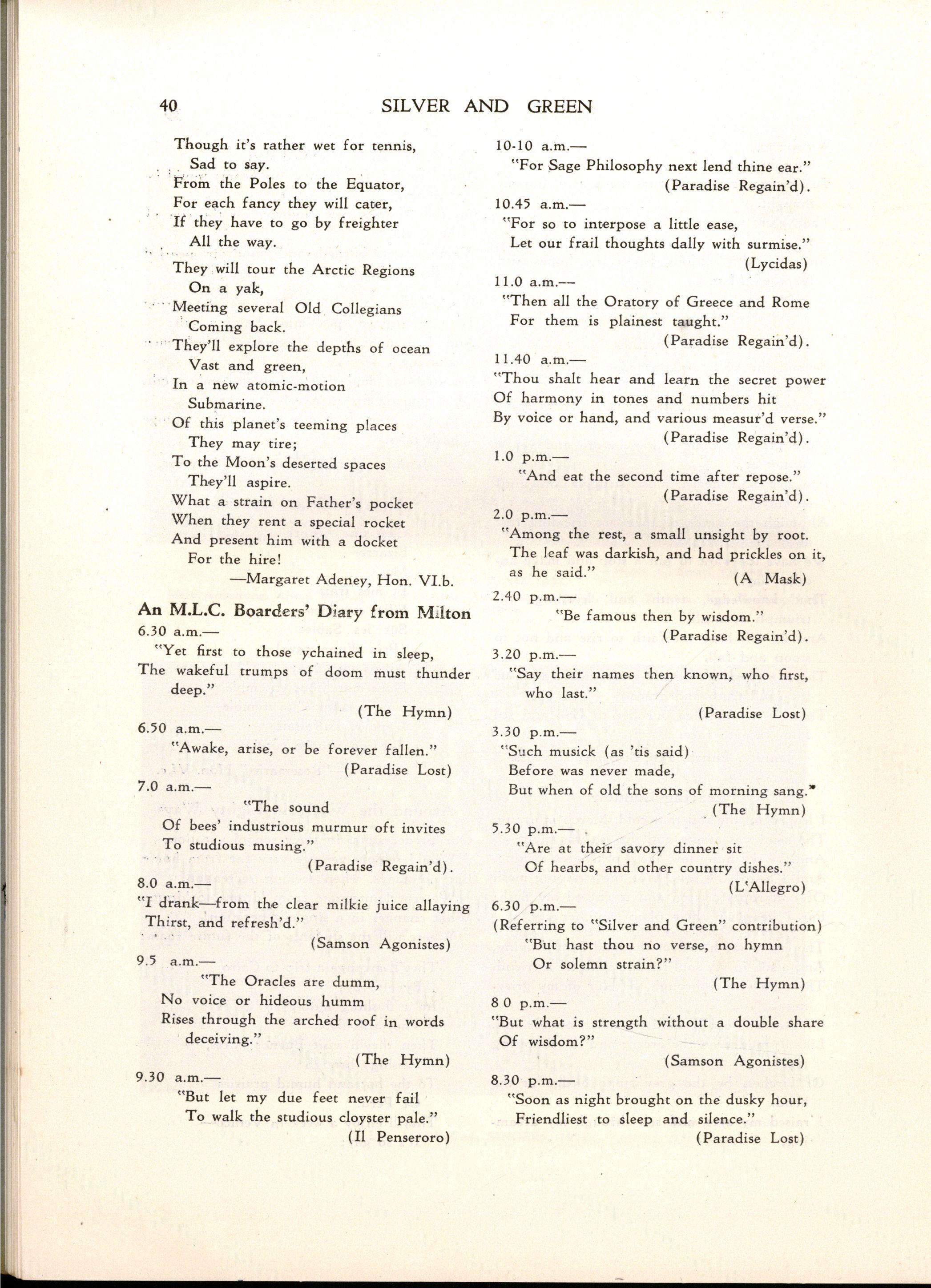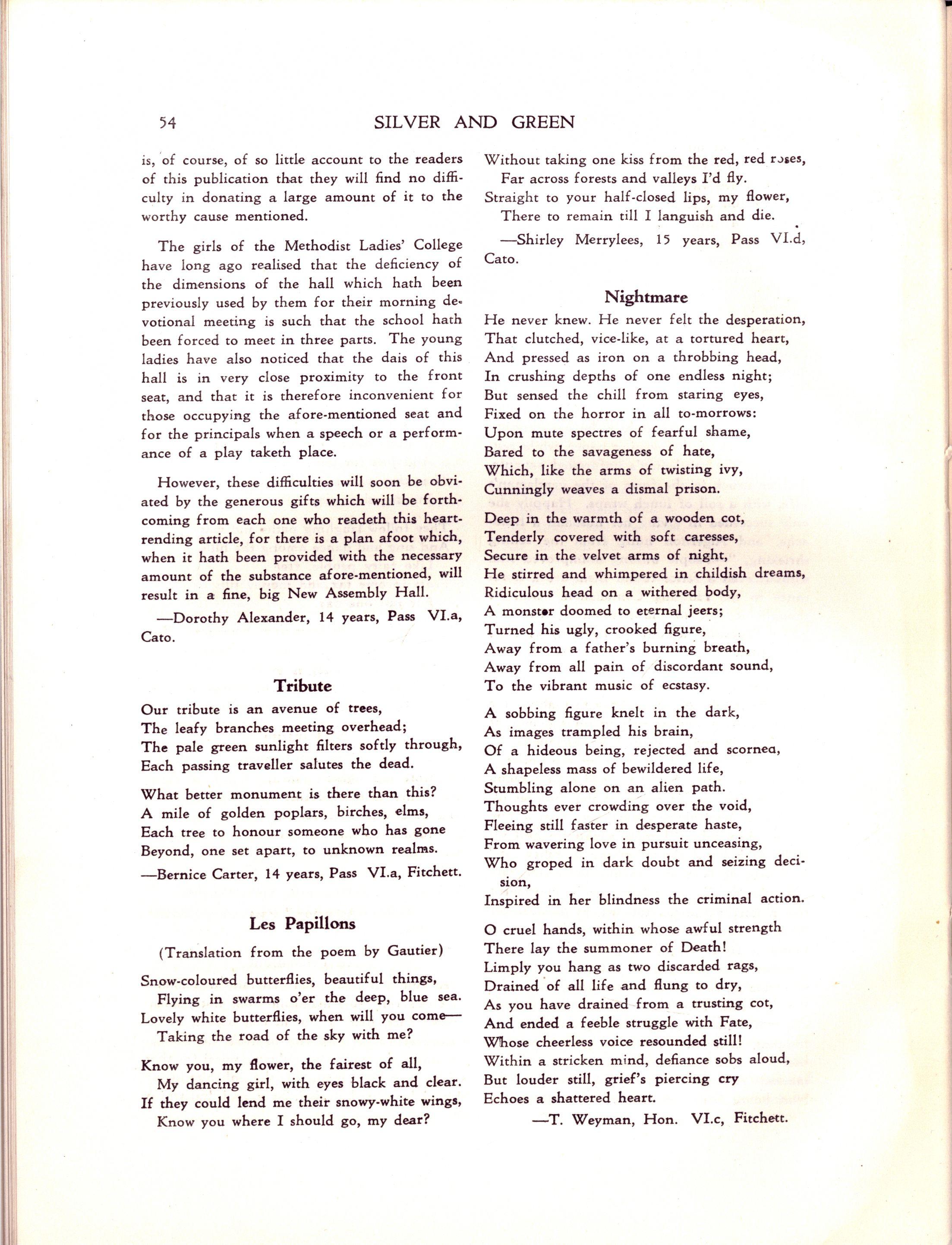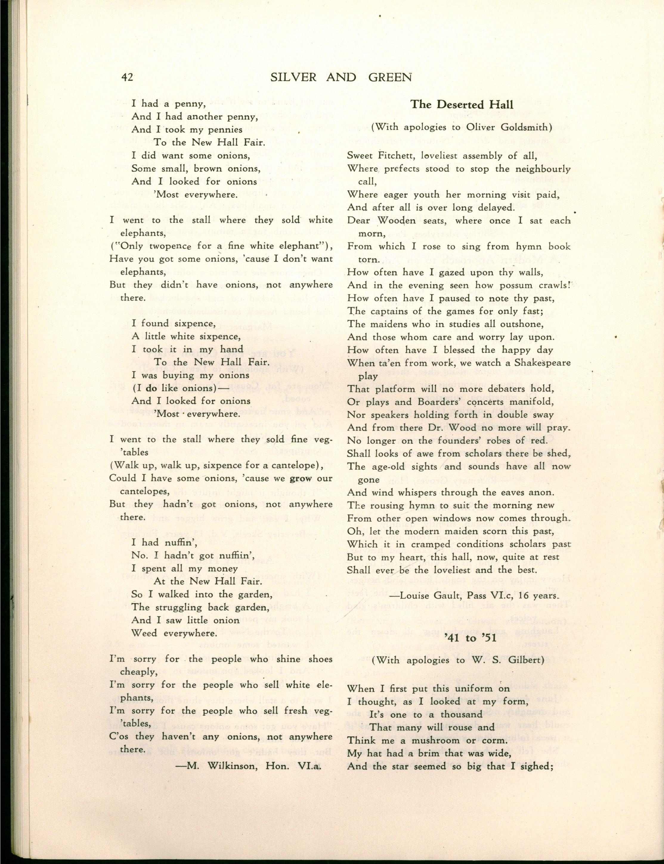 Miss W Mitchell, Mus.Bac., for 26 years teacher of Theory and Piano, is visiting England this year and will, we trust, return to the Music Staff in 1952